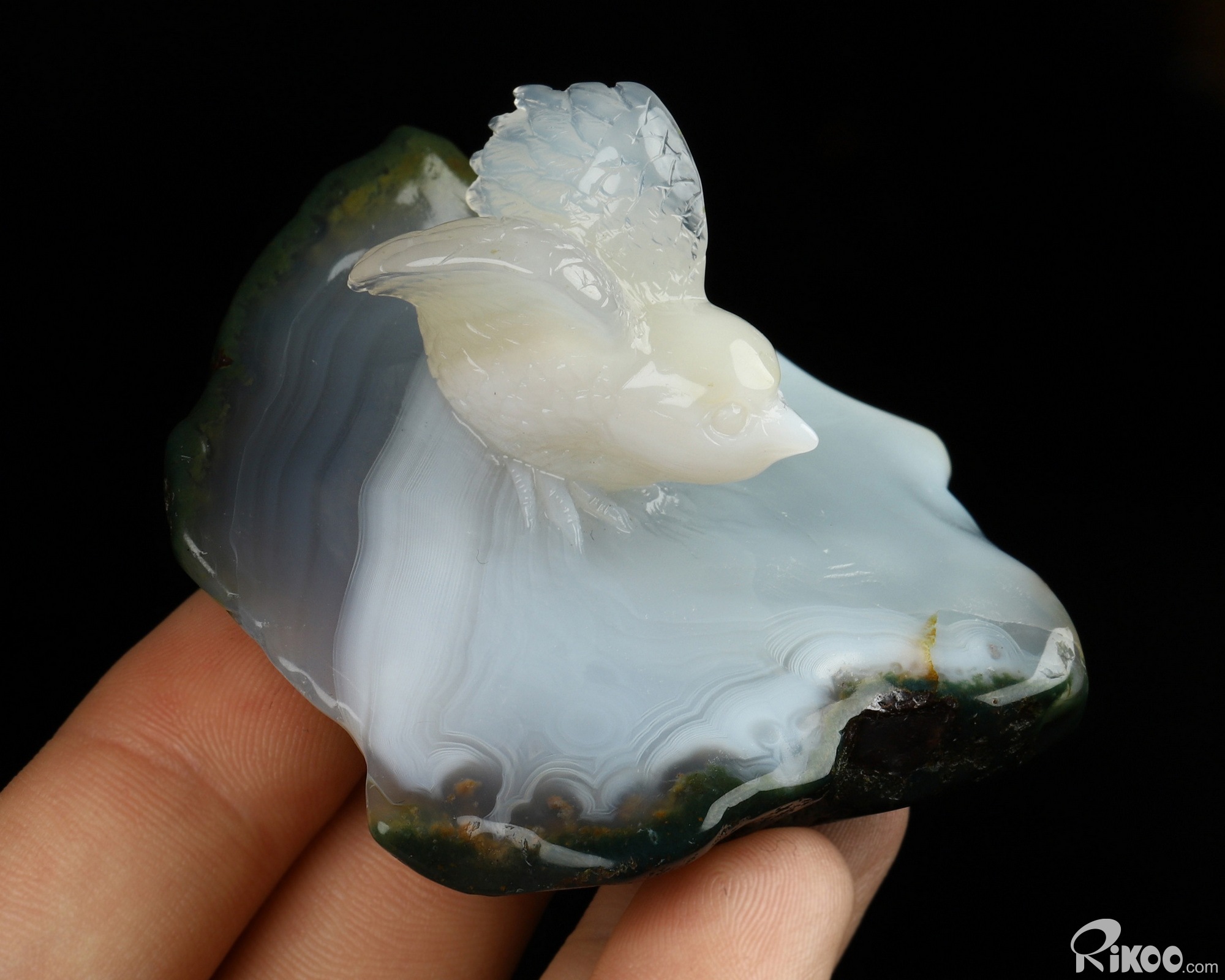 You are looking at a Gray & White Agate sculpture. The sculpture is 2.5 inches long.