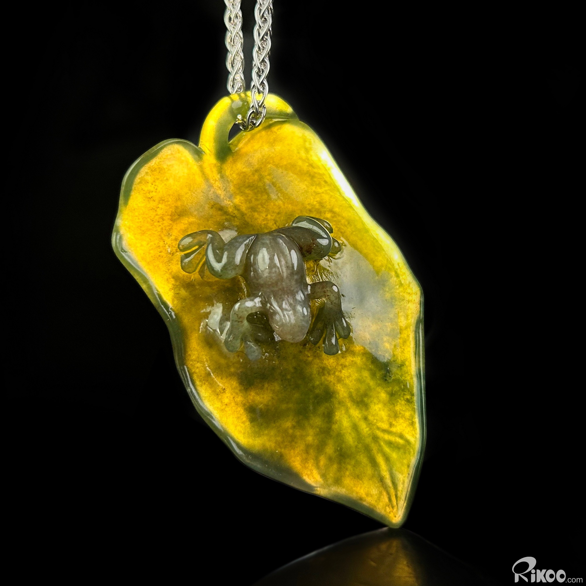 2.5" Indian Agate Hand Carved Crystal Frog Pendant, Crystal Healing