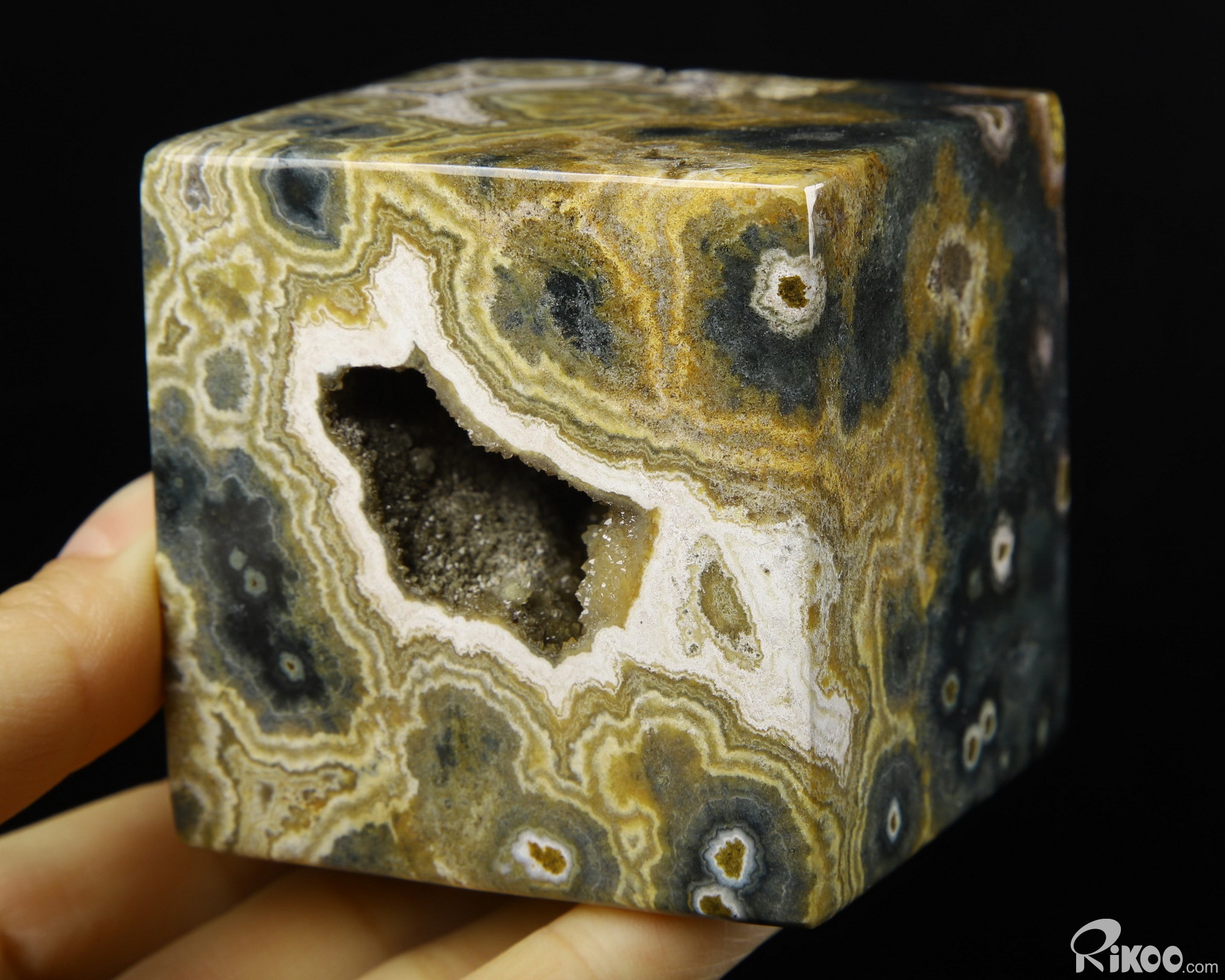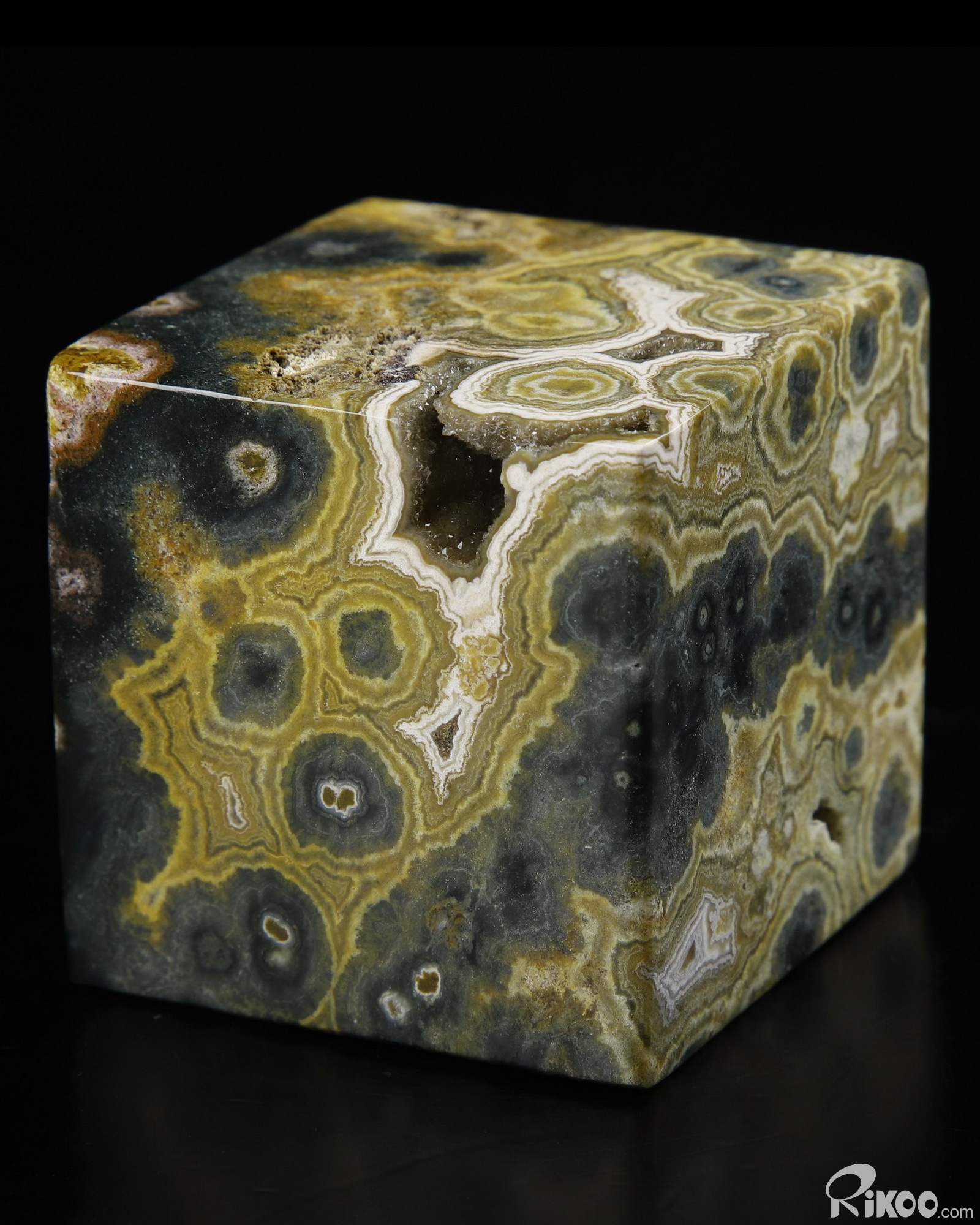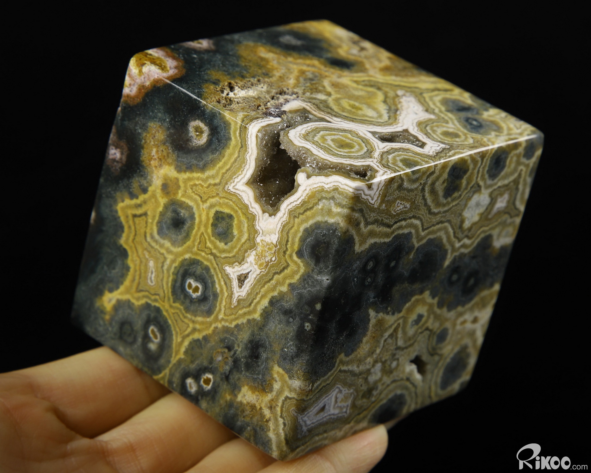 Beautiful 2.5" Ocean Jasper Carved natural geode Crystal Cube, Crystal Healing