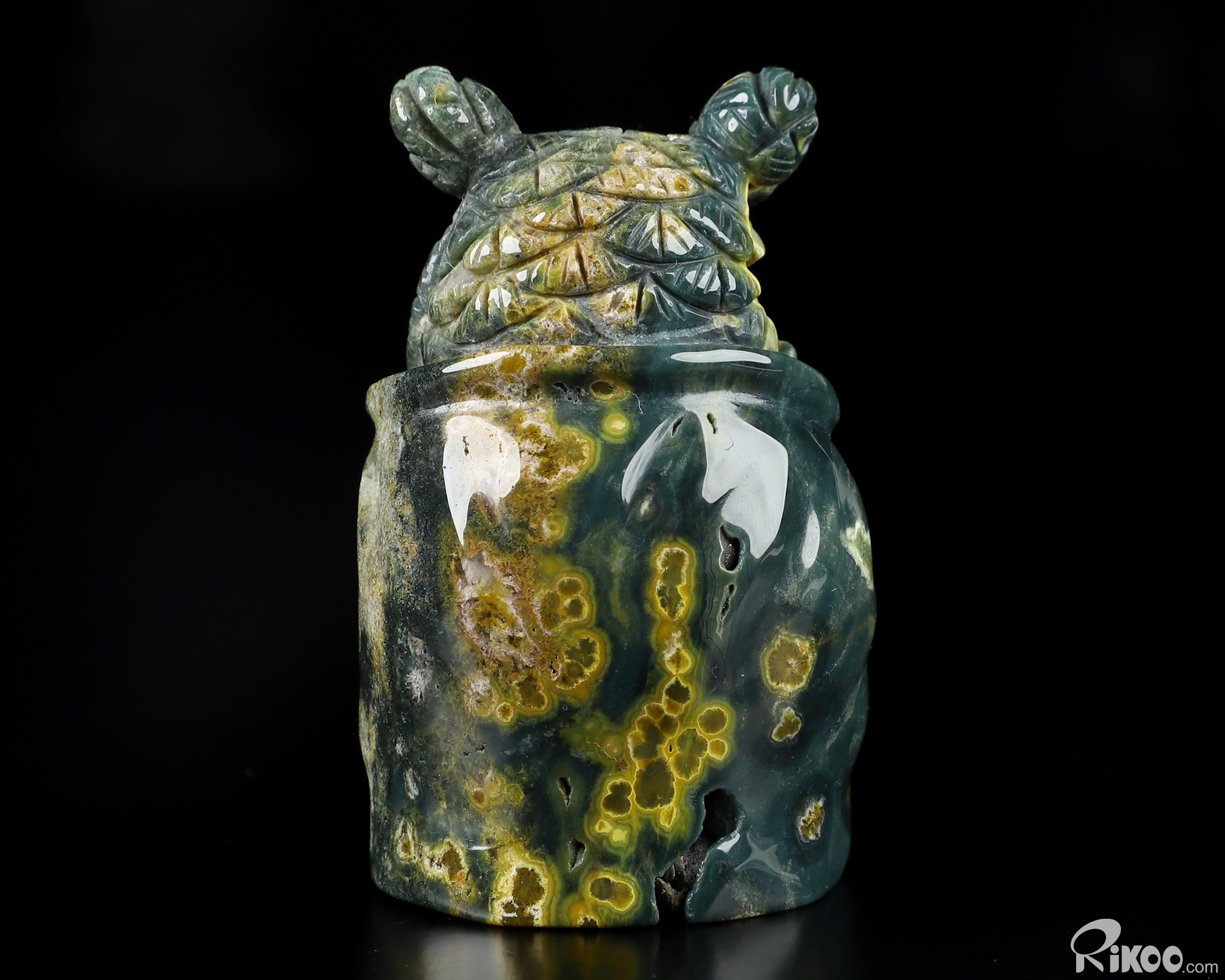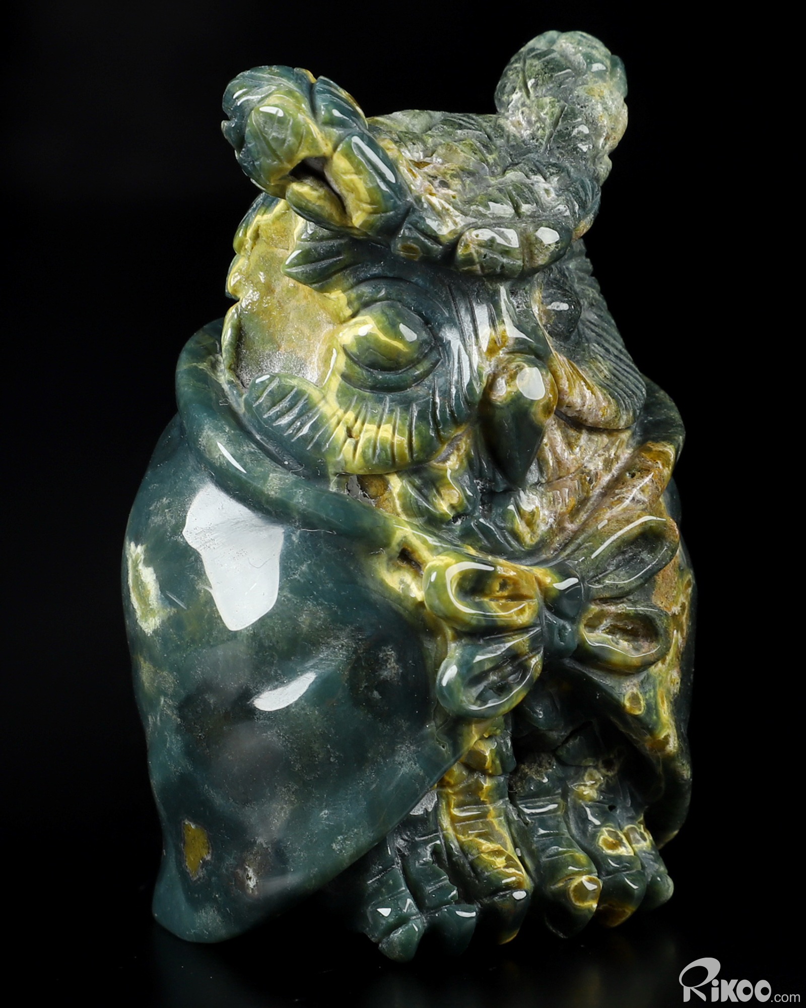 2.5" Ocean Jasper Hand Carved Crystal Owl Sculpture, Crystal Healing