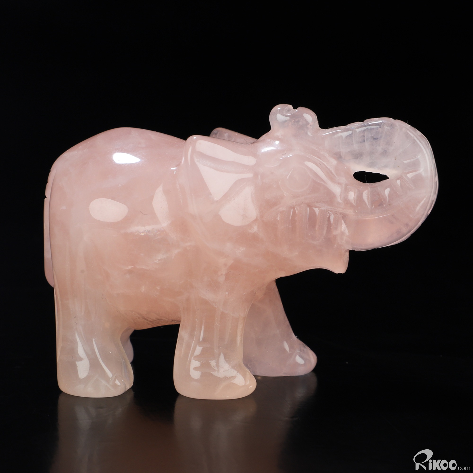 2.5" Rose Quartz Hand Carved Crystal Elephant Sculpture, Crystal Healing