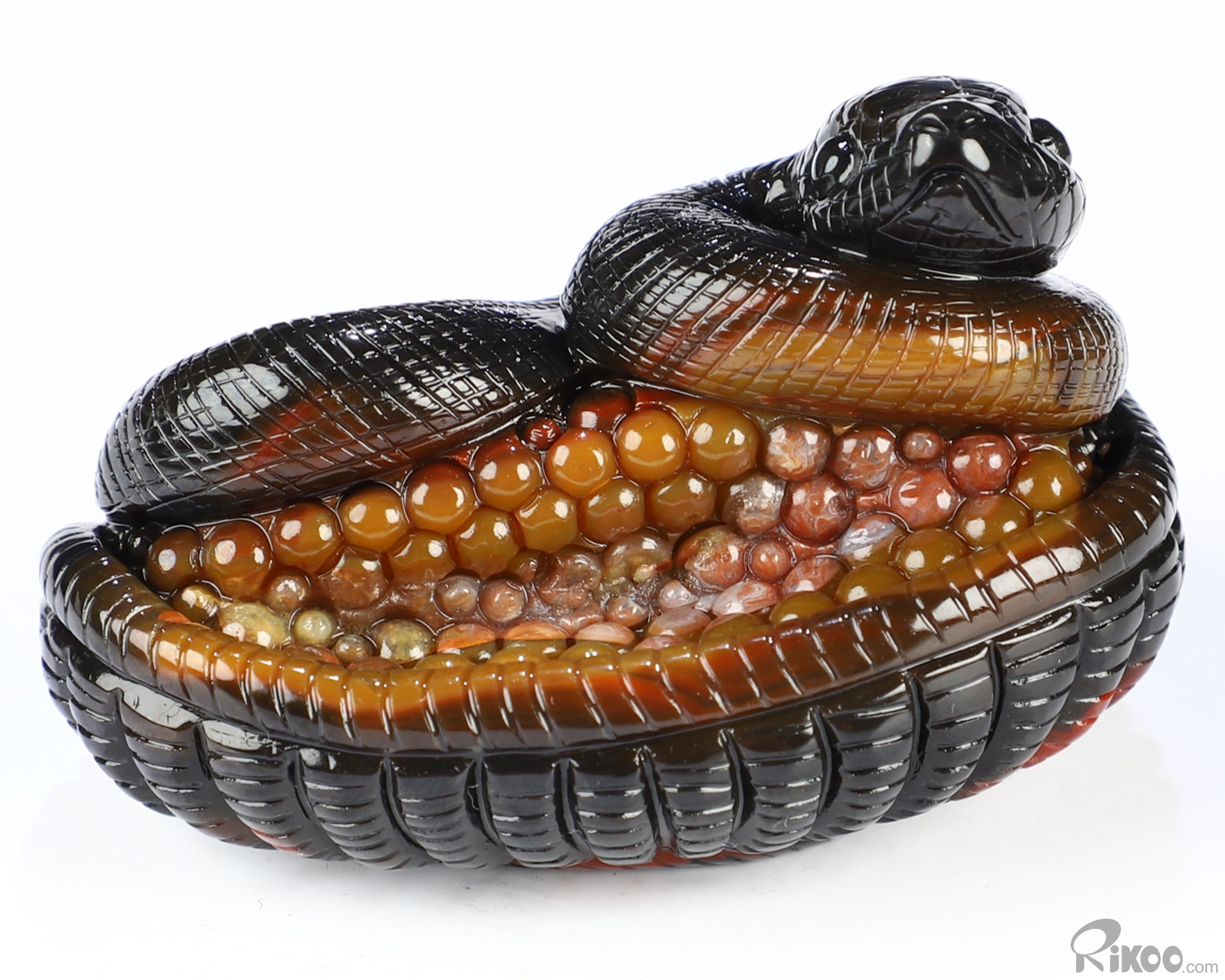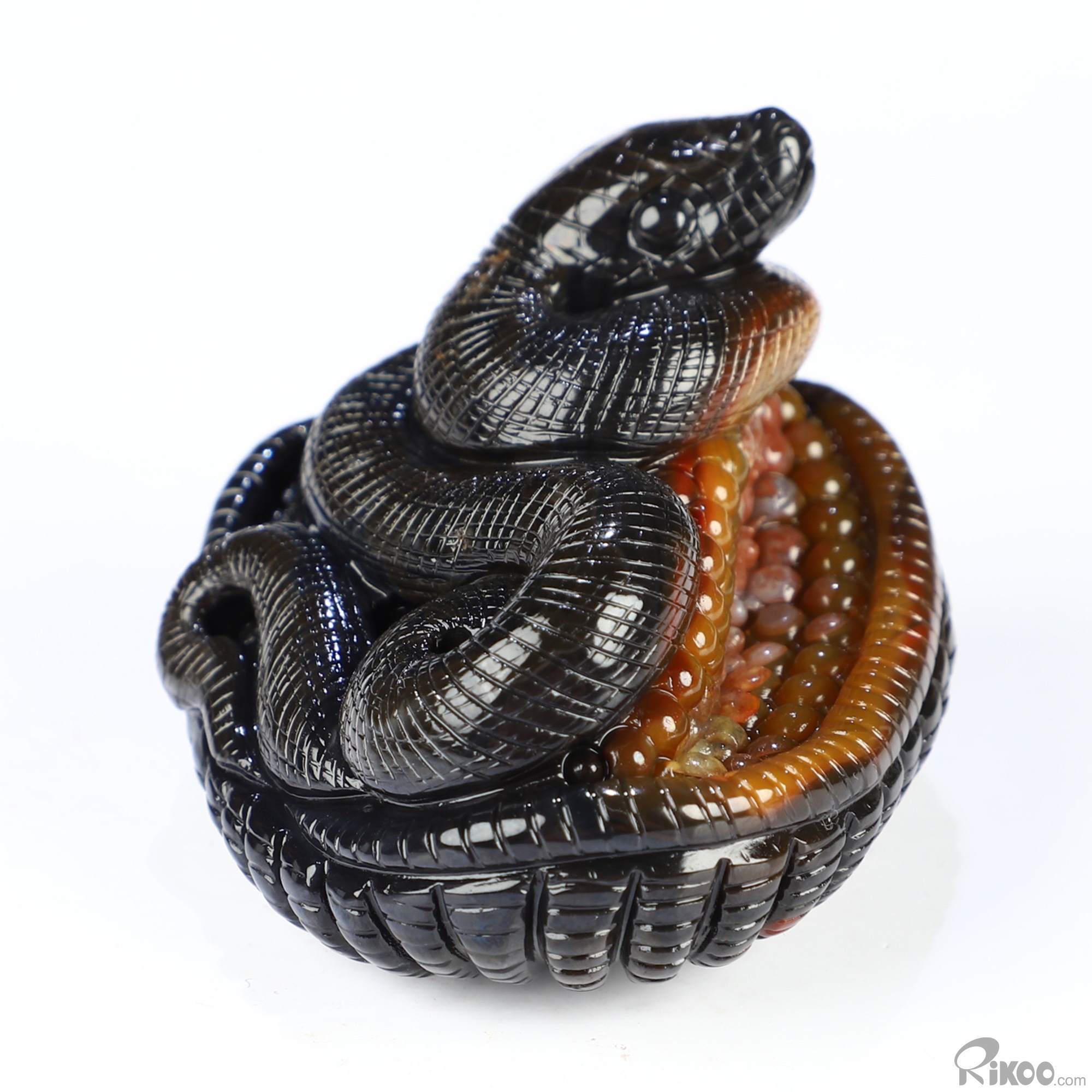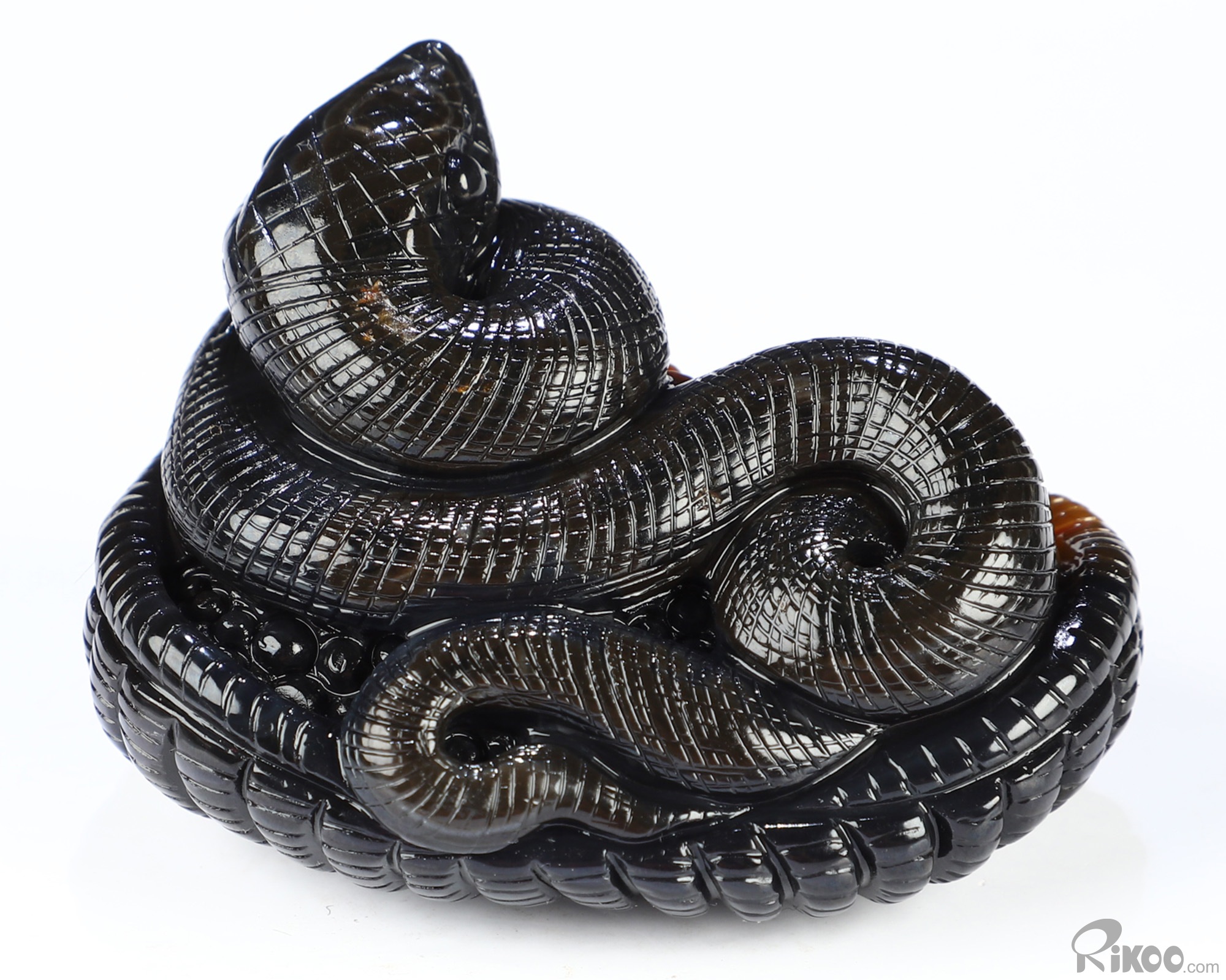 2.6" Black Zebra Agate Hand Carved Crystal Snake Sculpture, Crystal Healing