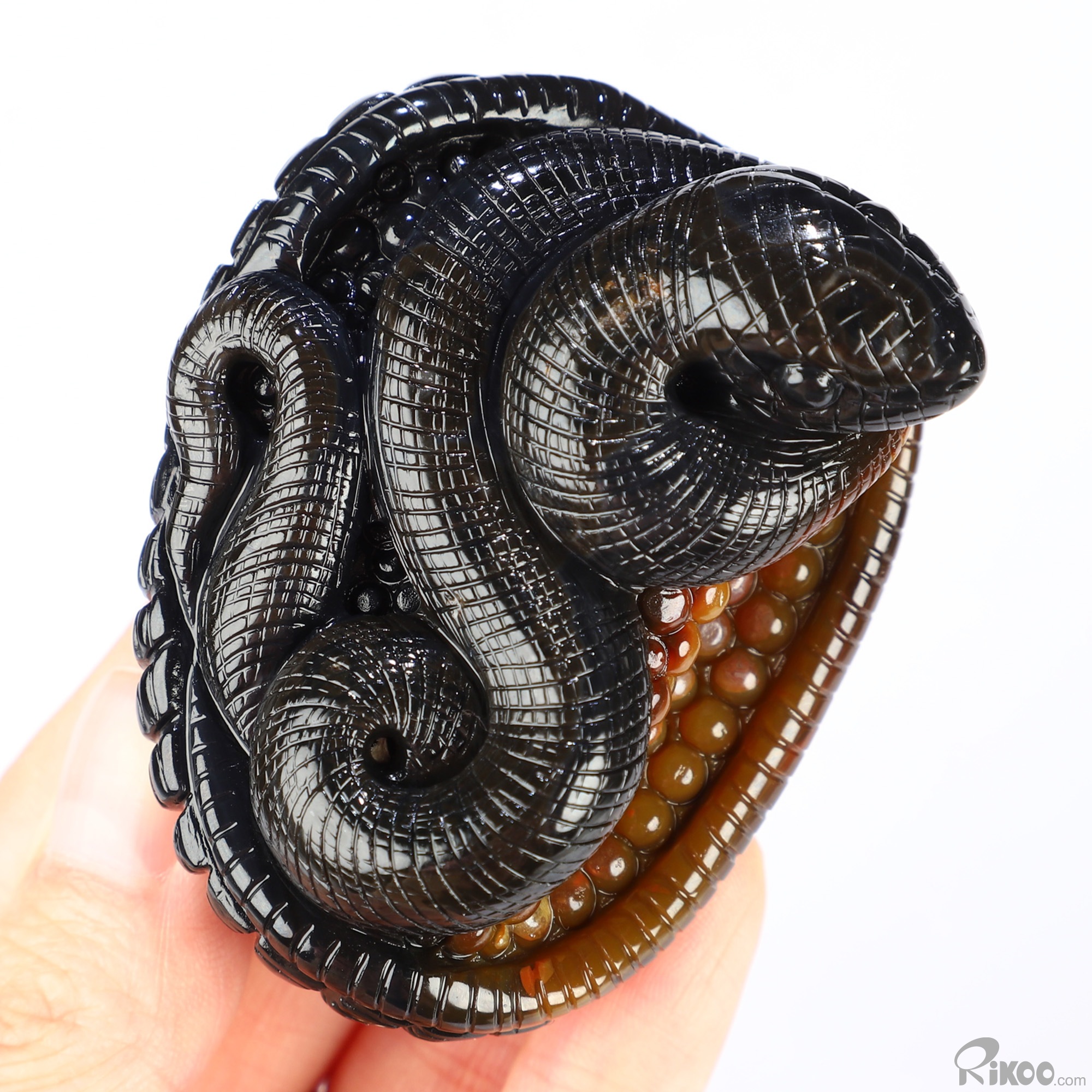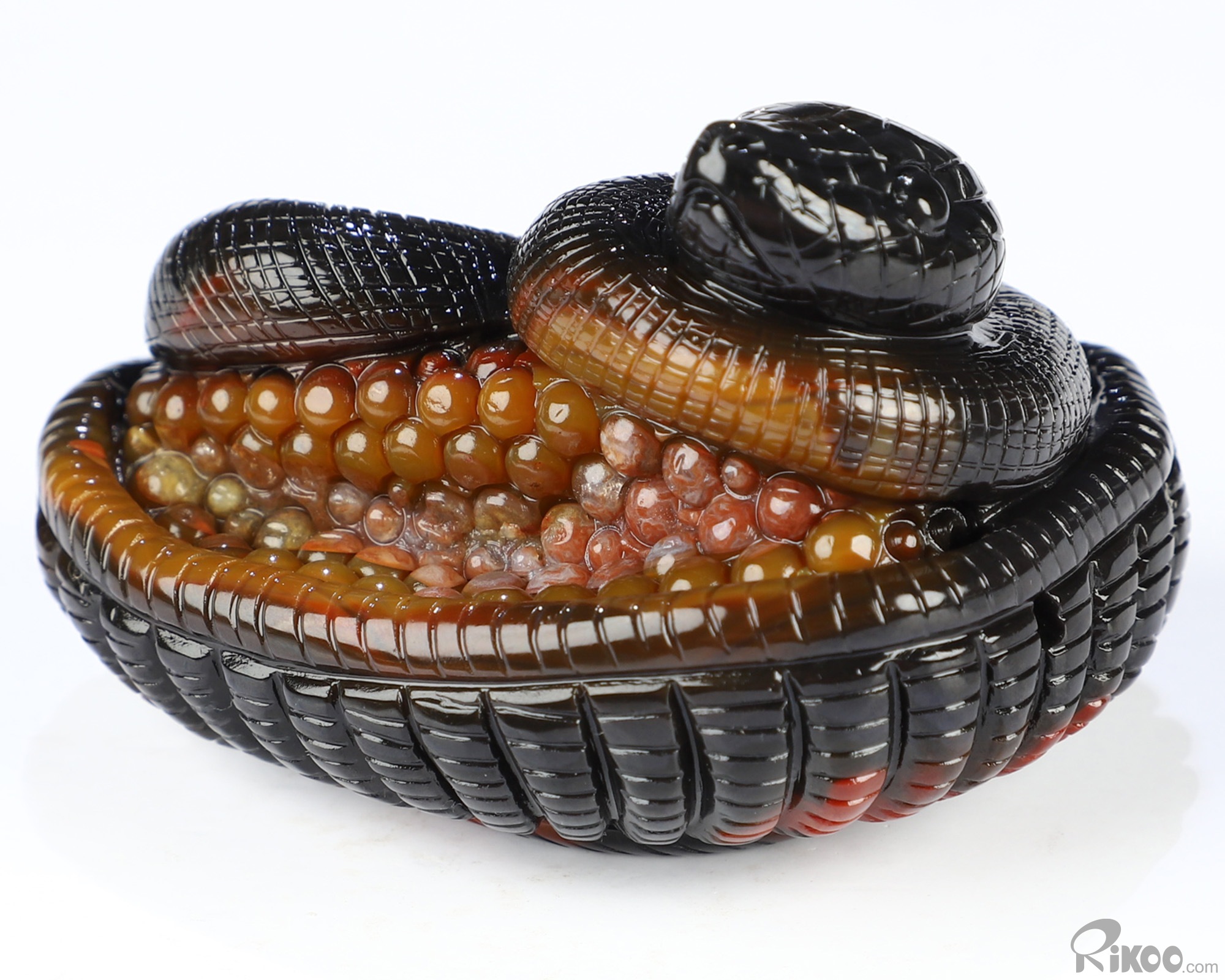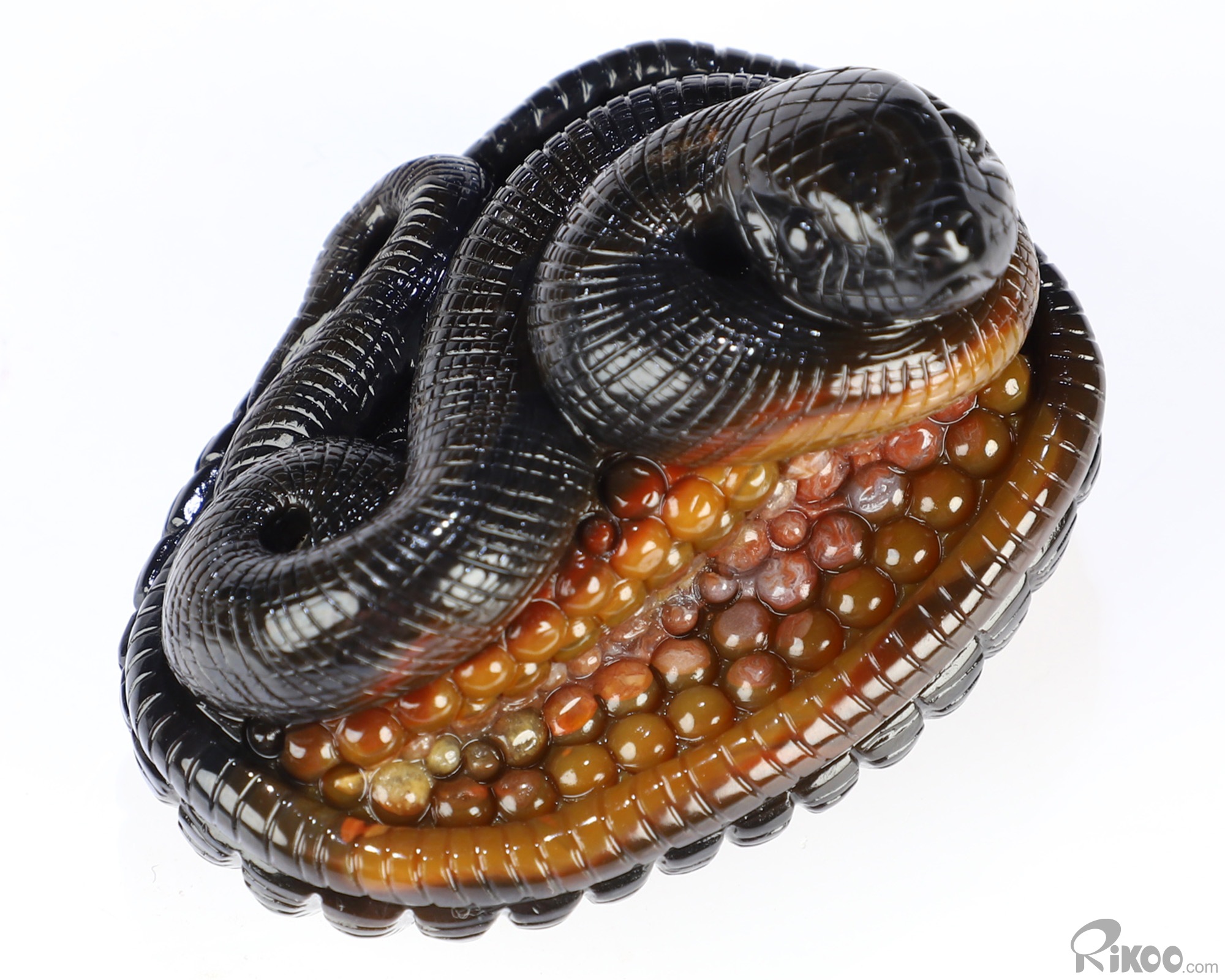 2.6" Black Zebra Agate Hand Carved Crystal Snake Sculpture, Crystal Healing