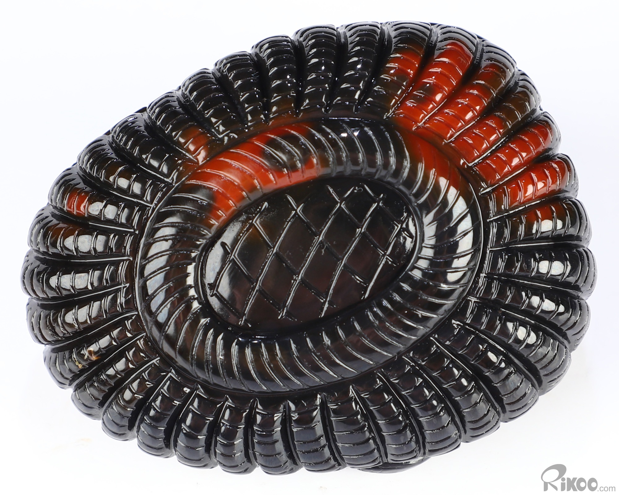 You are looking at a Black Zebra Agate sculpture. The sculpture is 2.6 inches long.
