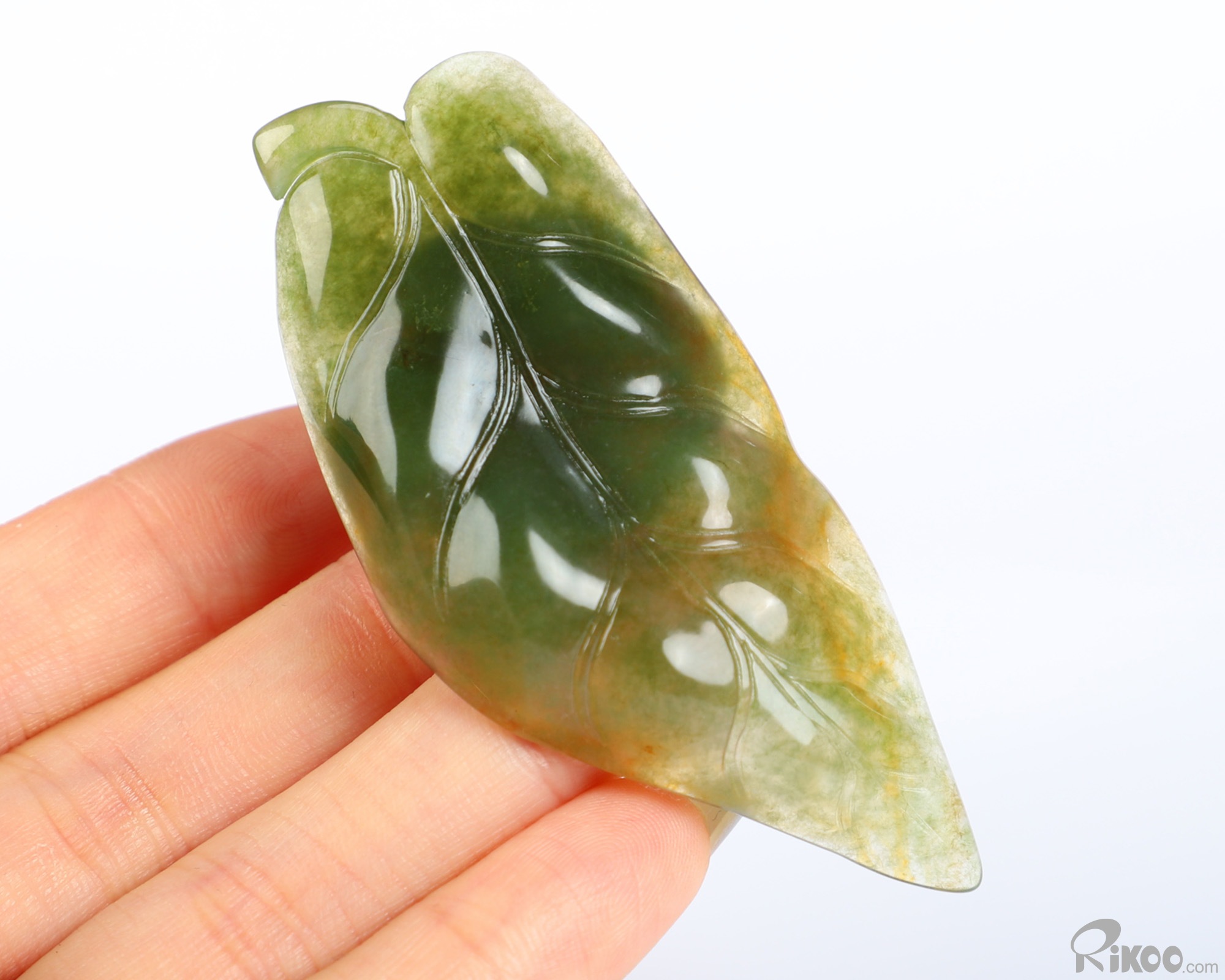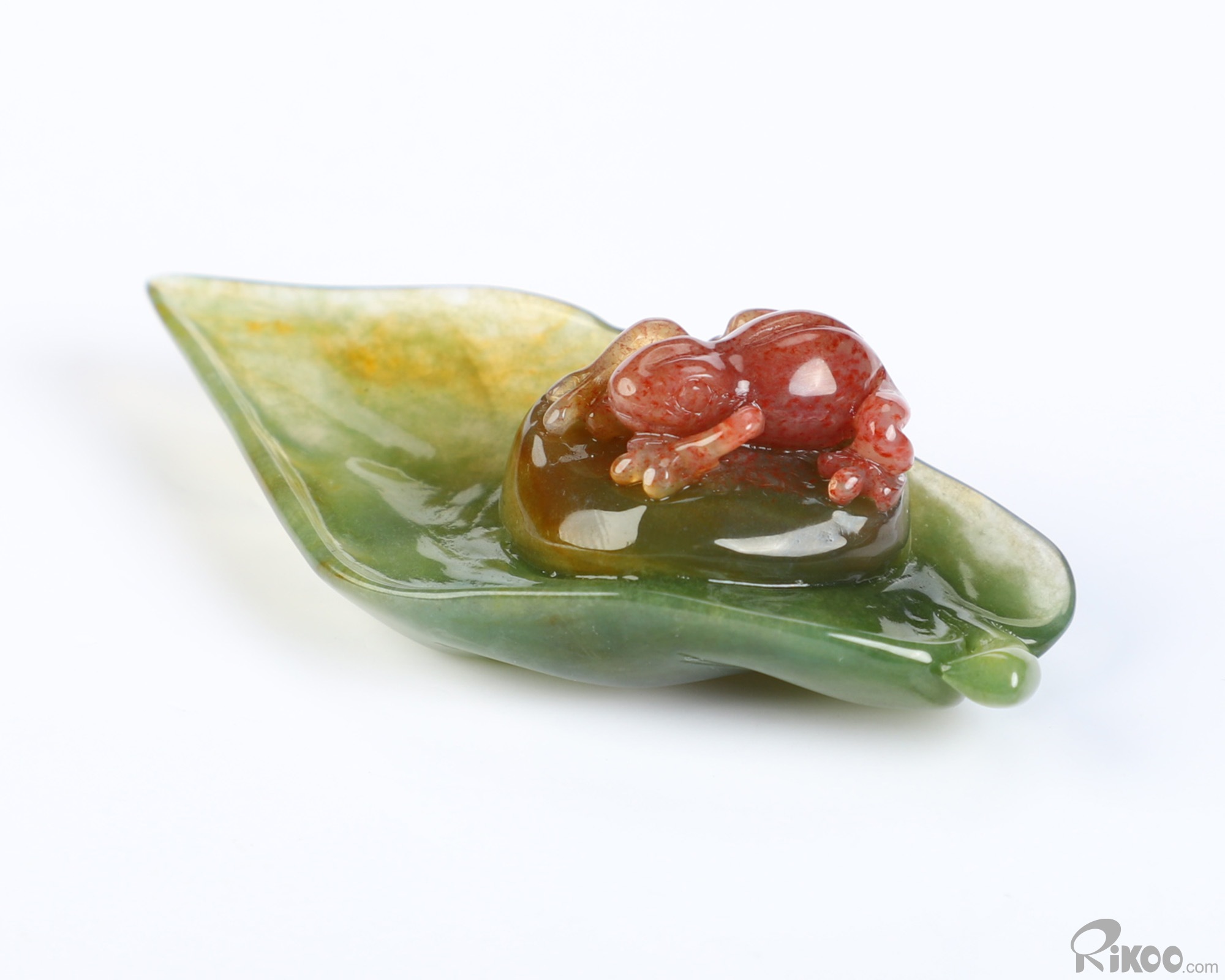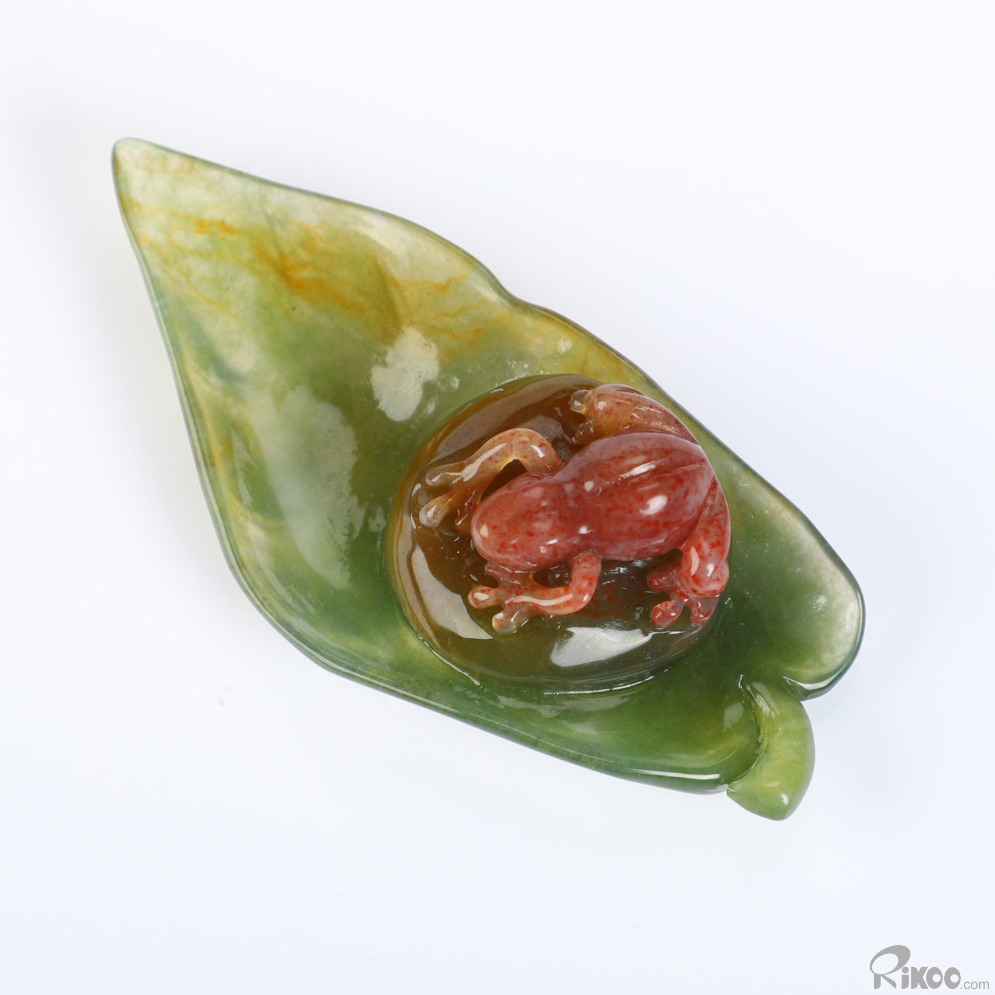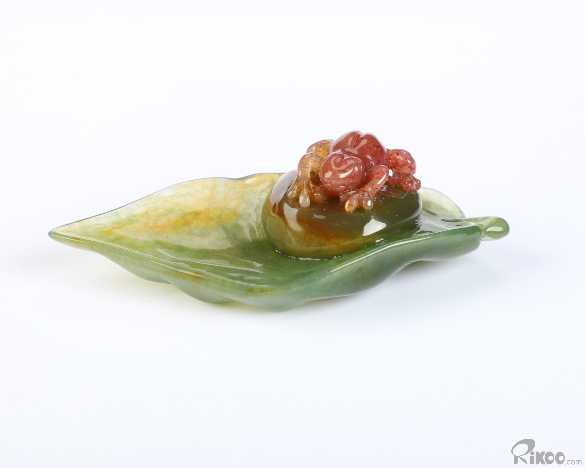 2.6" Indian Agate Hand Carved Crystal Frog and Leaf Sculpture, Crystal Healing