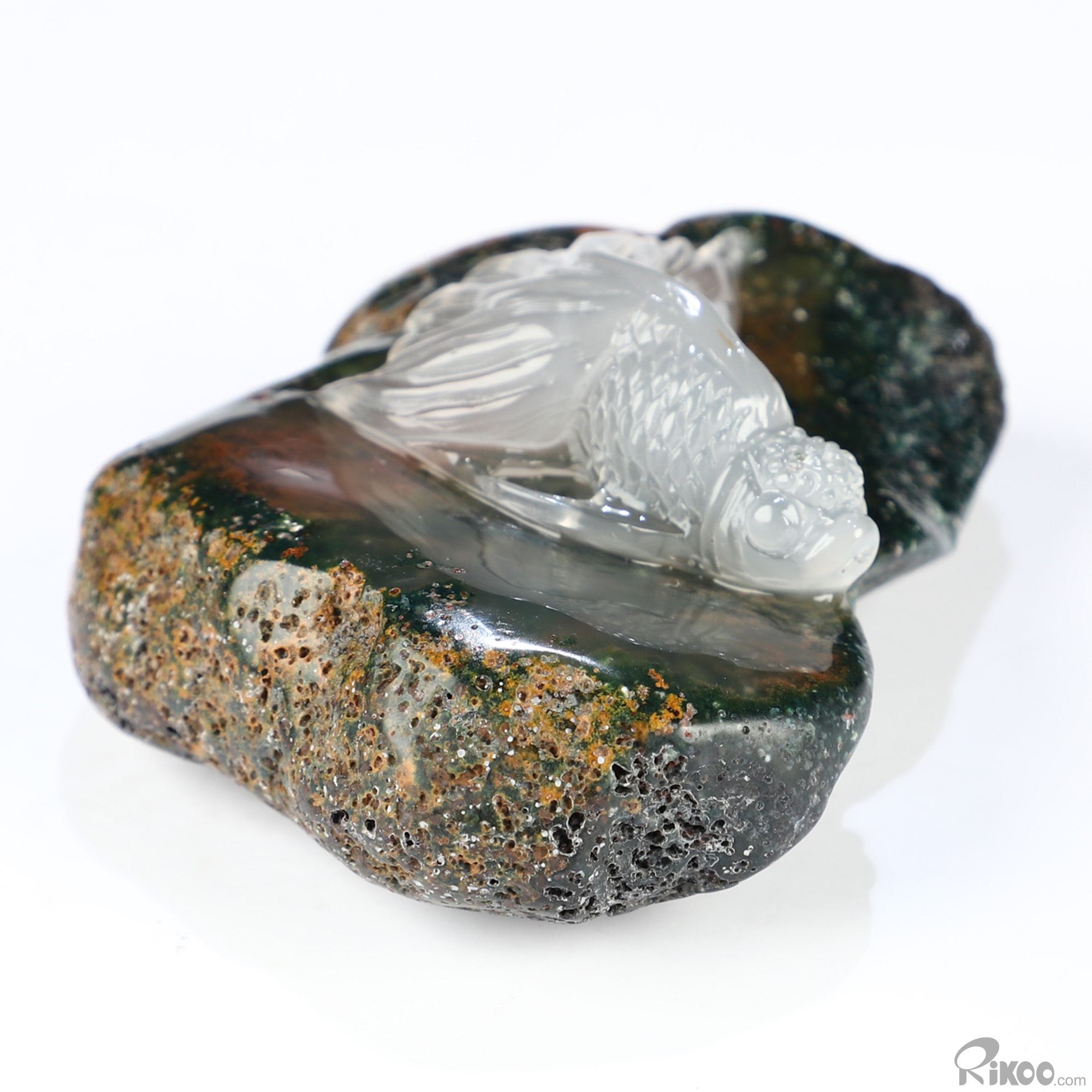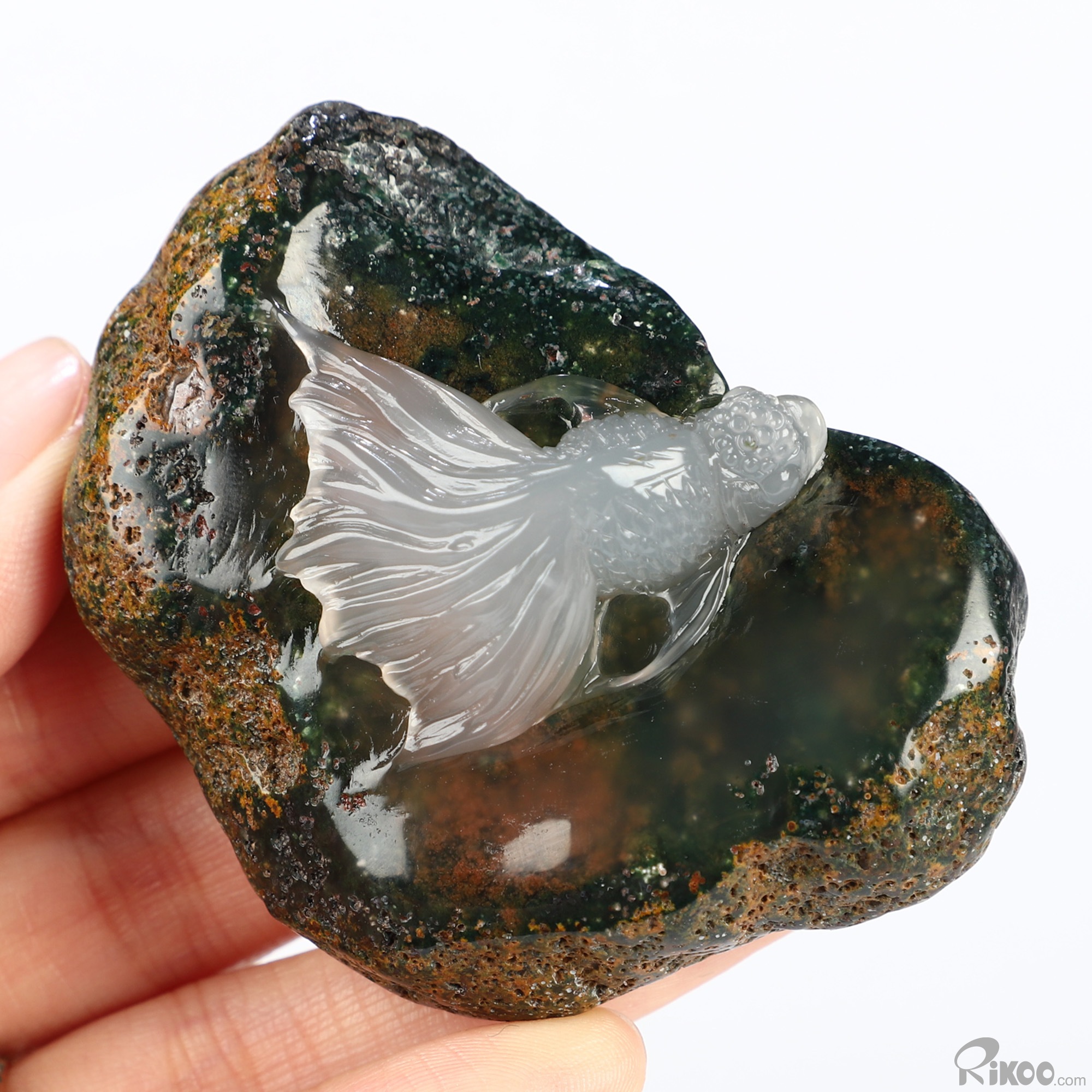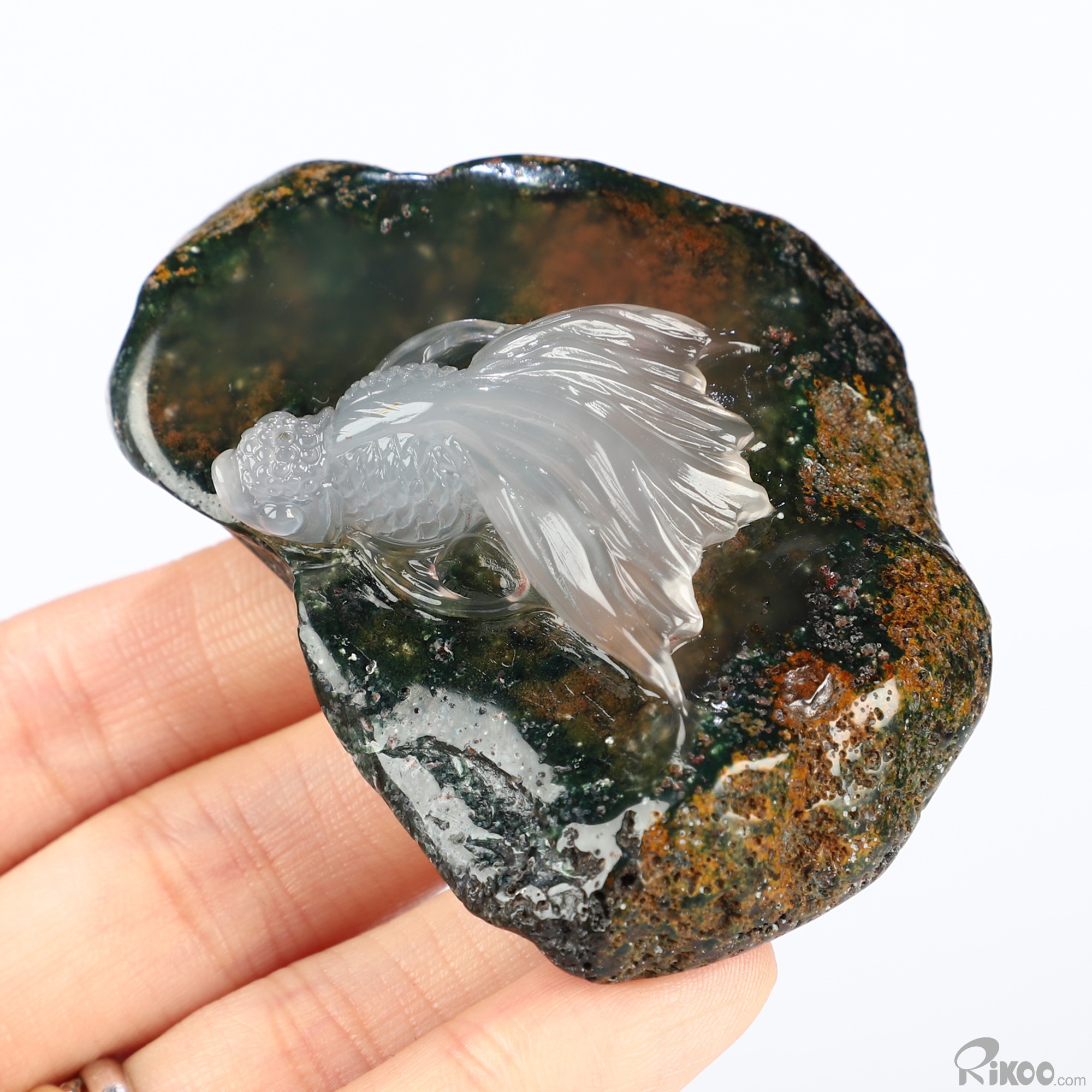 2.6" Indian Agate Hand Carved Crystal Goldfish Sculpture, Crystal Healing