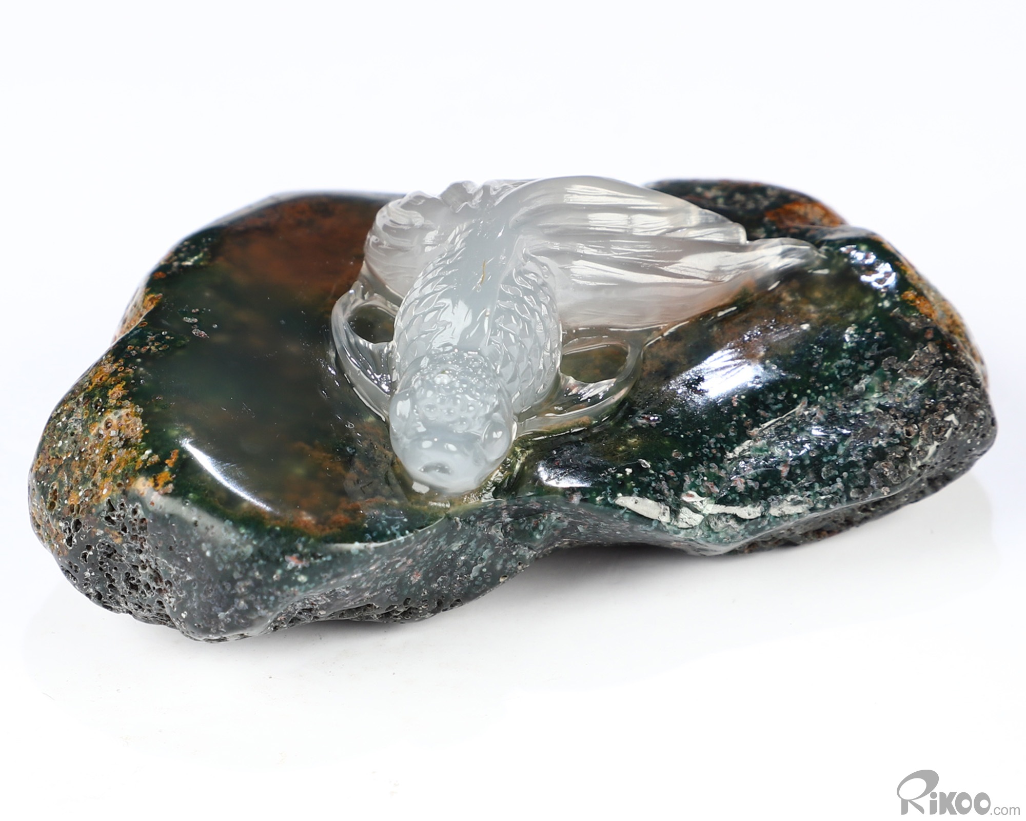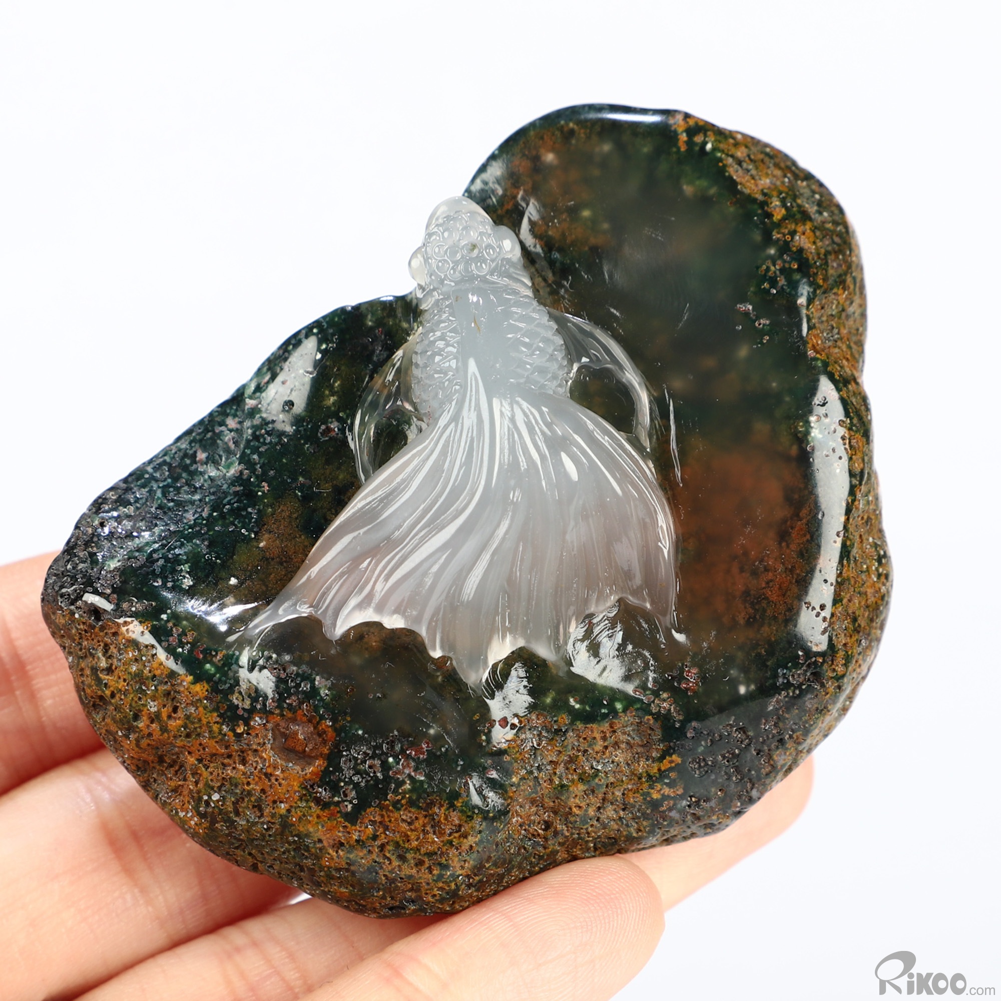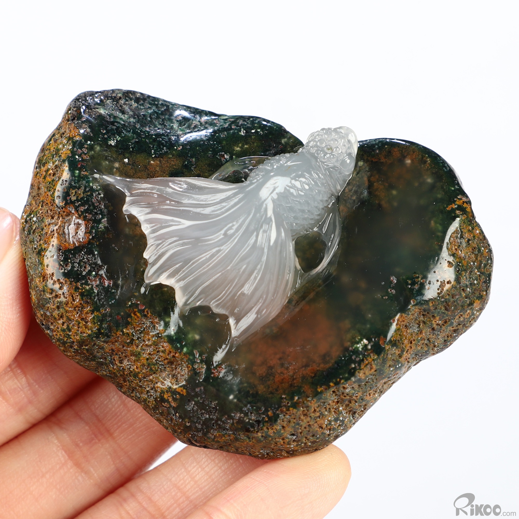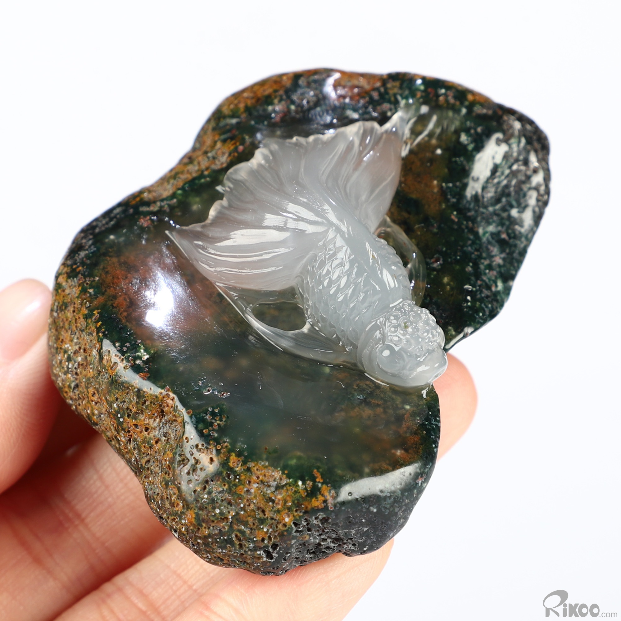 2.6" Indian Agate Hand Carved Crystal Goldfish Sculpture, Crystal Healing