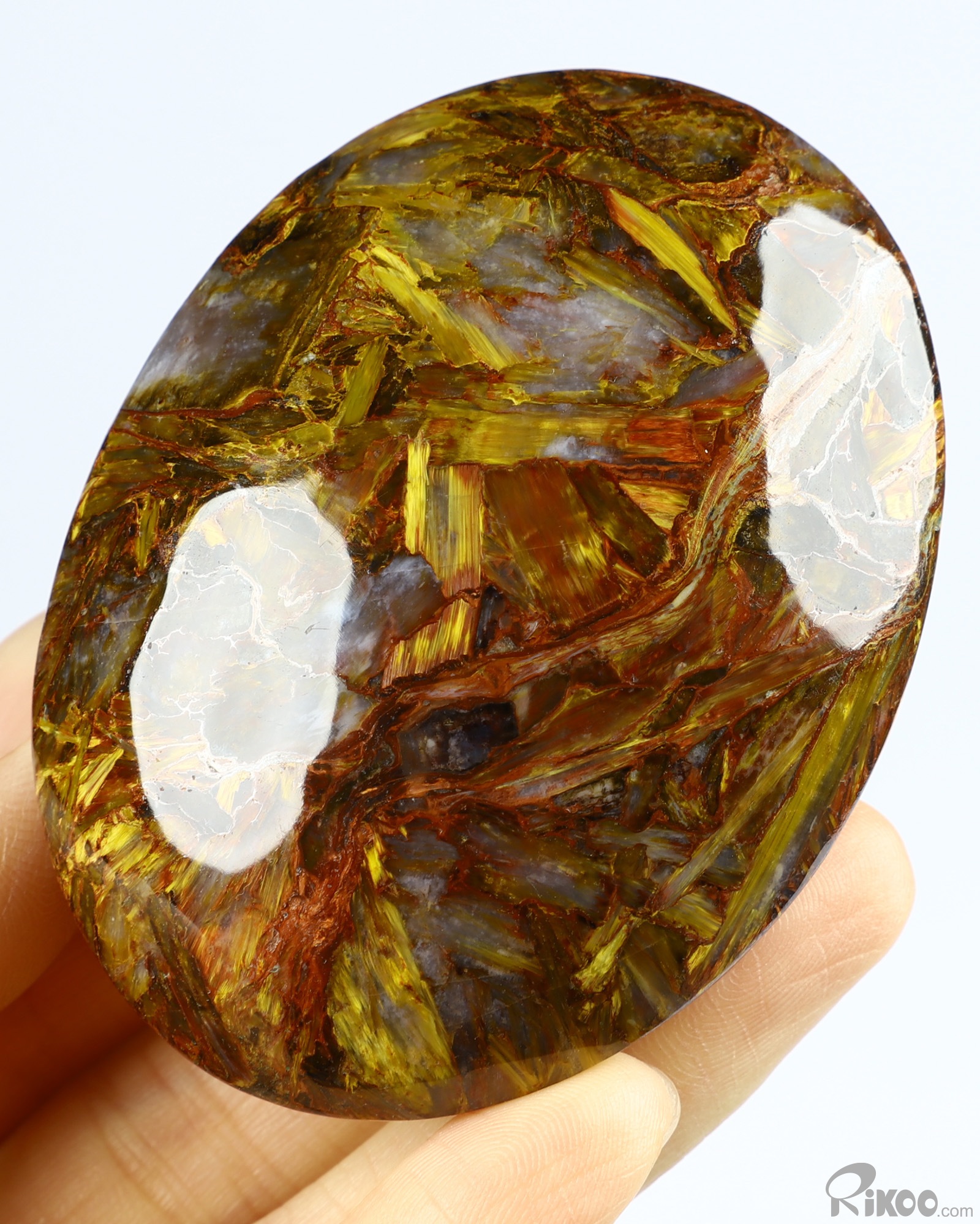 Gemstone 2.6" Pietersite Carved Crystal Palm, Crystal Healing