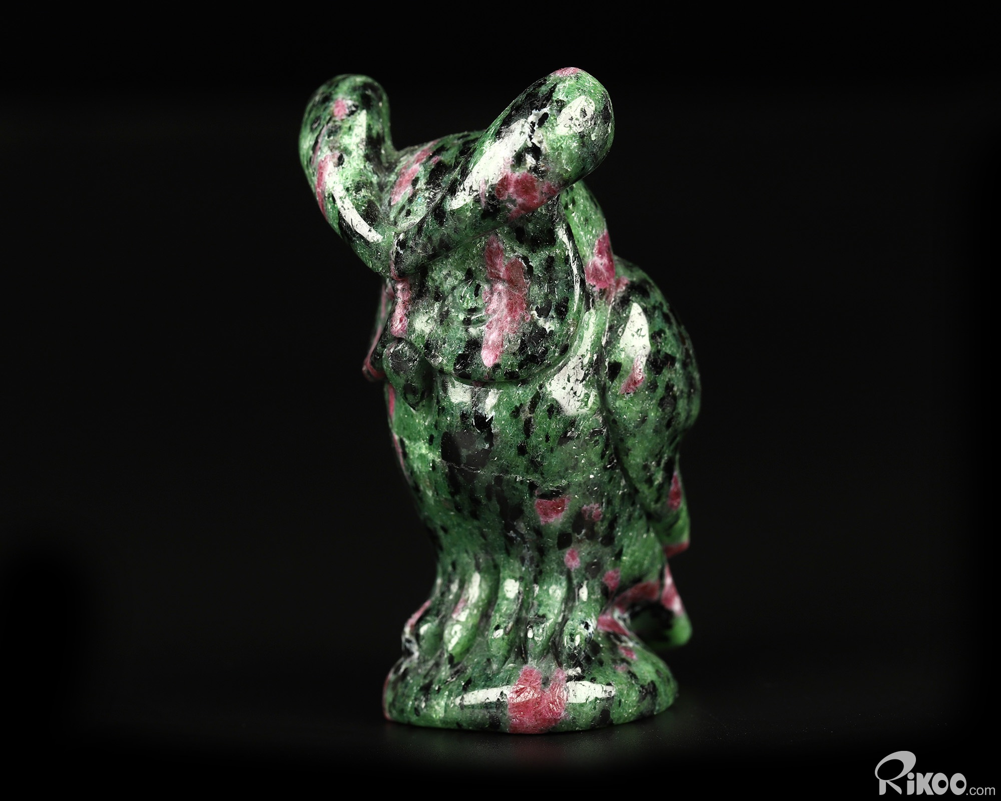You are looking at a Ruby Zoisite sculpture. The sculpture is 2.6 inches long.
