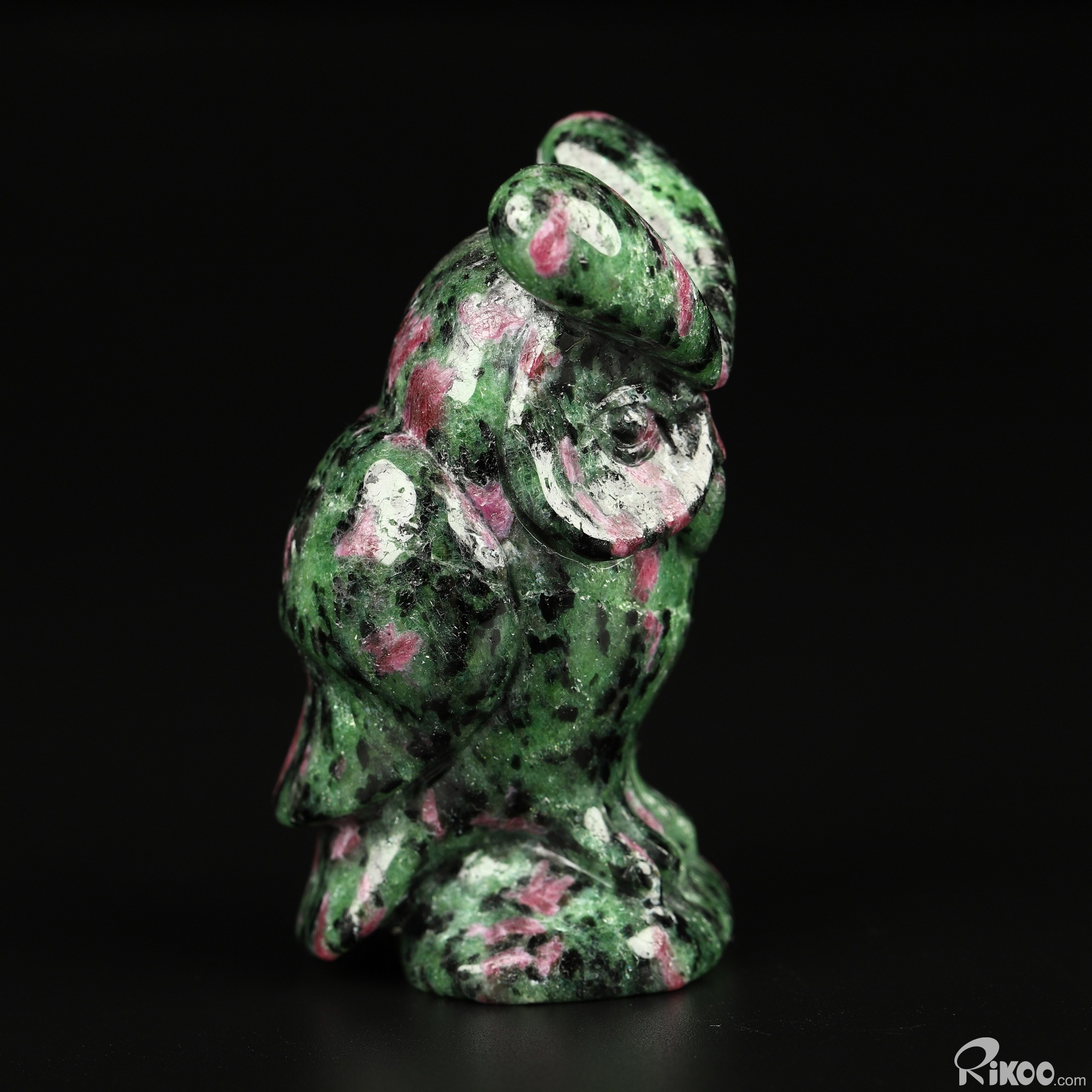 2.6" Ruby Zoisite Hand Carved Crystal Owl Sculpture, Crystal Healing