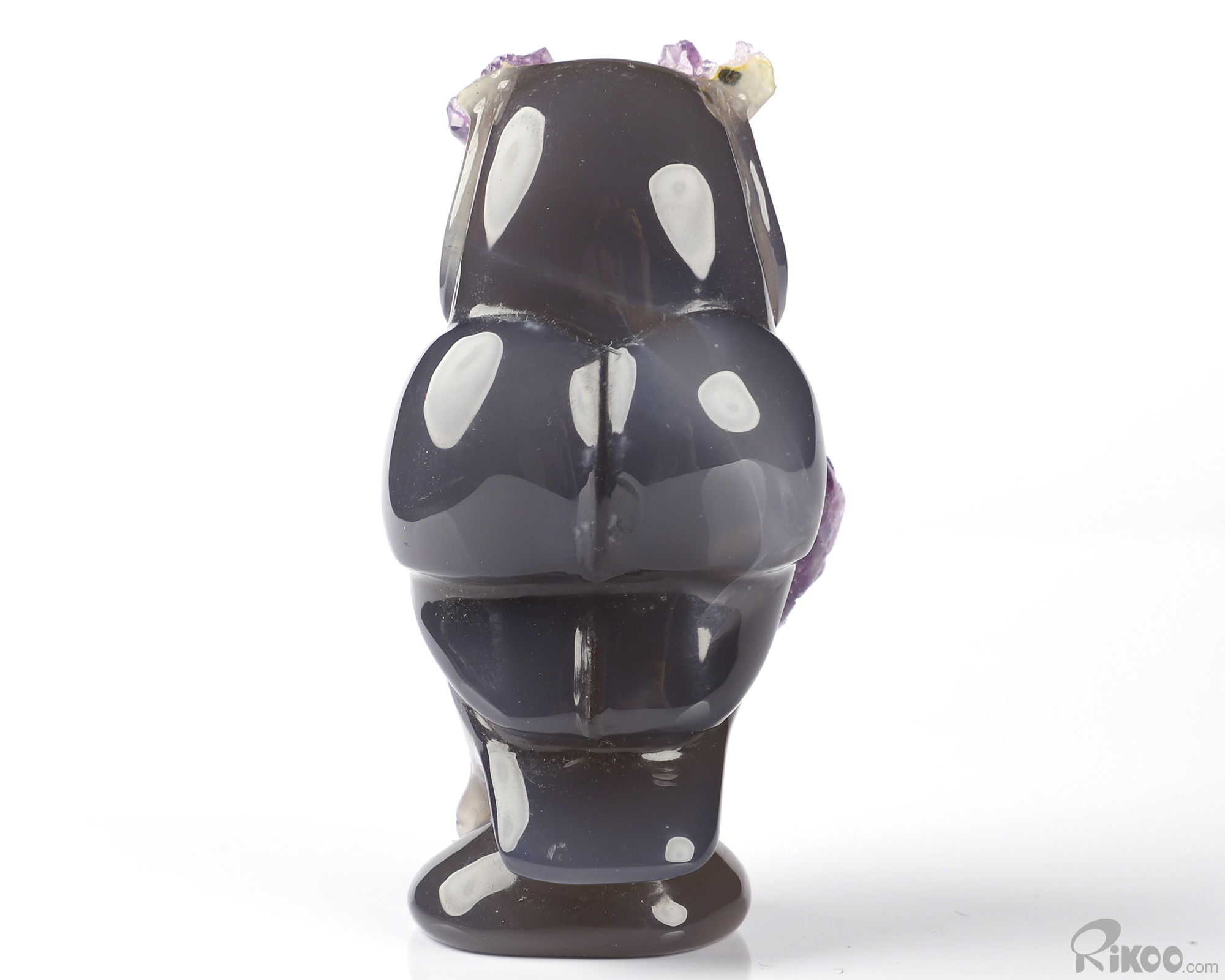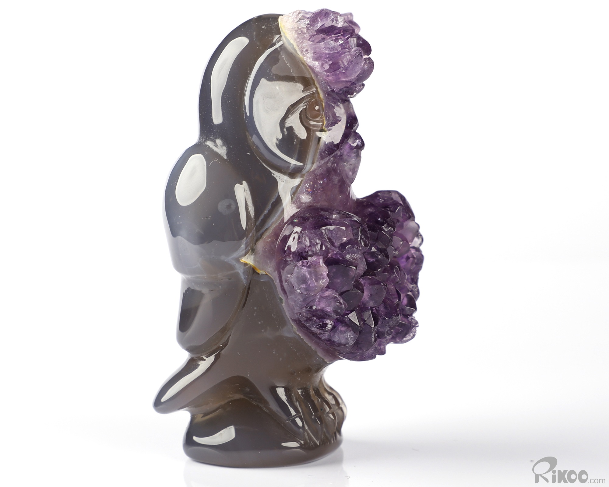 You are looking at an Agate Amethyst Druse Owl. The Owl is 2.7 inches long from top to bottom.