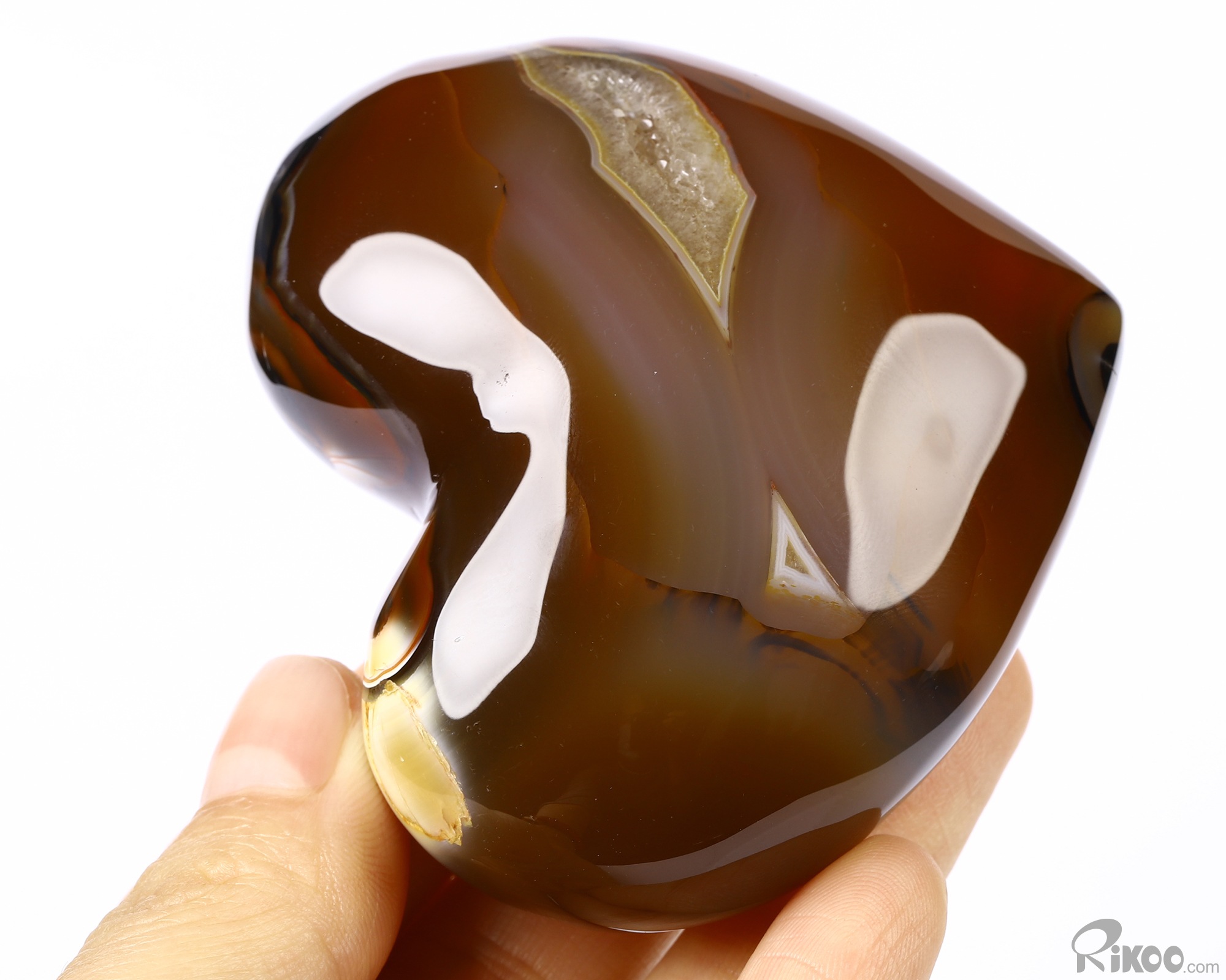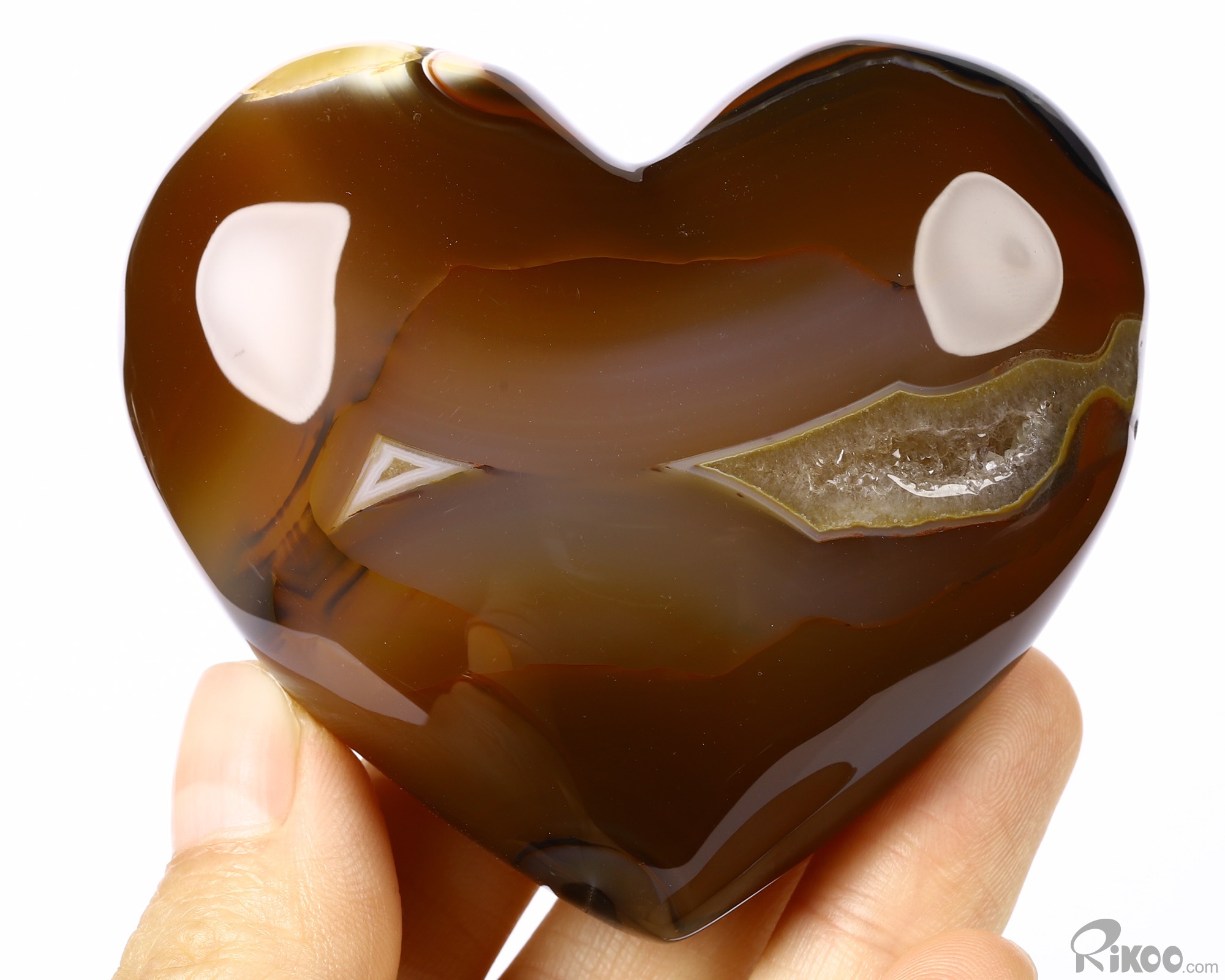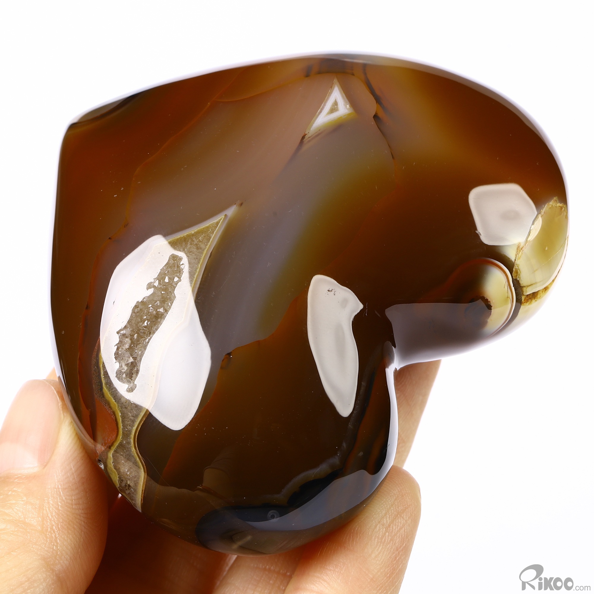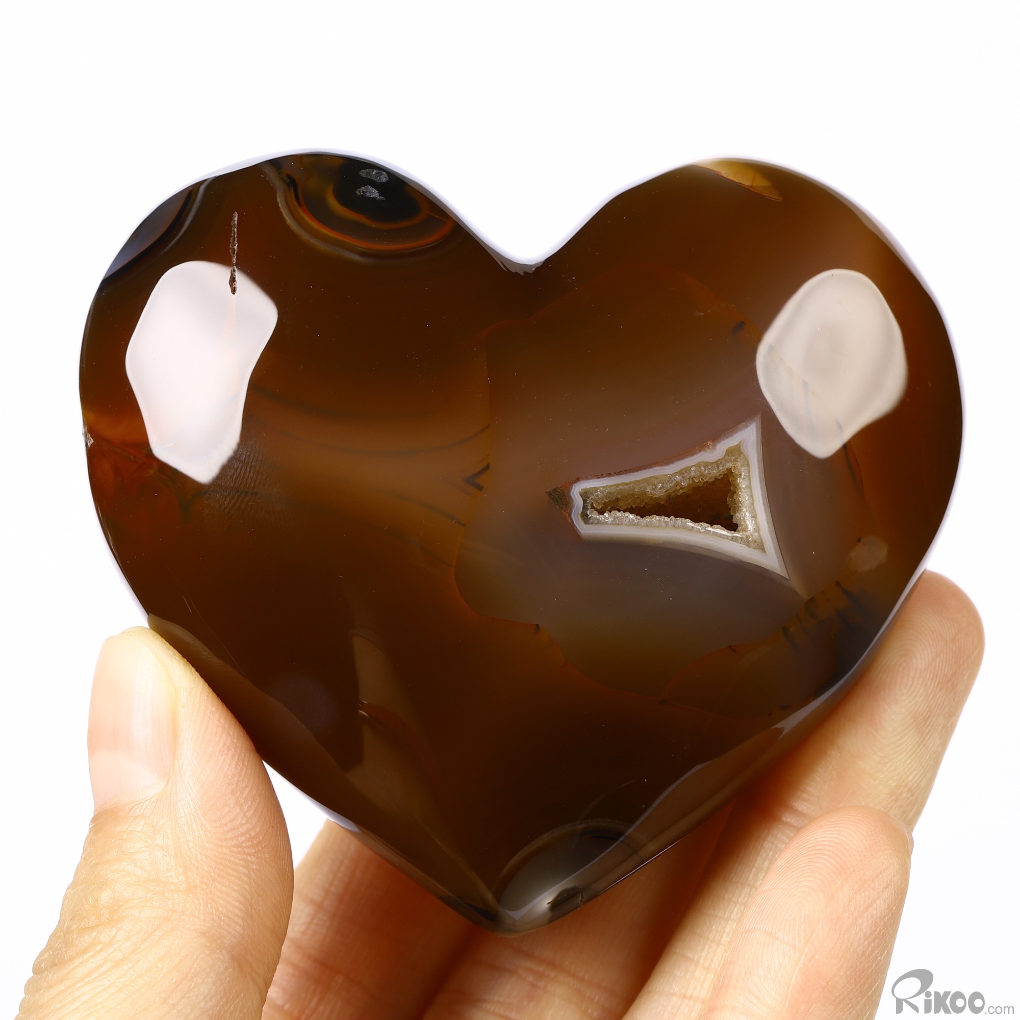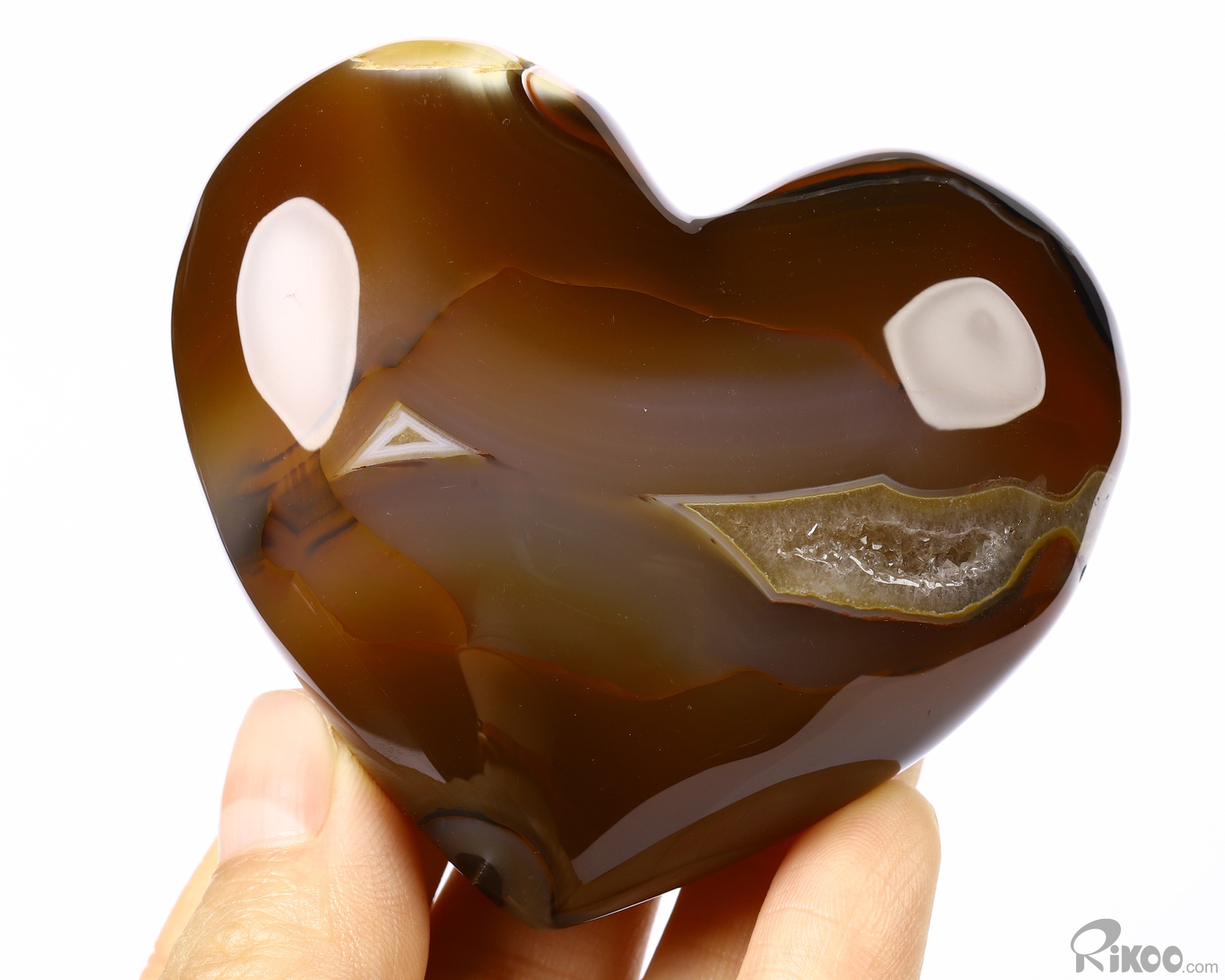 2.7" Agate Geode Hand Carved Crystal Heart Sculpture, Crystal Healing
