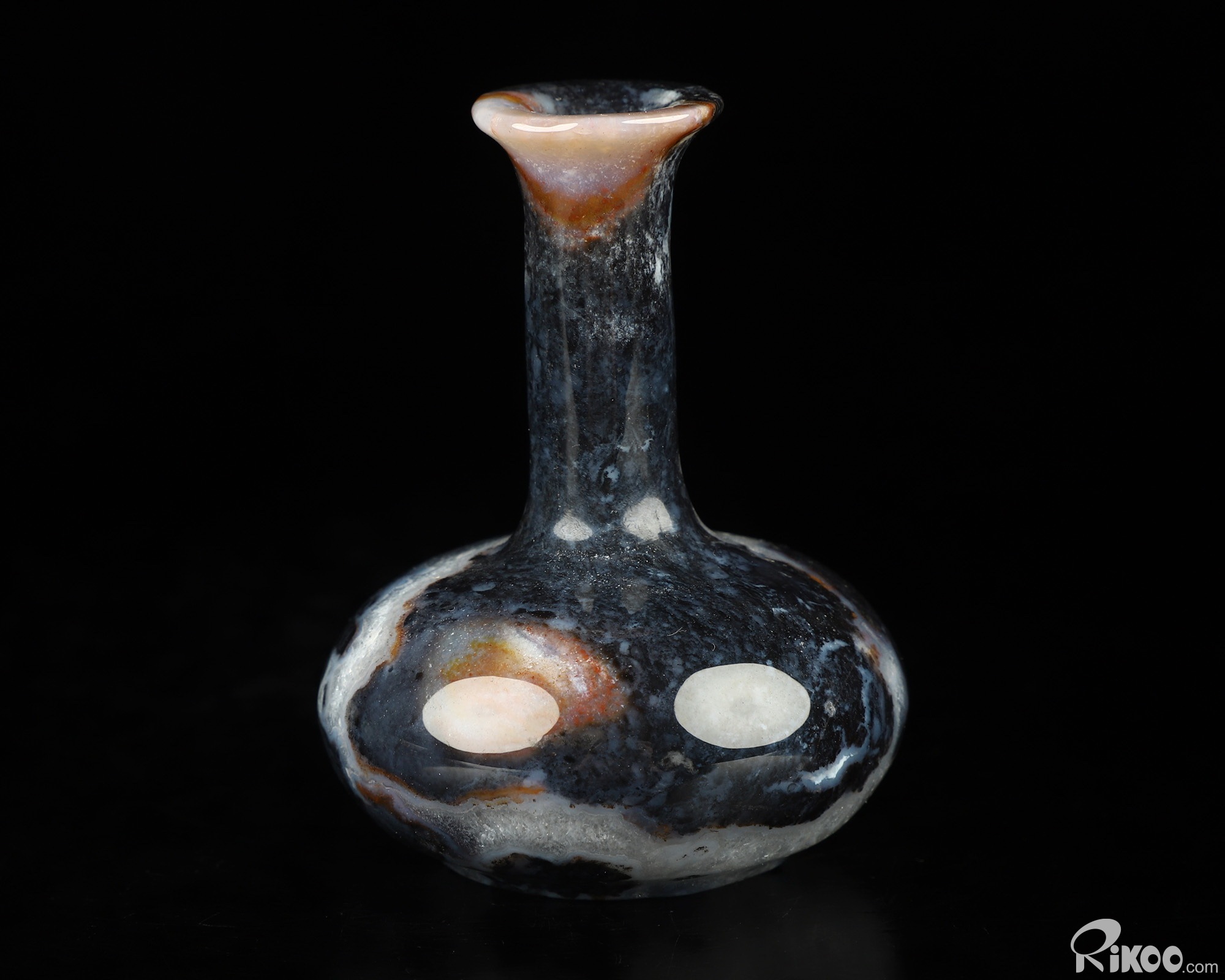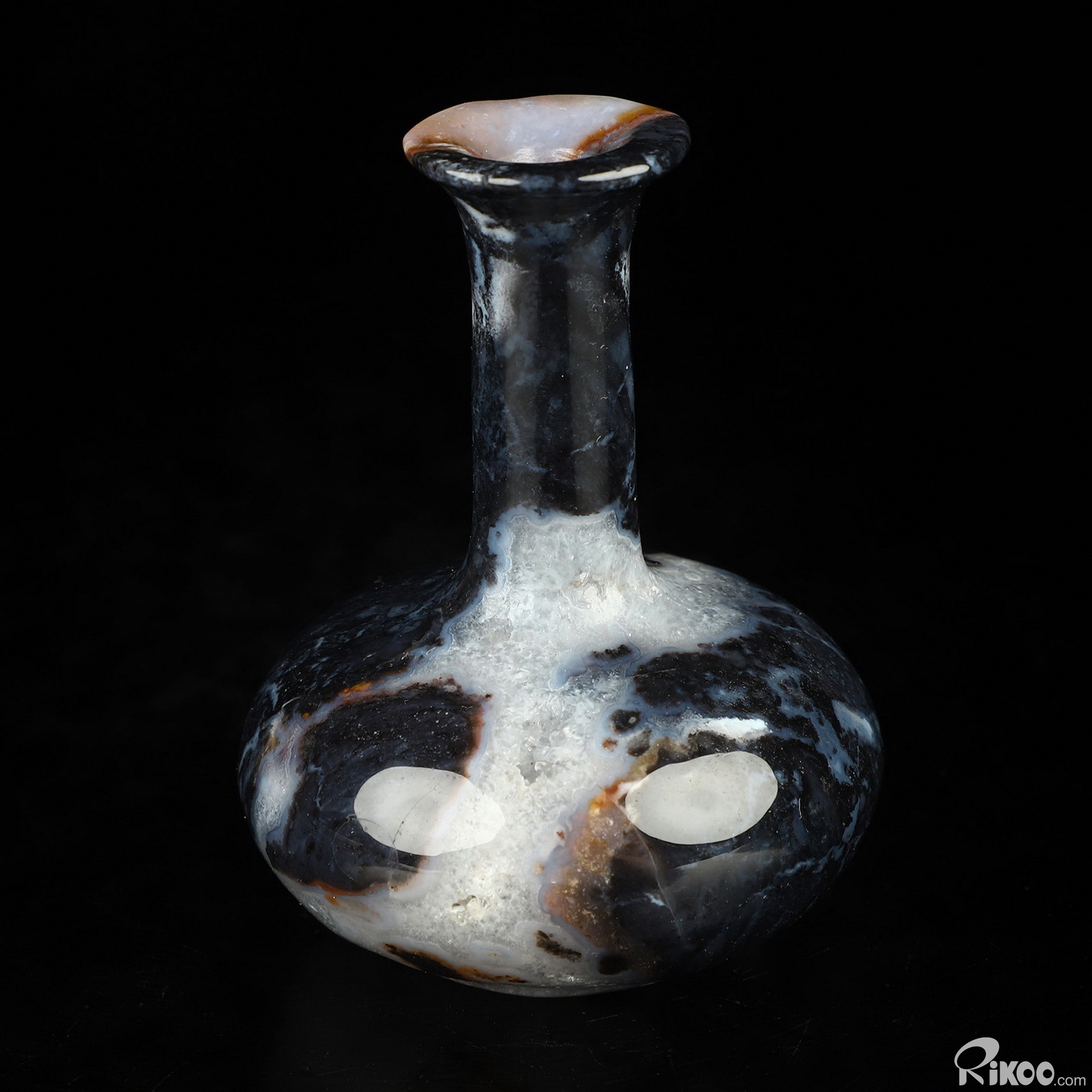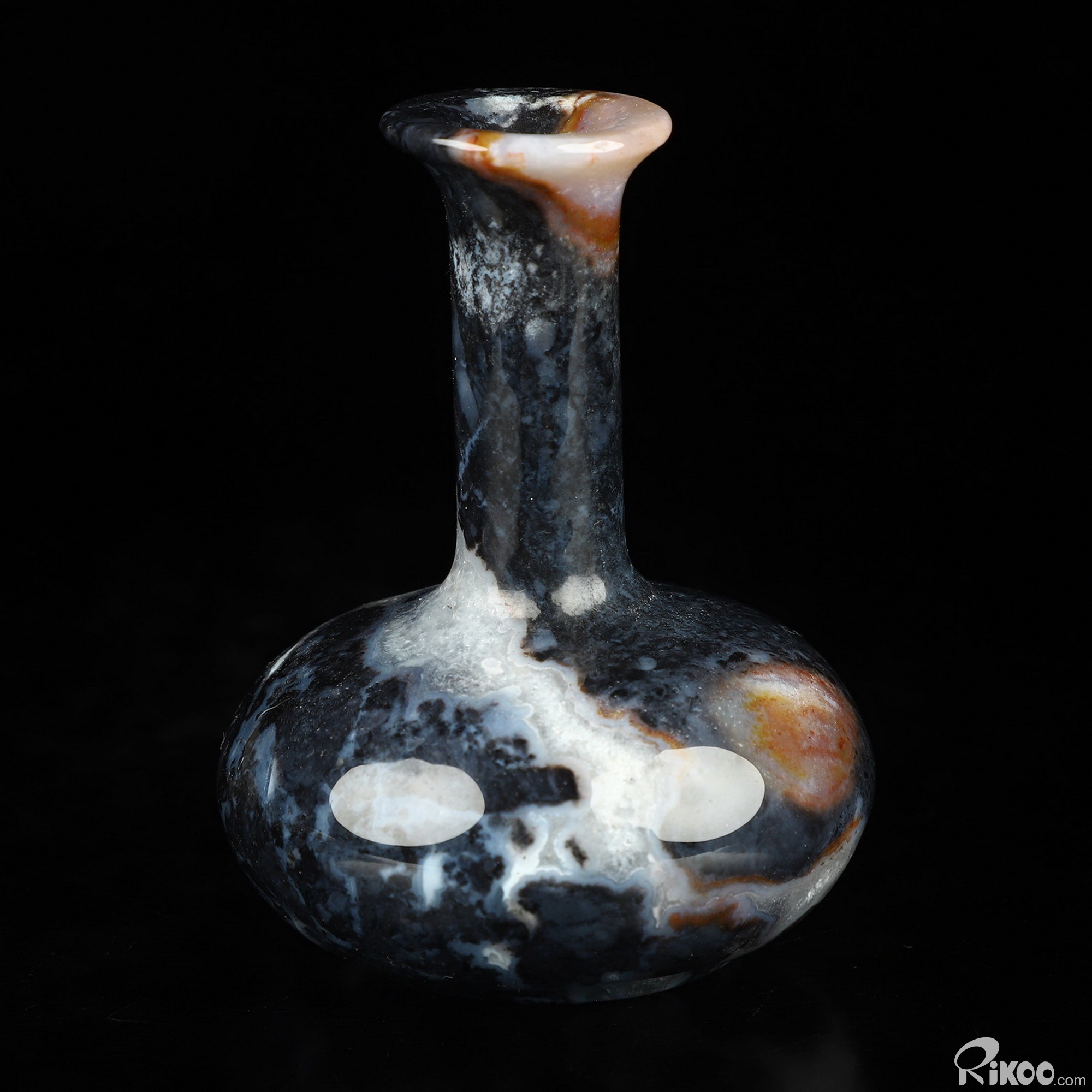 2.7" Black Zebra Agate Hand Carved Crystal Vase Sculpture, Crystal Healing