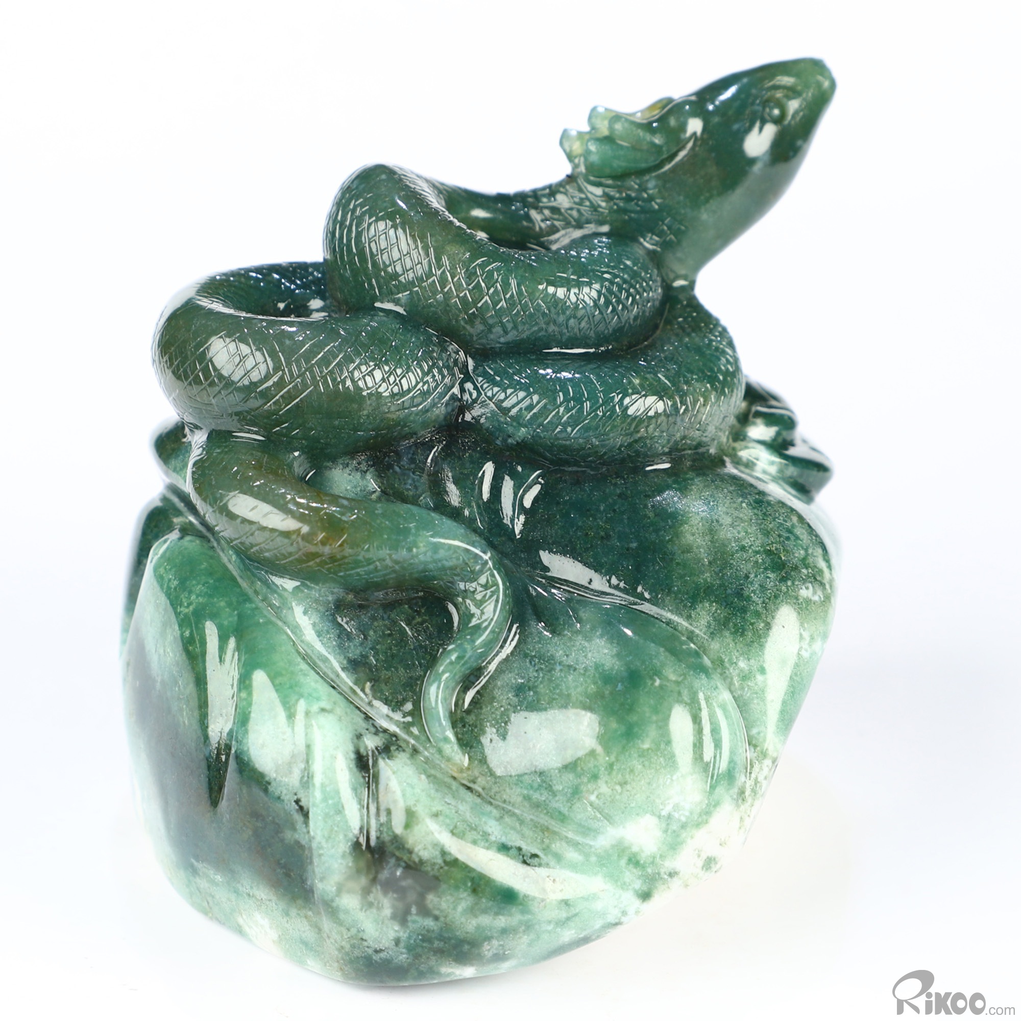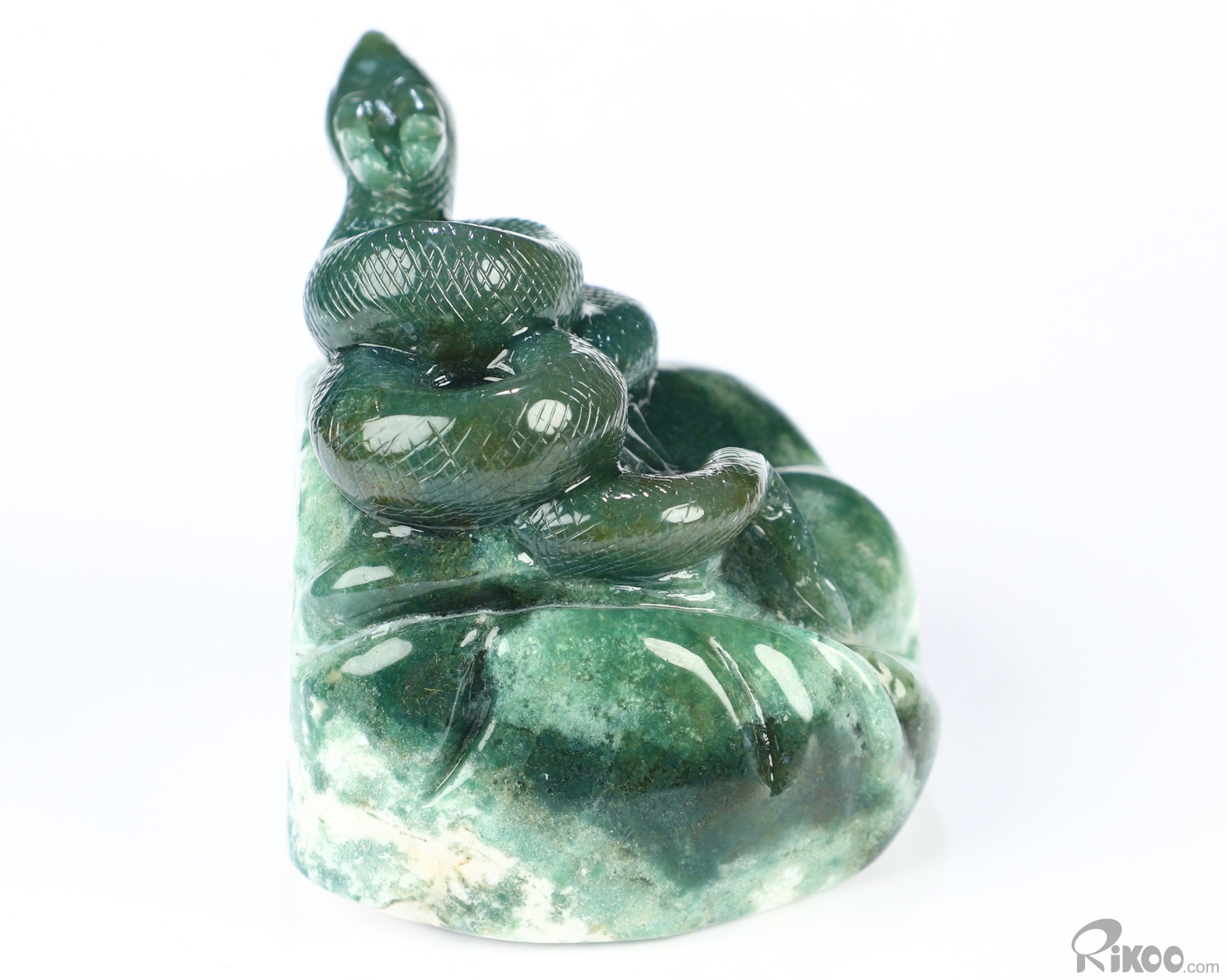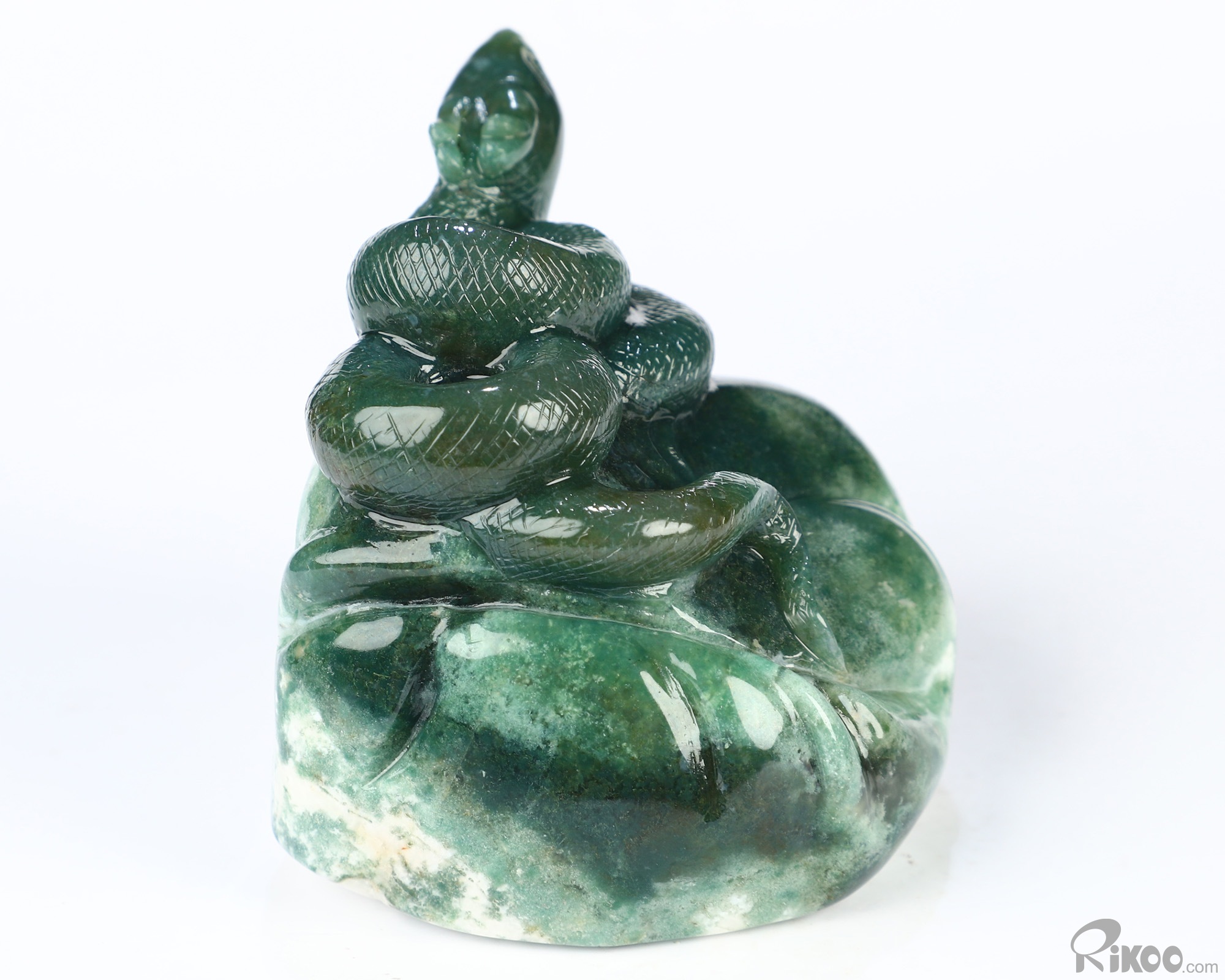 2.7" Green Moss Agate Hand Carved Crystal Snake Sculpture, Crystal Healing