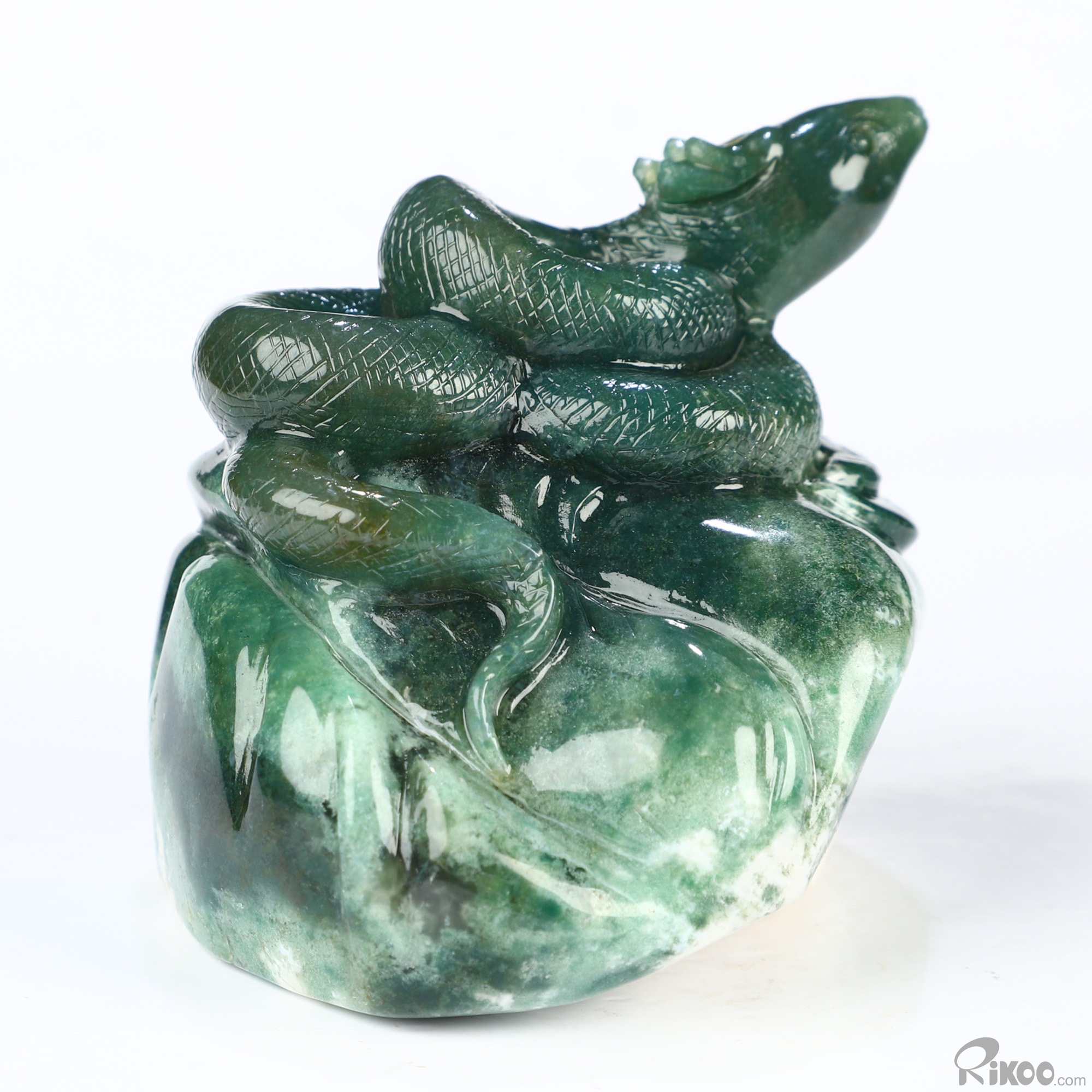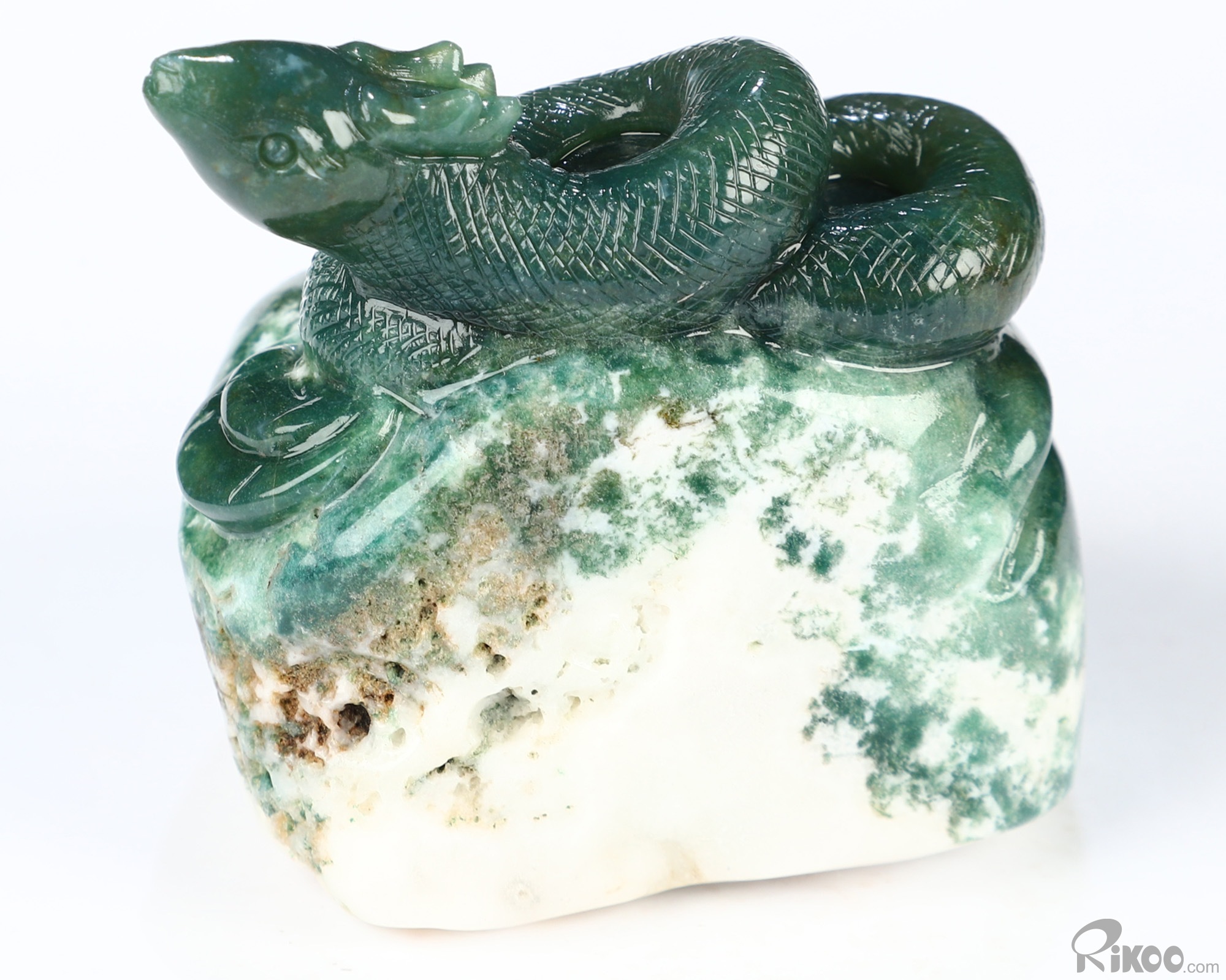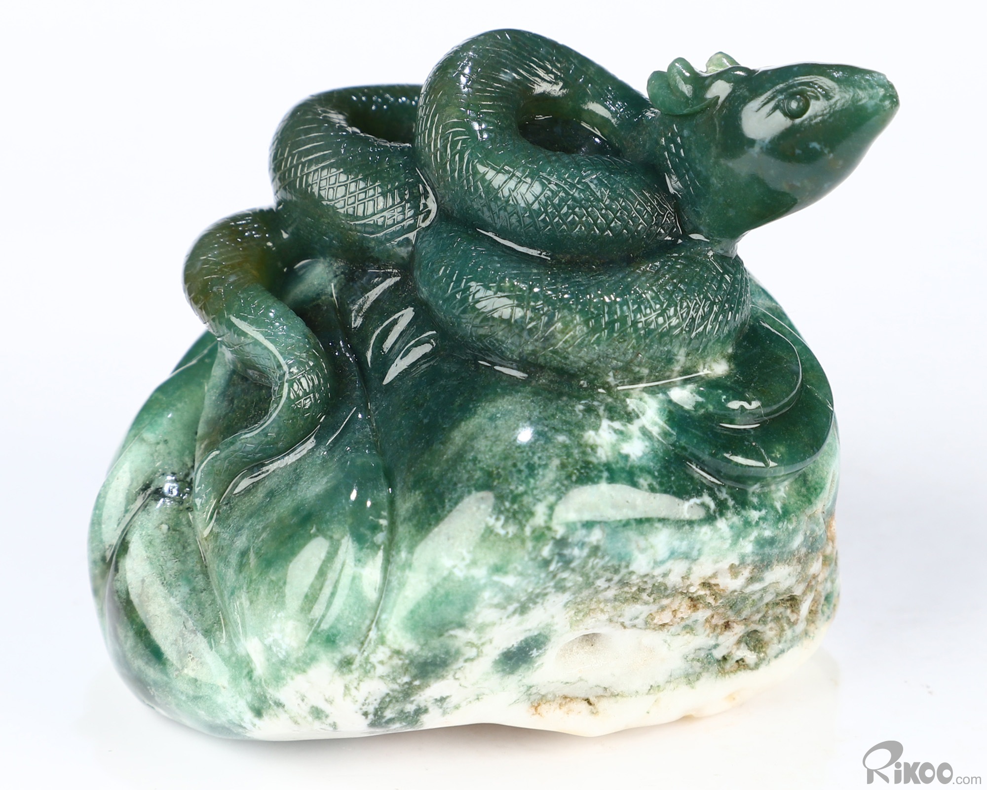 2.7" Green Moss Agate Hand Carved Crystal Snake Sculpture, Crystal Healing