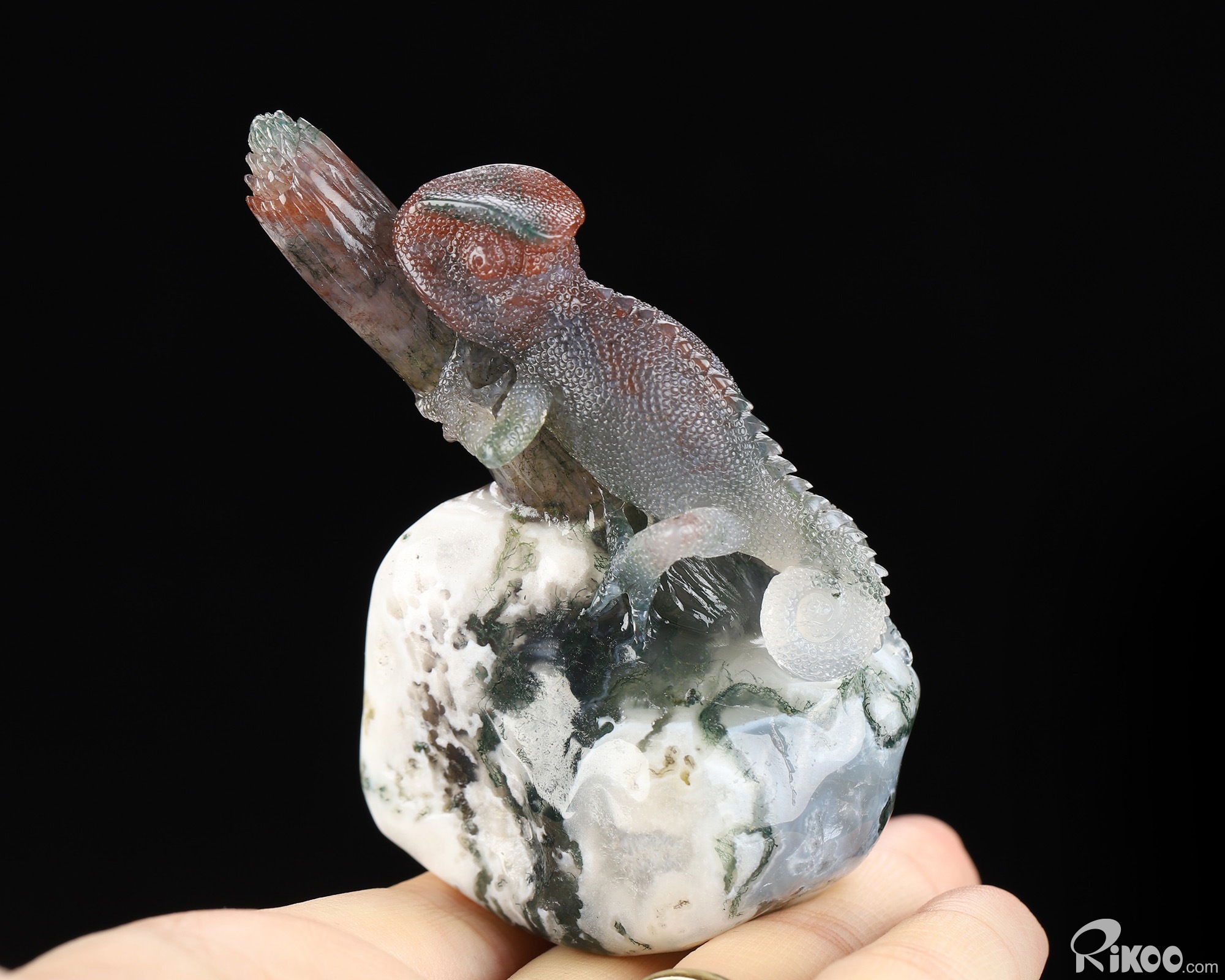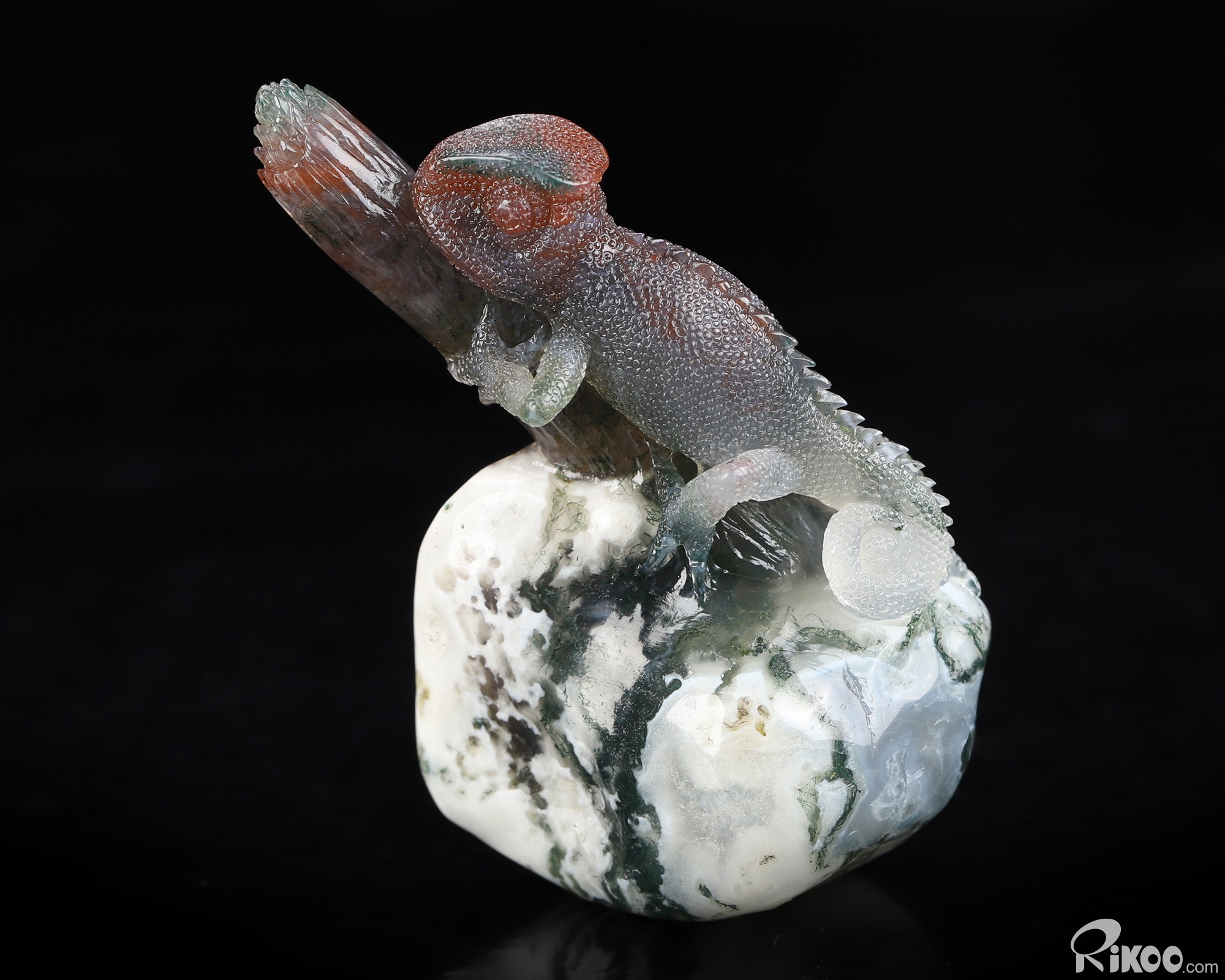 2.7" Indian Agate Hand Carved Crystal Lizard Sculpture, Crystal Healing