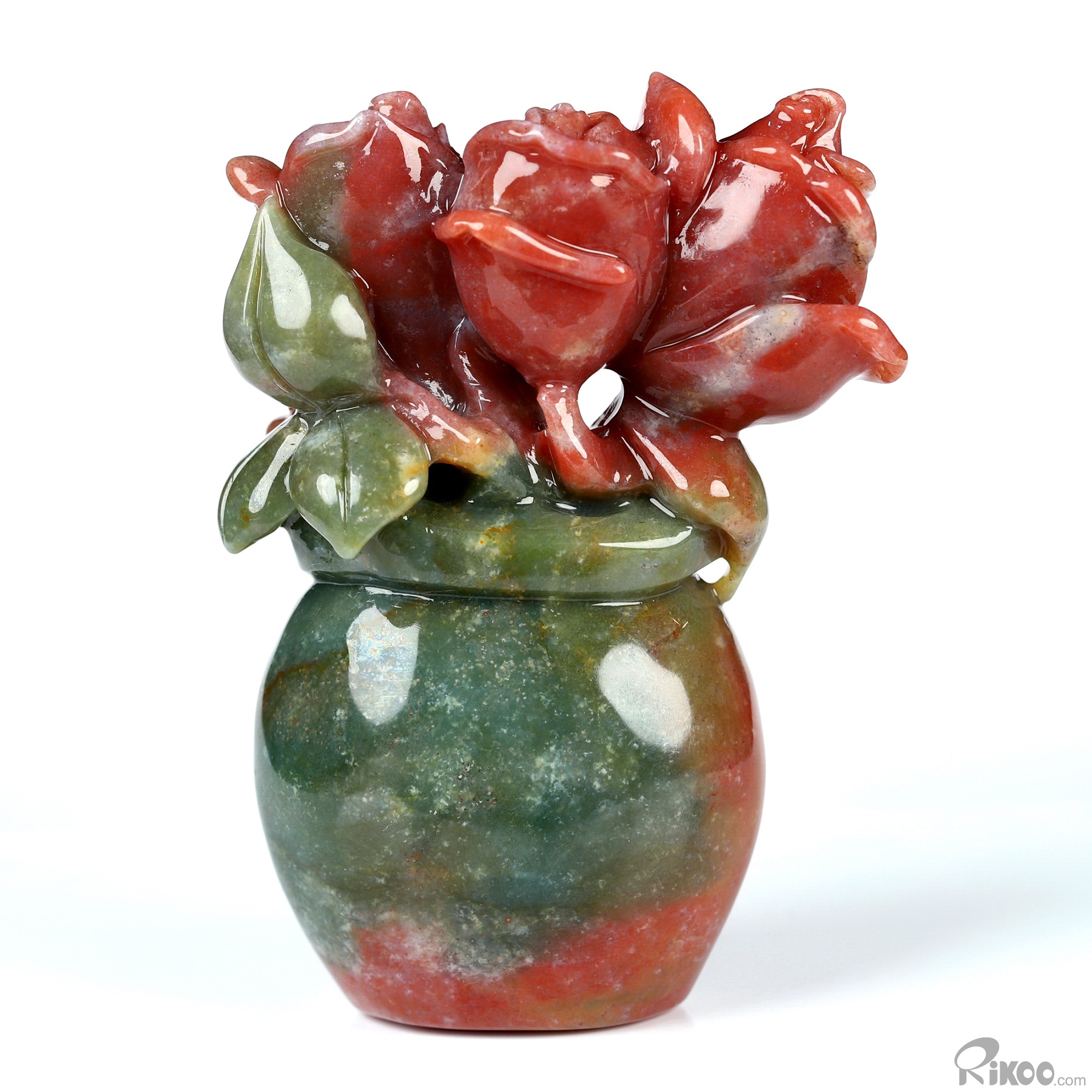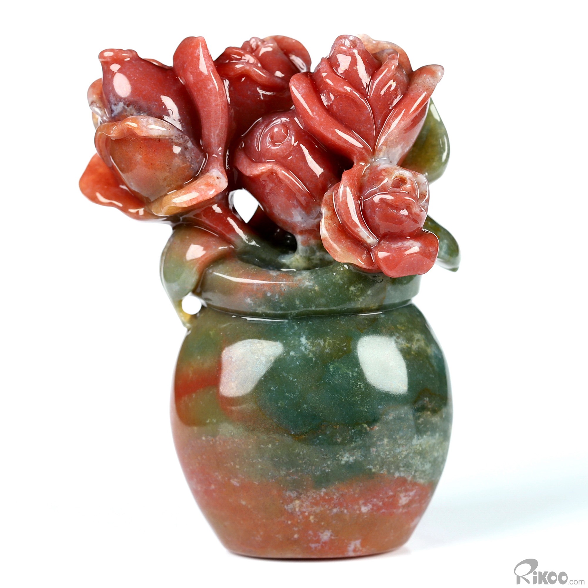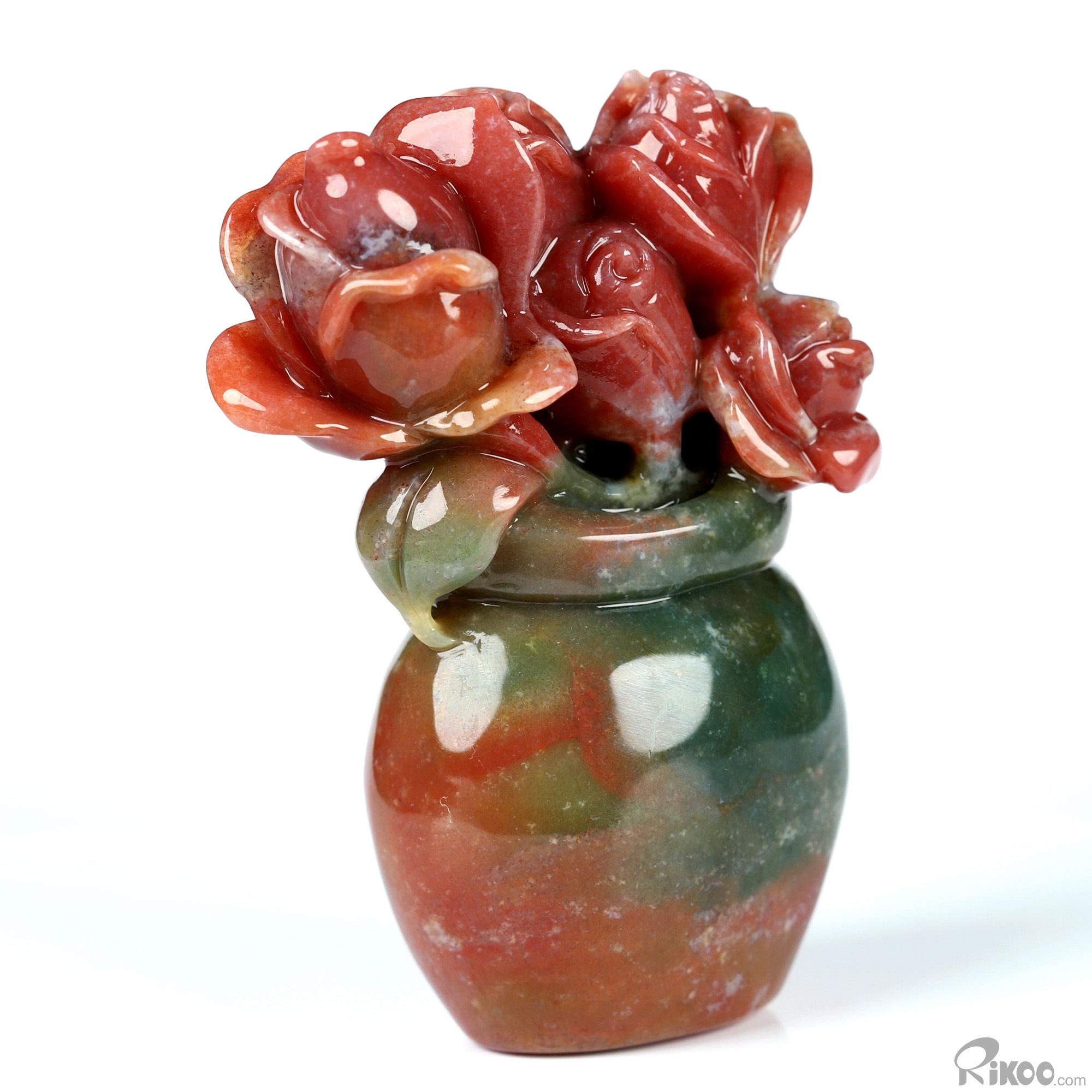 2.7" Indian Agate Hand Carved Crystal Plant/Vase Sculpture, Crystal Healing