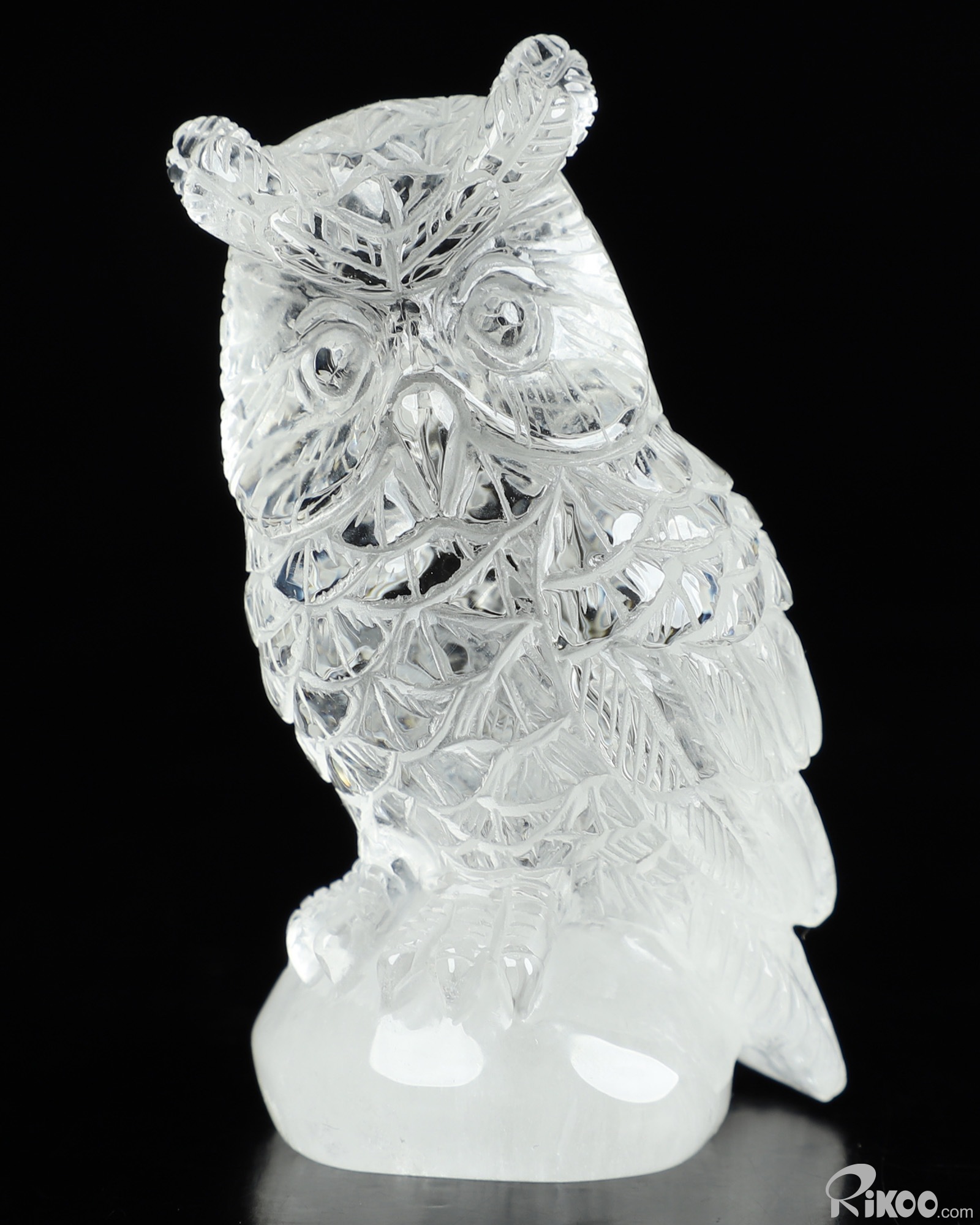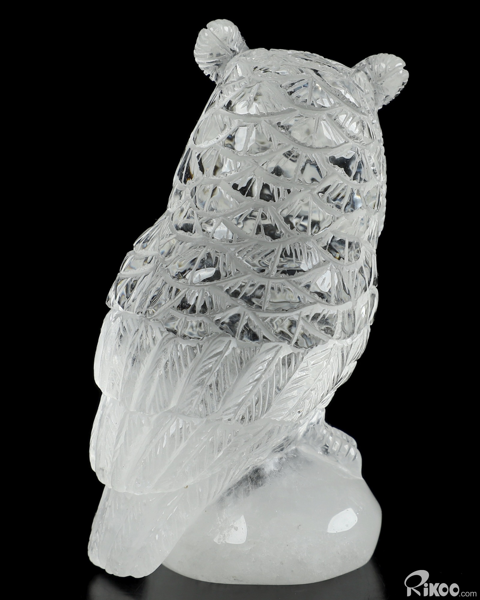 2.7" Quartz Rock Crystal Carved Crystal Owl Sculpture, Realistic, Crystal Healing