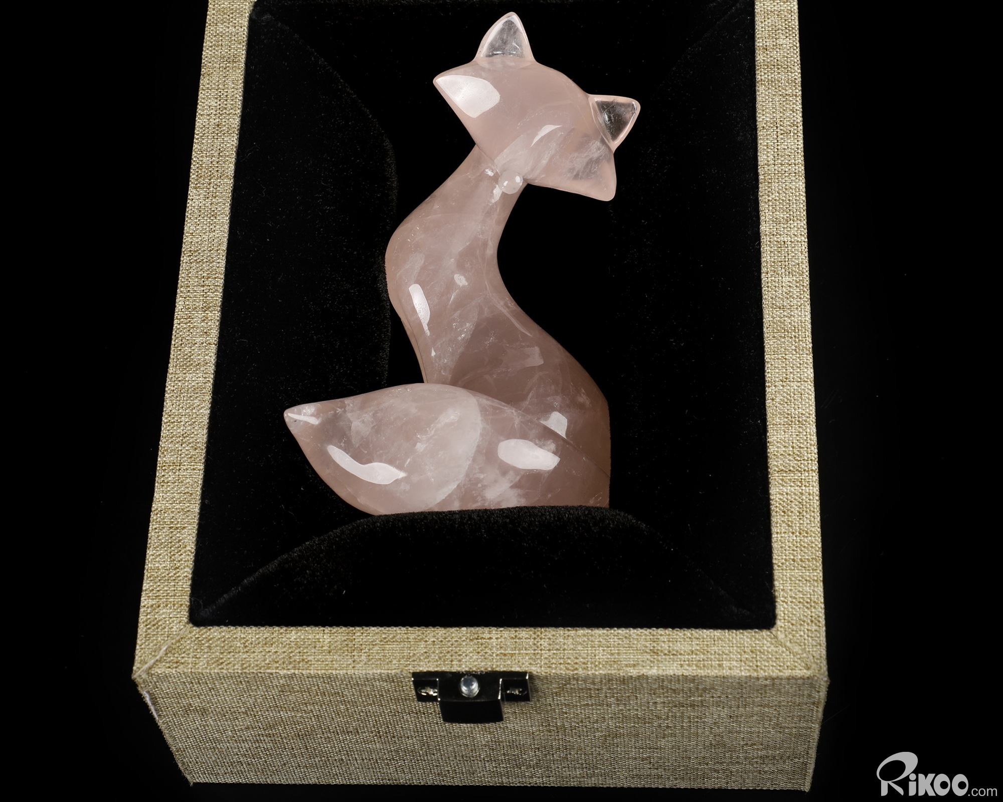 4.1" Rose Quartz Carved Crystal Fox, Crystal Healing