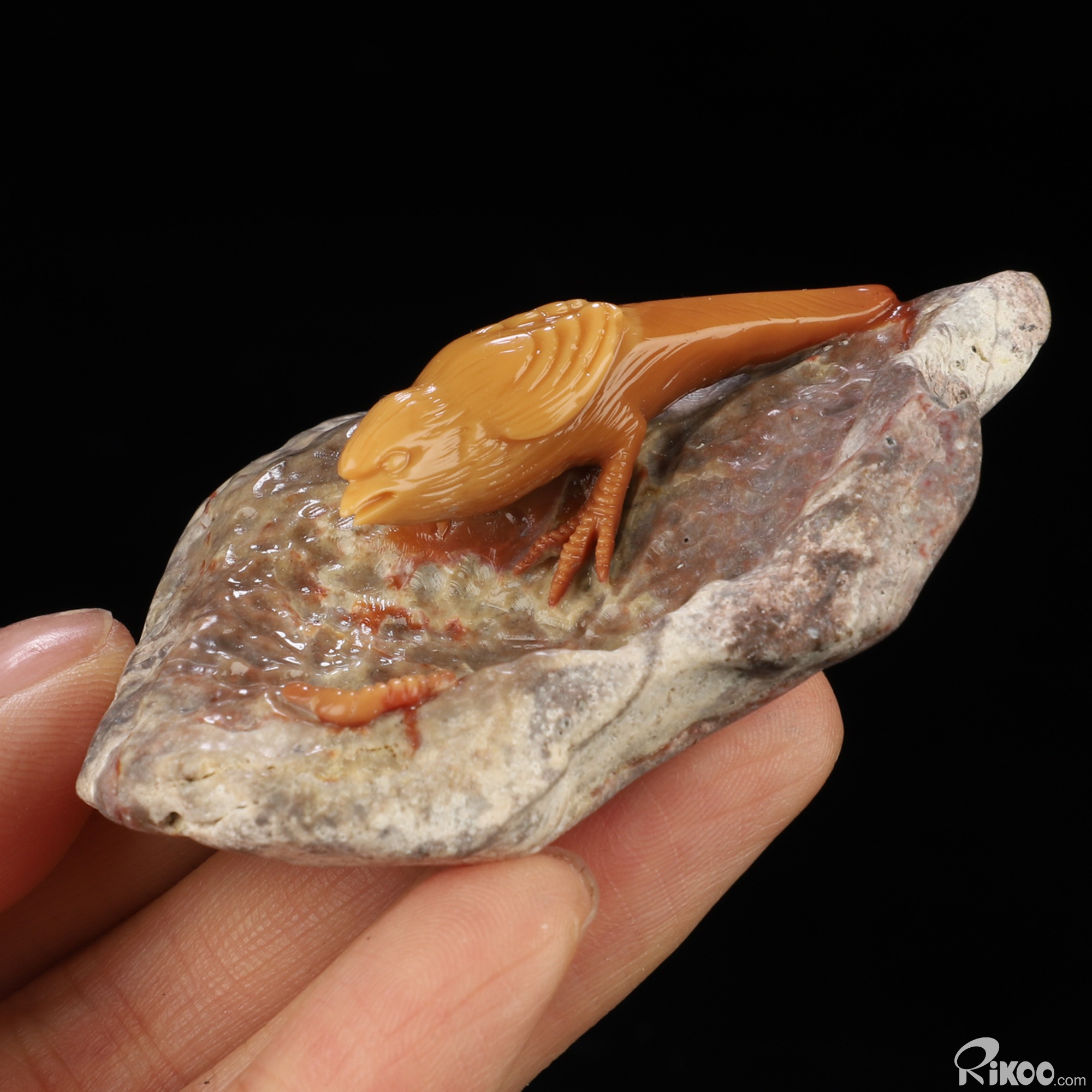 You are looking at an Agate Bird sculpture. The sculpture is 2.8 inches long.