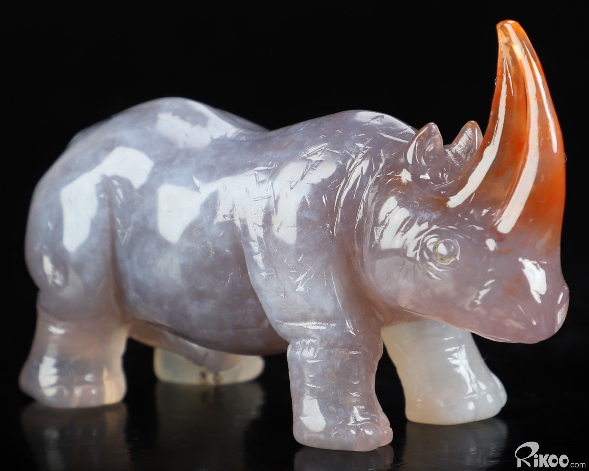 2.8" Agate Hand Carved Crystal Rhinoceros Sculpture, Crystal Healing