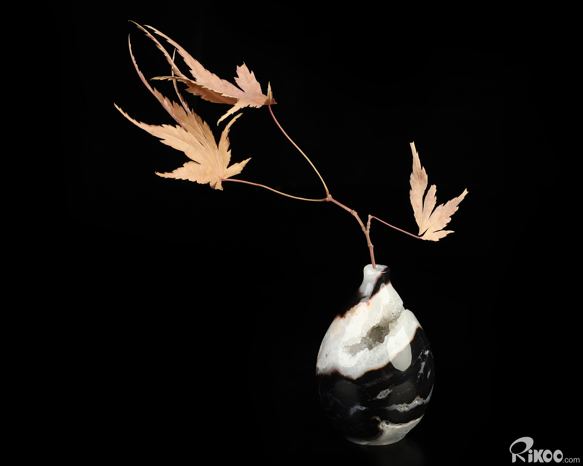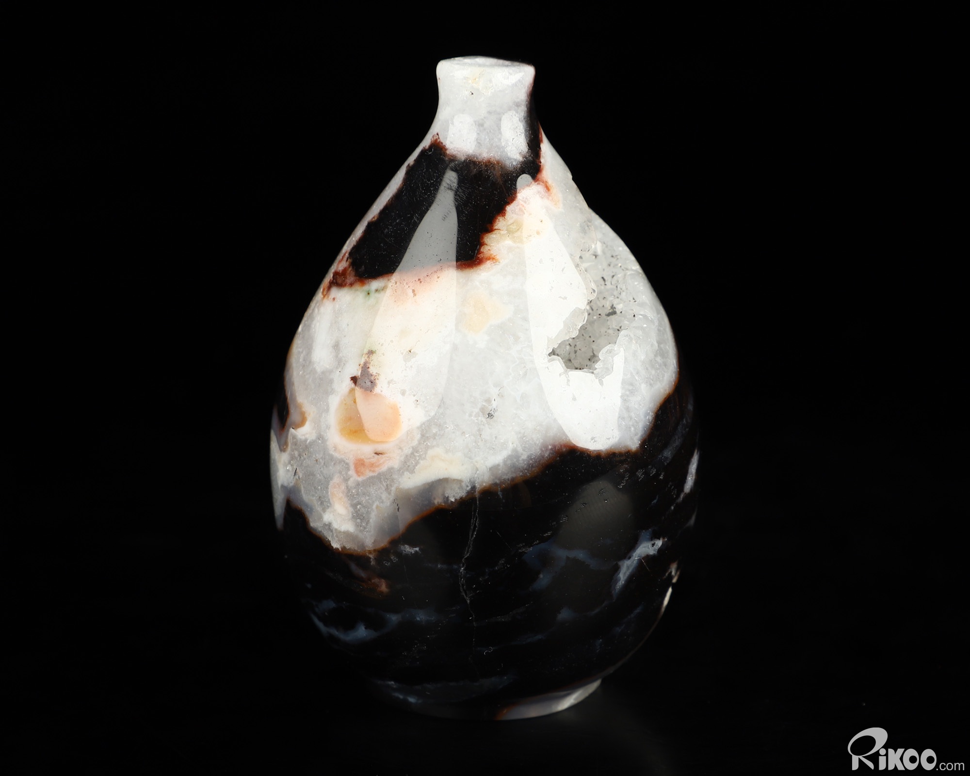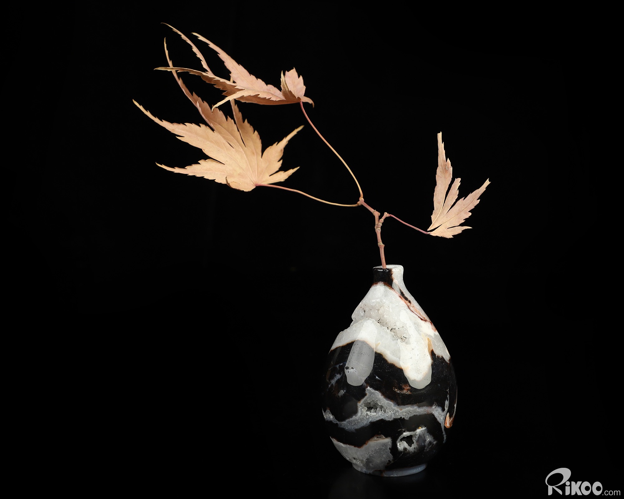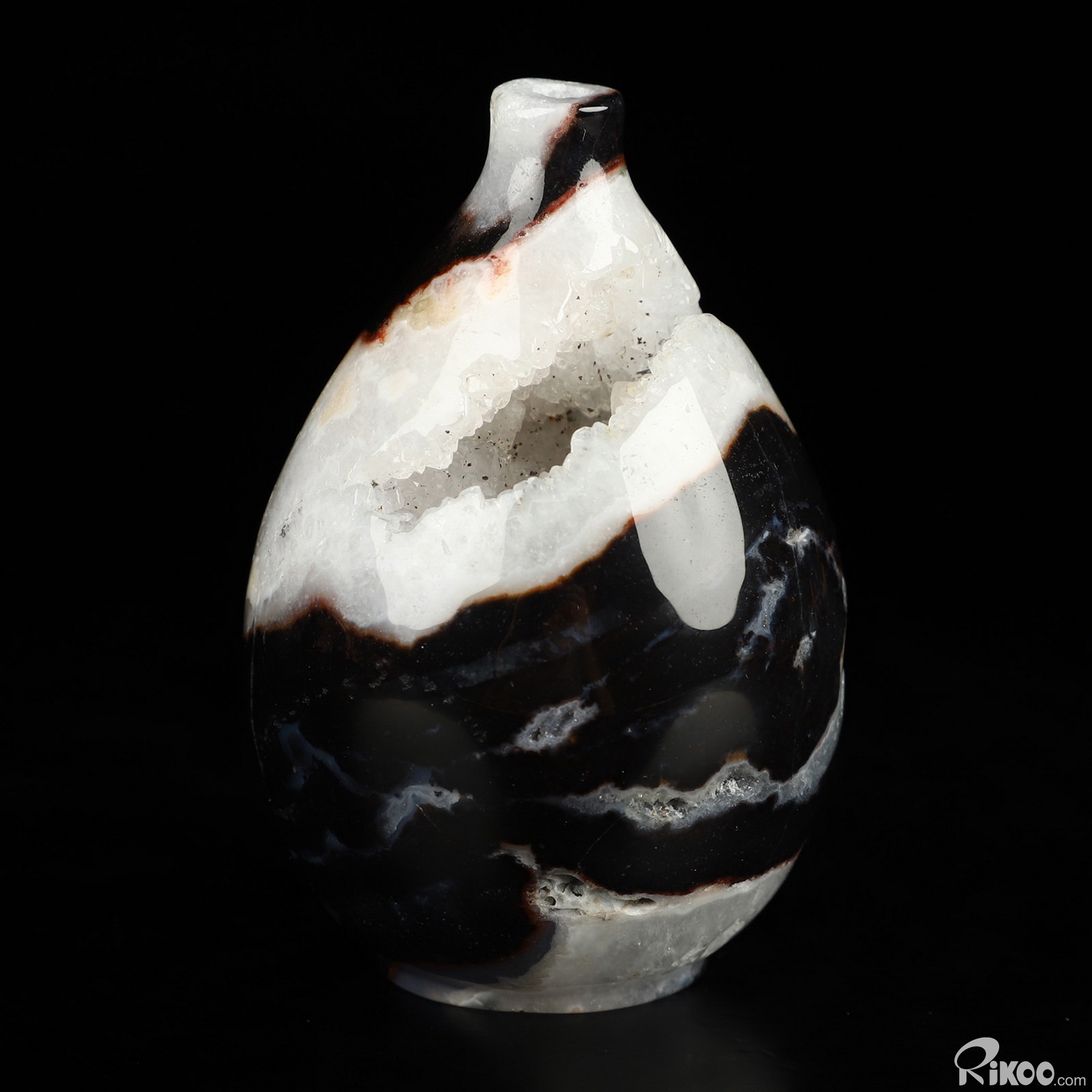 2.8" Black Zebra Agate Hand Carved Crystal Vase Sculpture, Crystal Healing