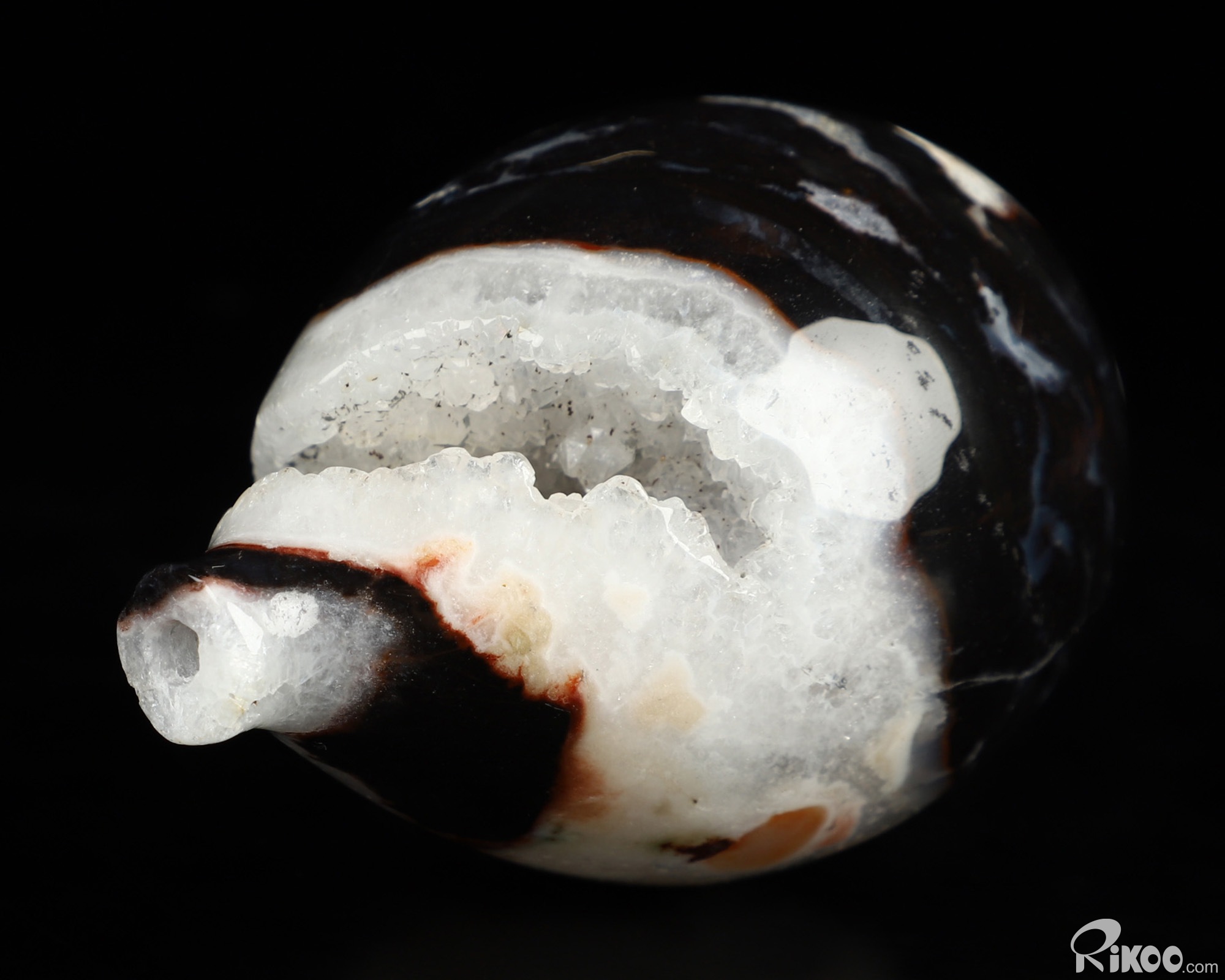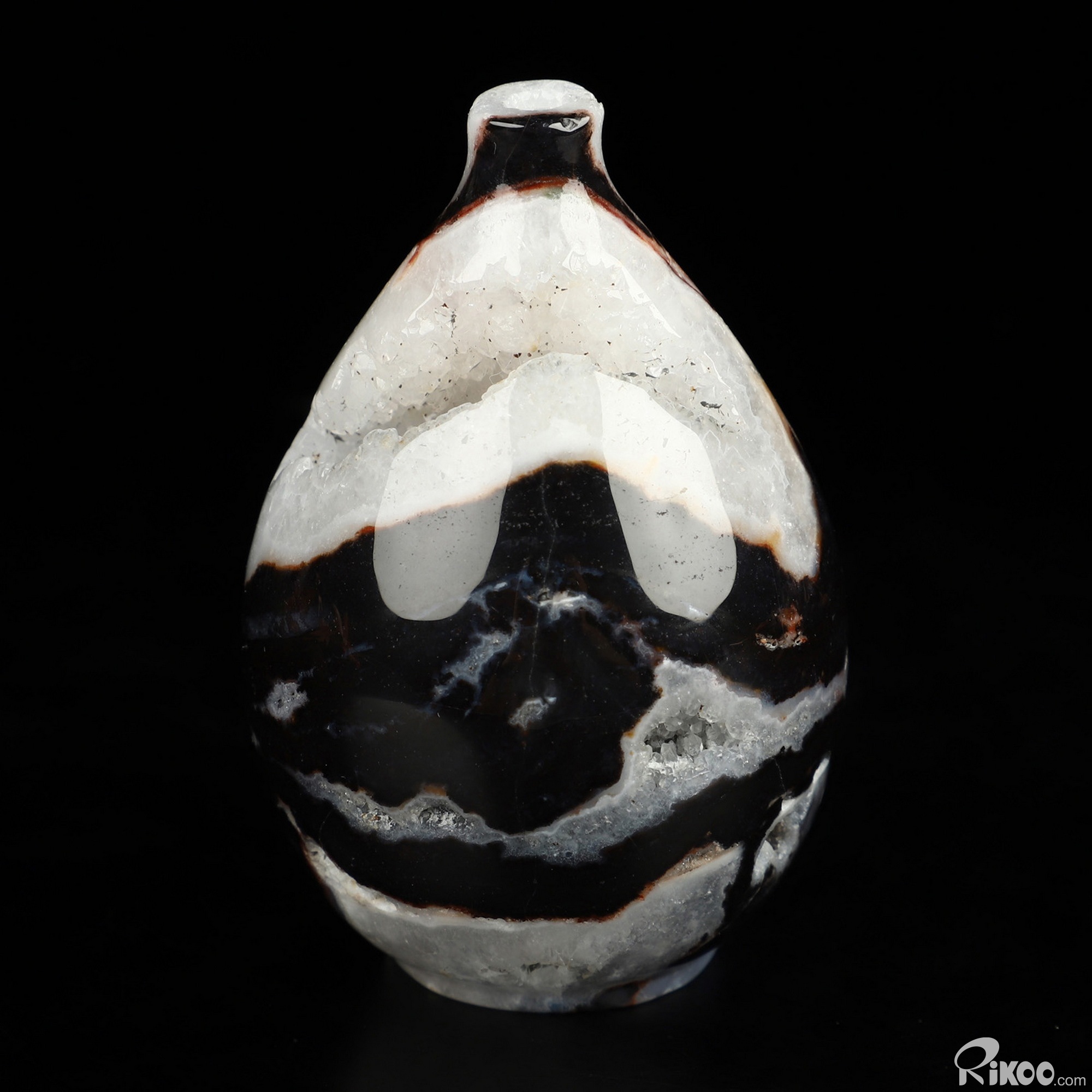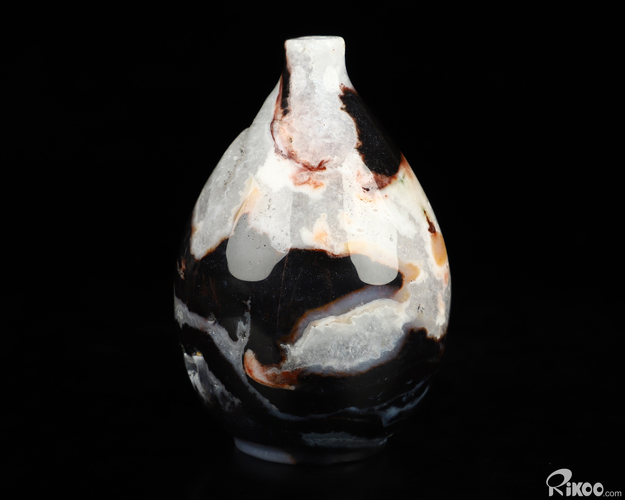You are looking at a Black Zebra Agate sculpture. The sculpture is 2.8 inches long.