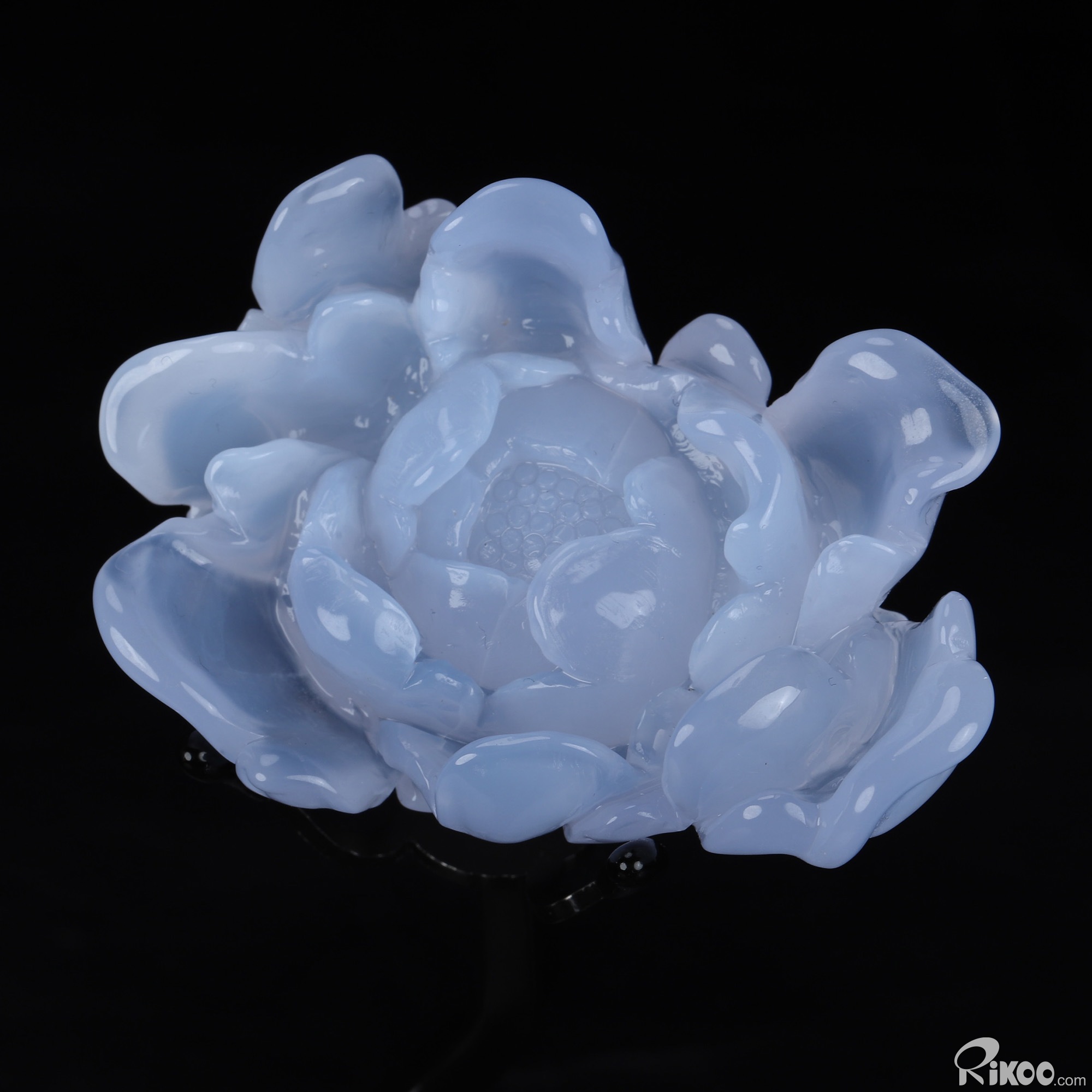 2.8" Blue Chalcedony Hand Carved Crystal Rose Sculpture, Crystal Healing