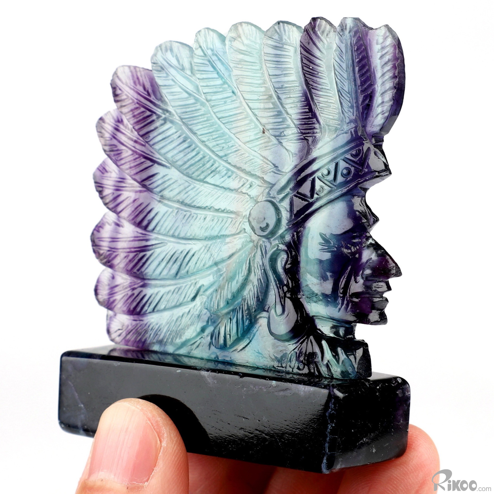 2.8" Fluorite Hand Carved Crystal Indian Sculpture, Crystal Healing