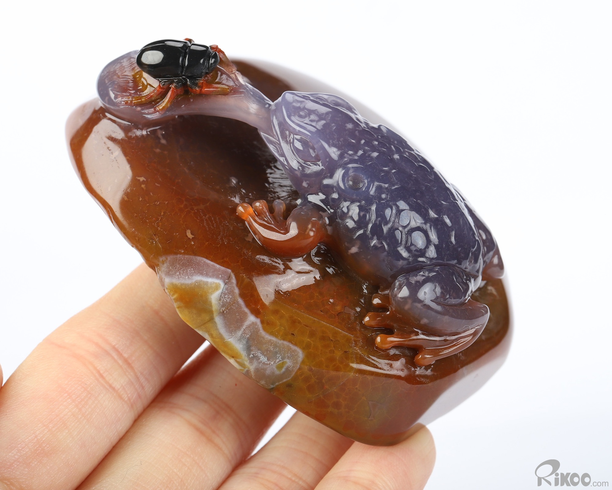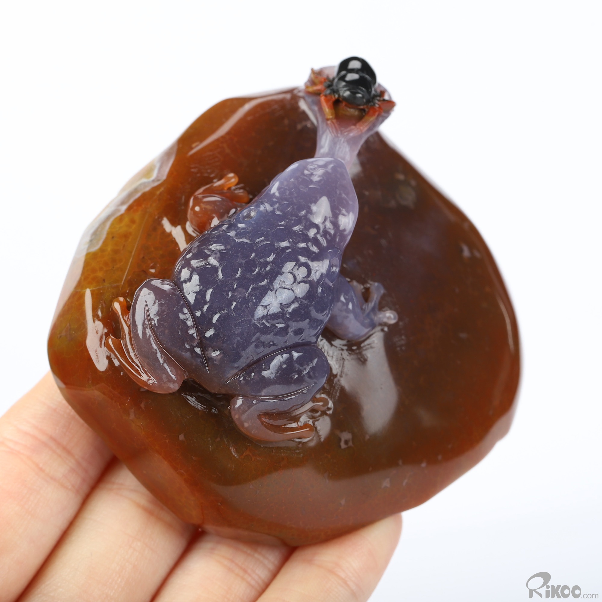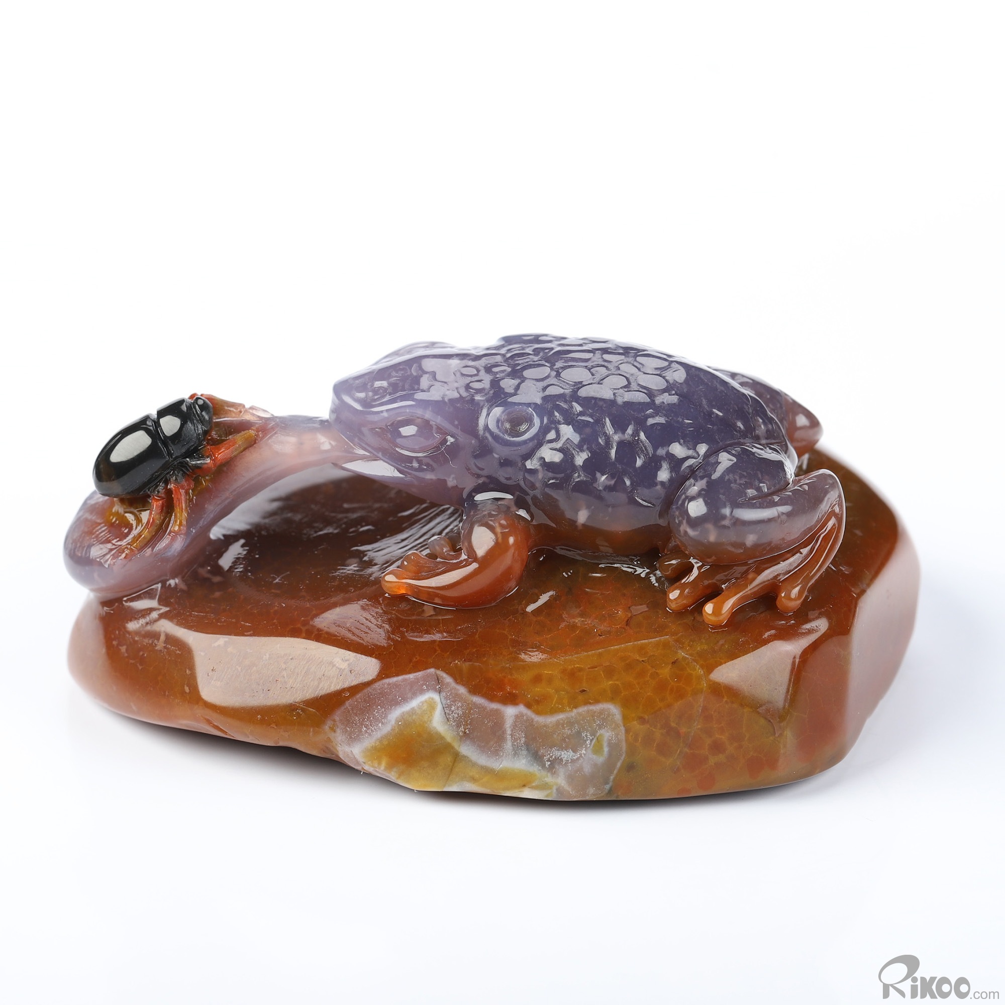 2.8" Indian Agate Hand Carved Crystal Frog Sculpture, Crystal Healing