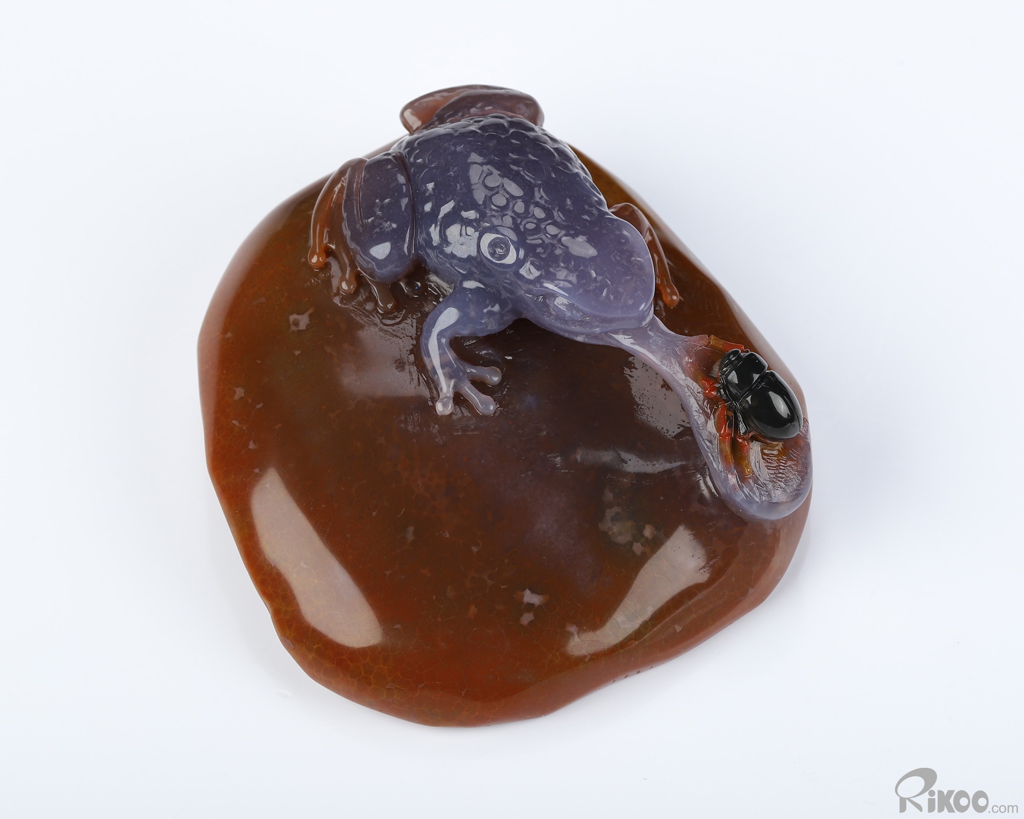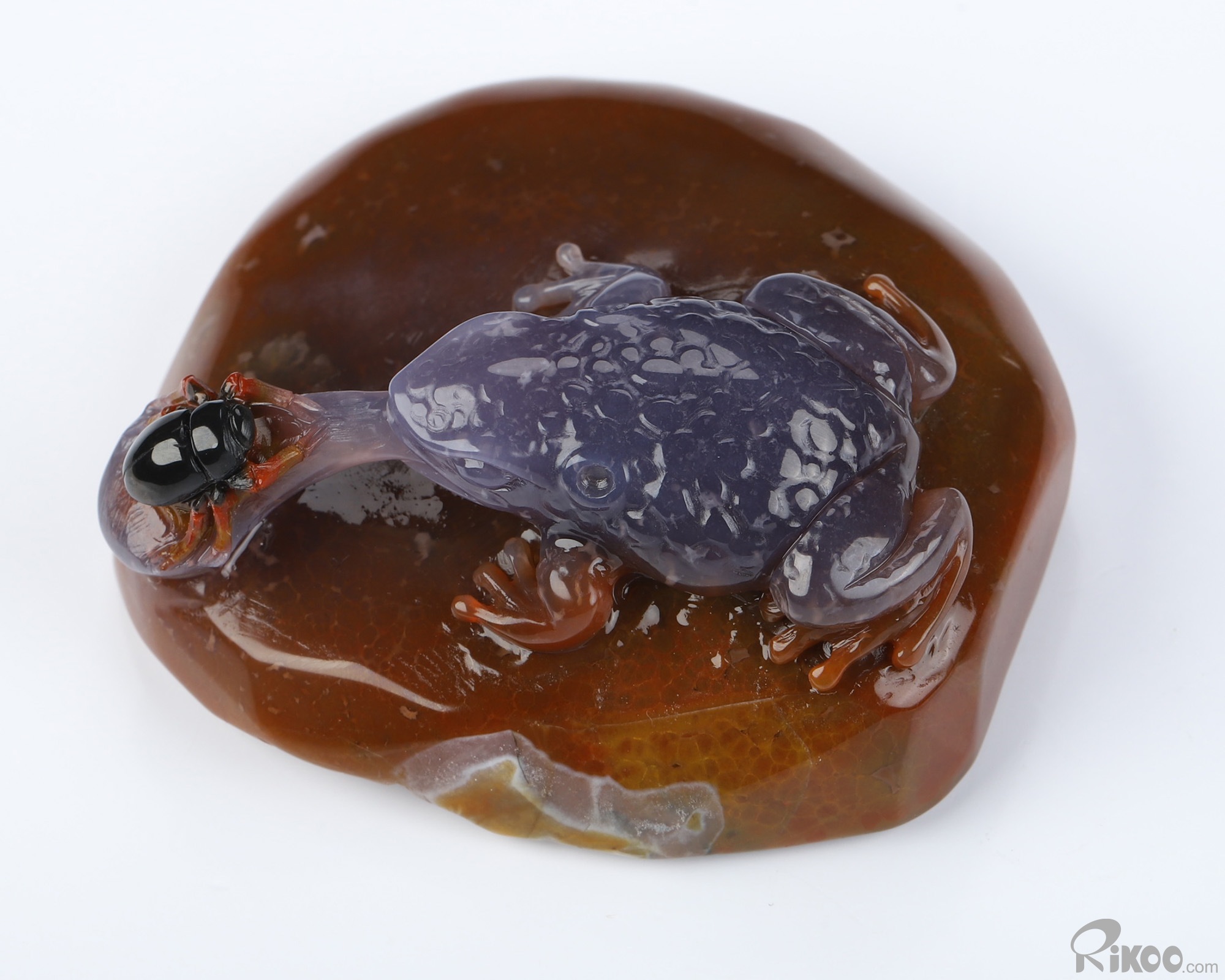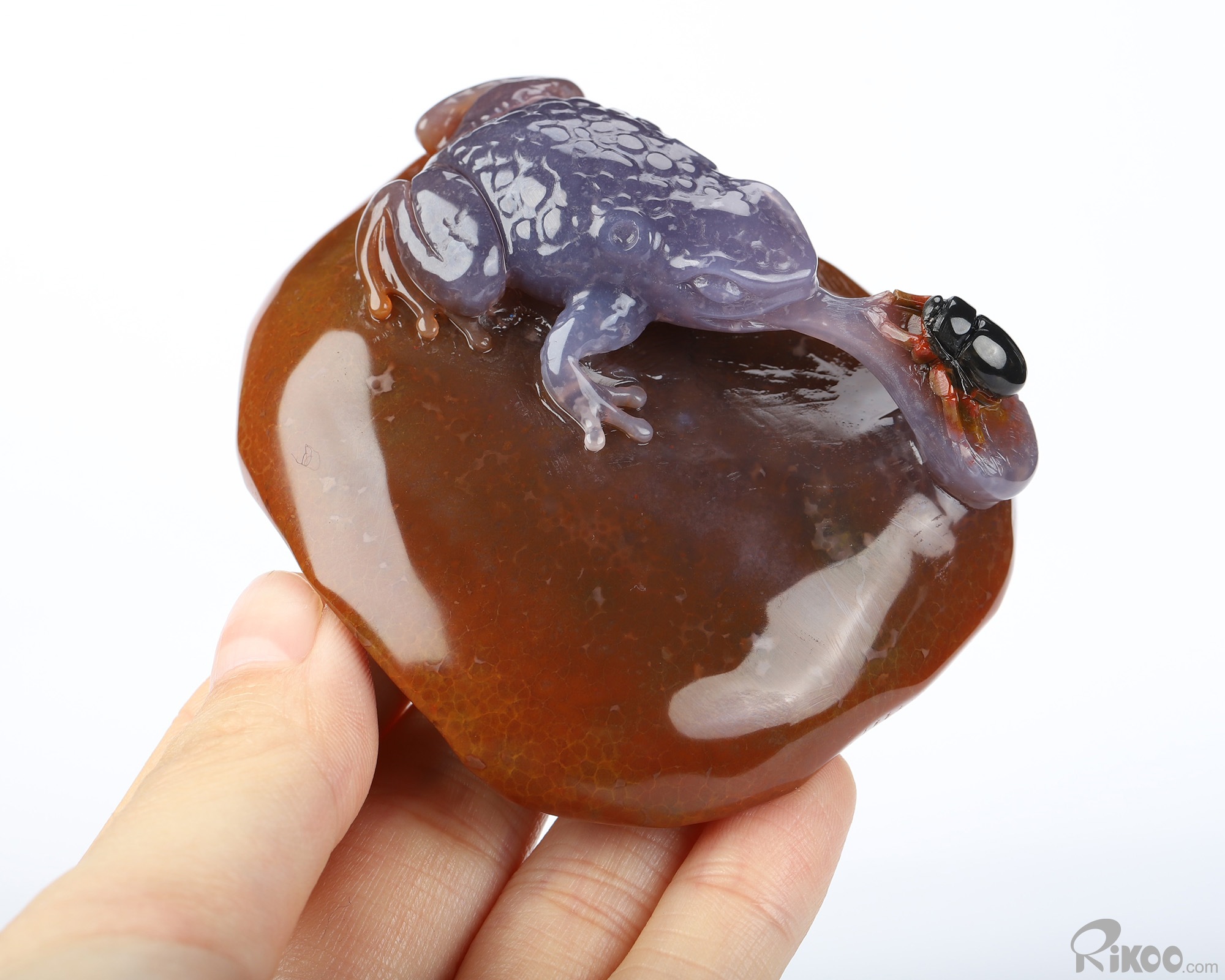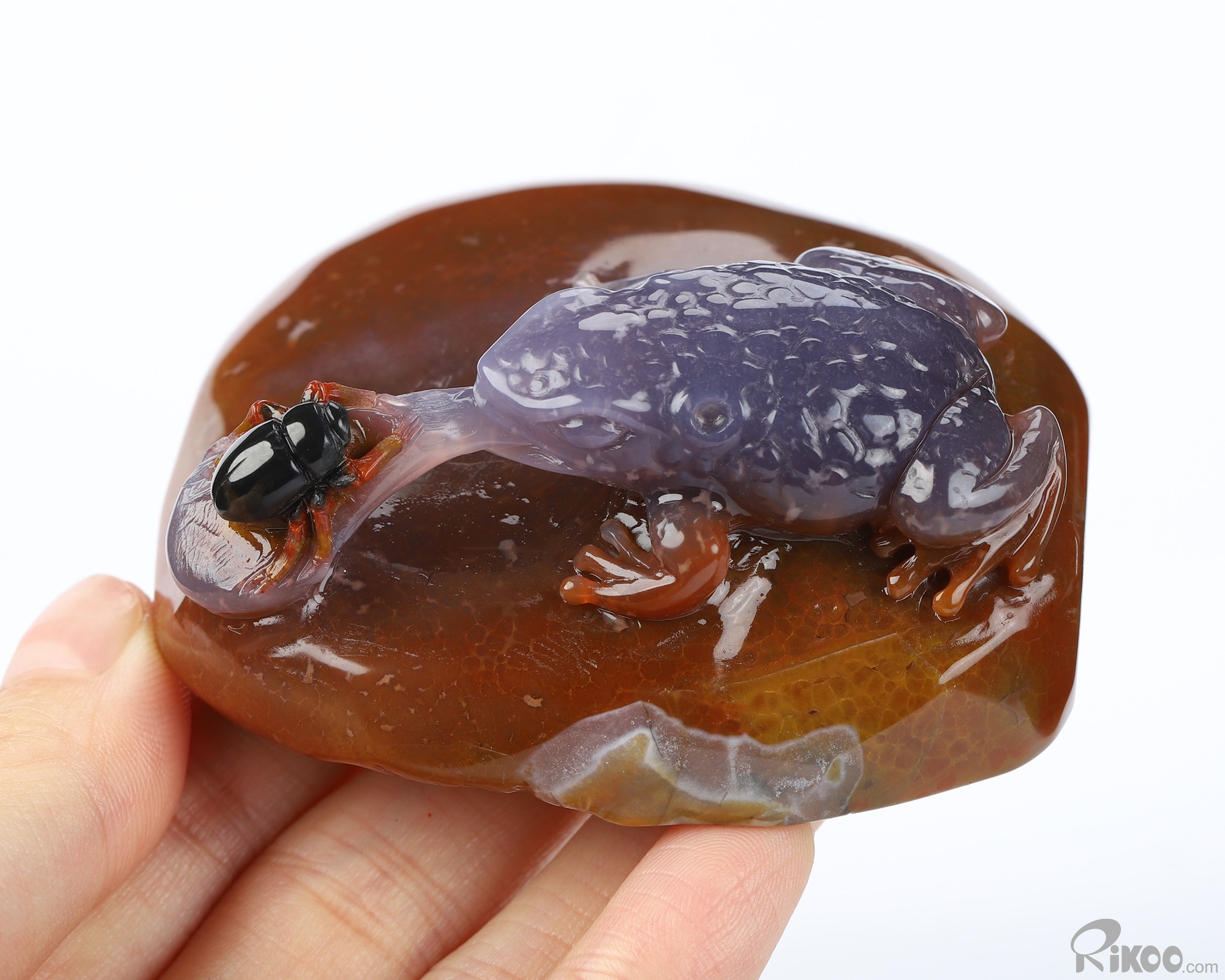 2.8" Indian Agate Hand Carved Crystal Frog Sculpture, Crystal Healing