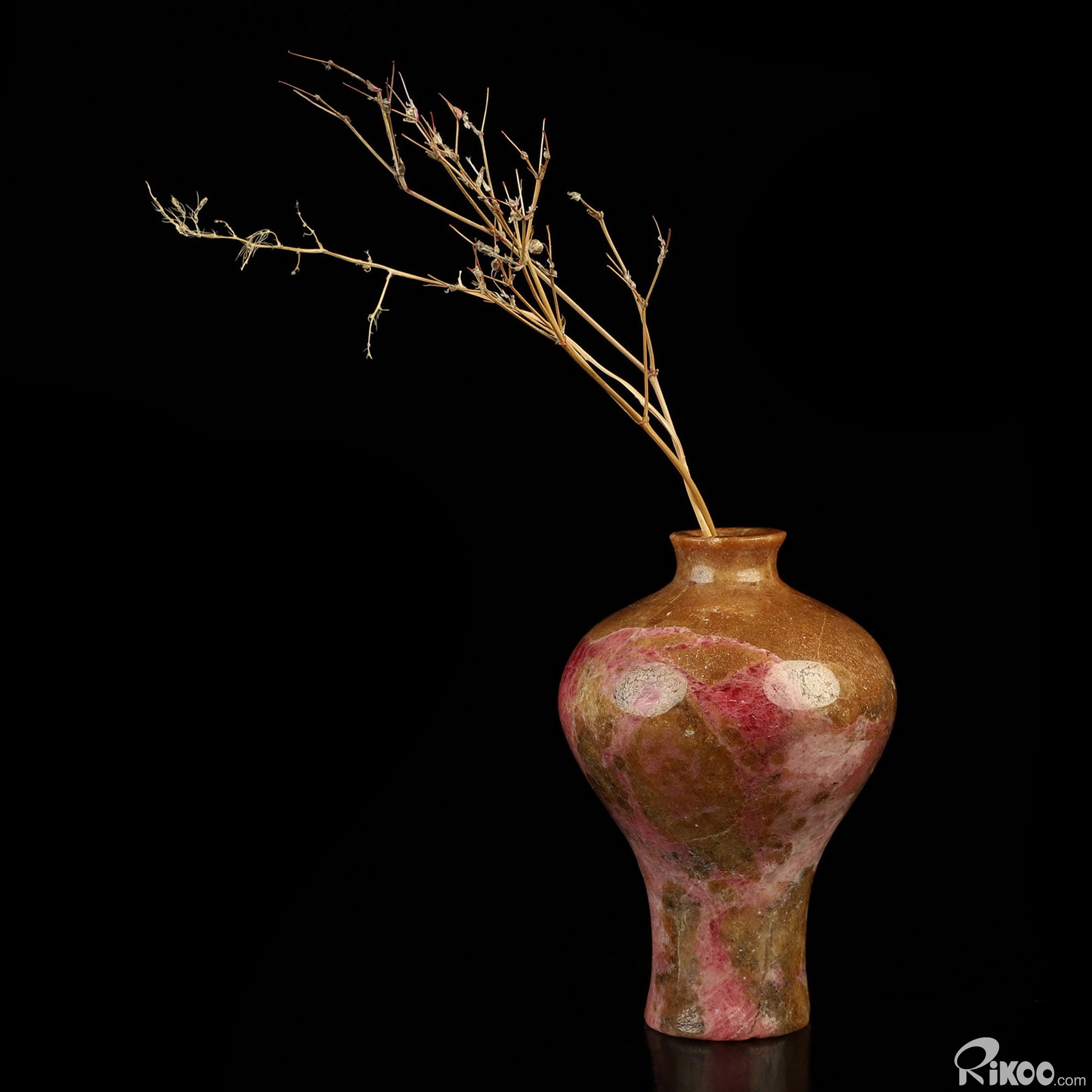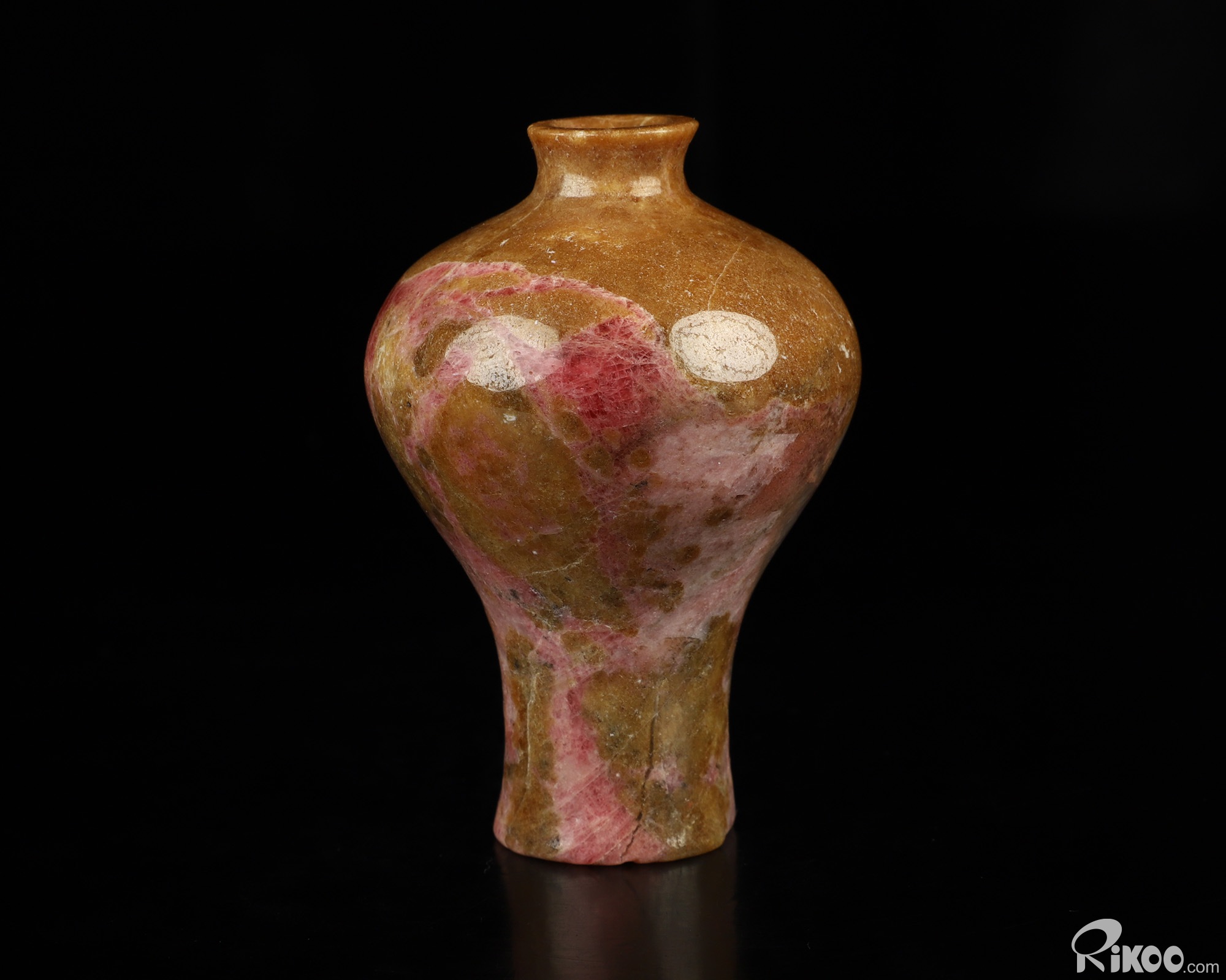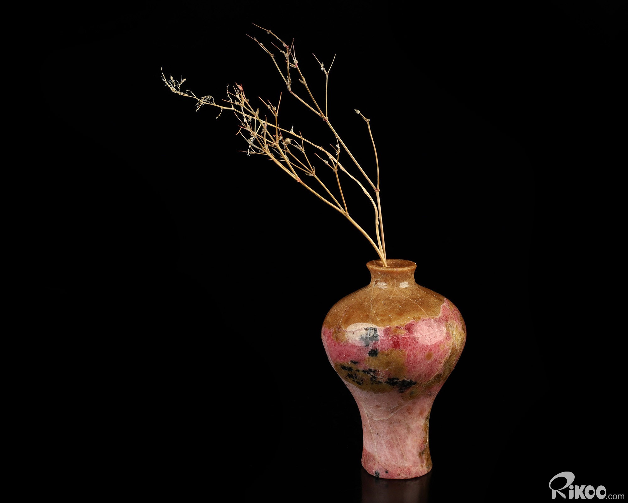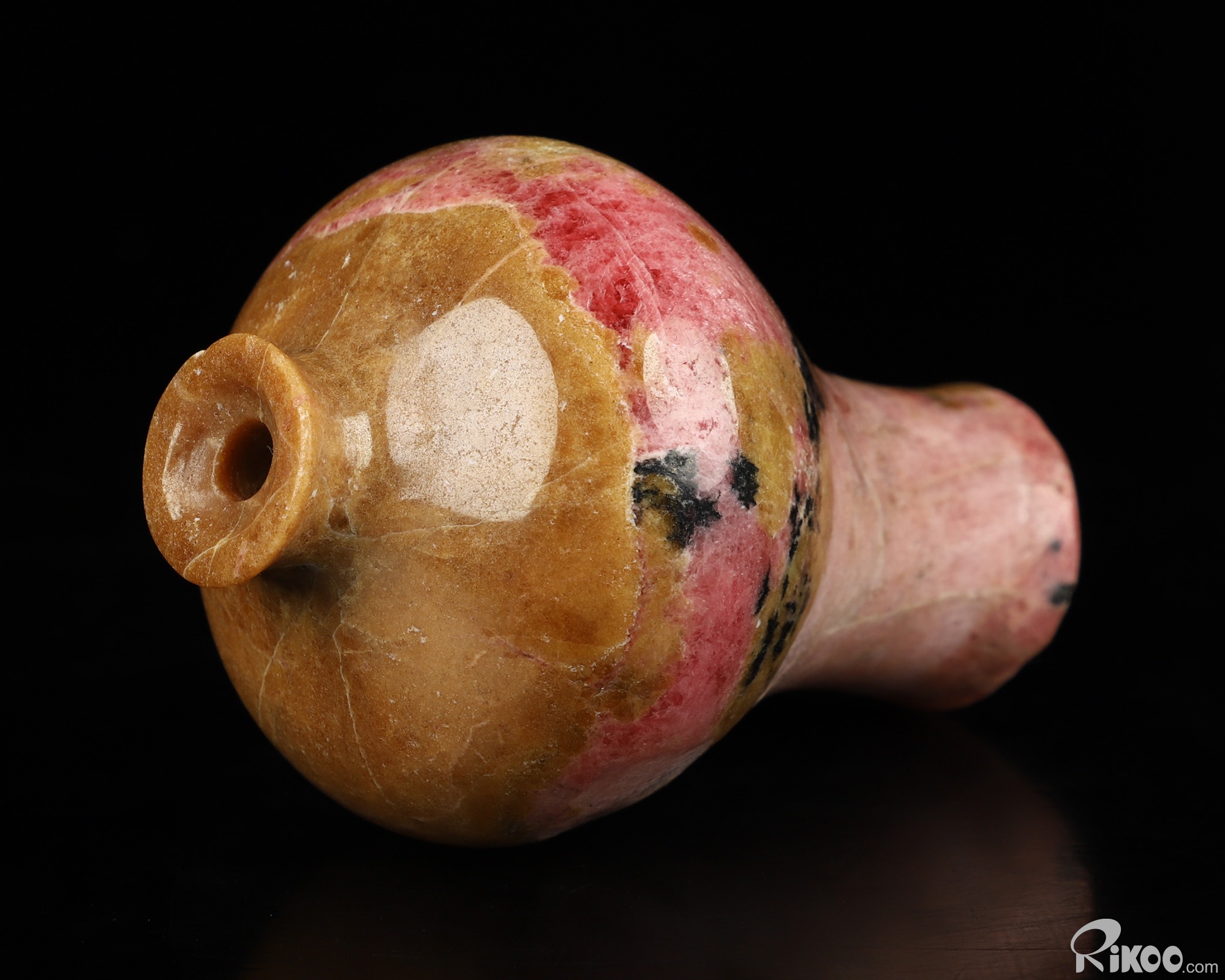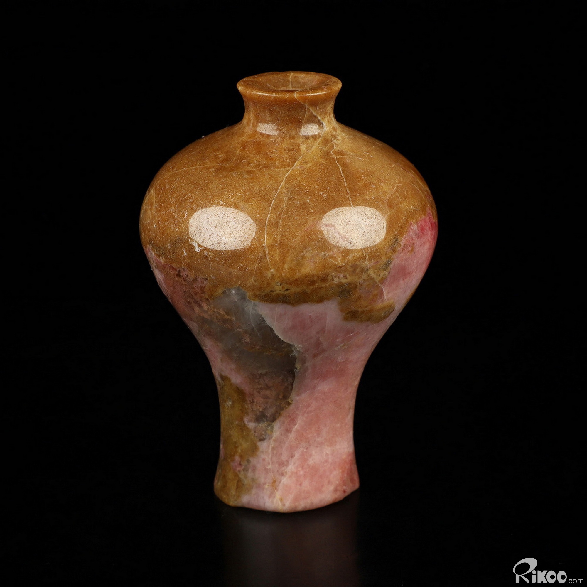 2.8" Pink & Black Rhodonite Hand Carved Crystal Vase Sculpture, Crystal Healing