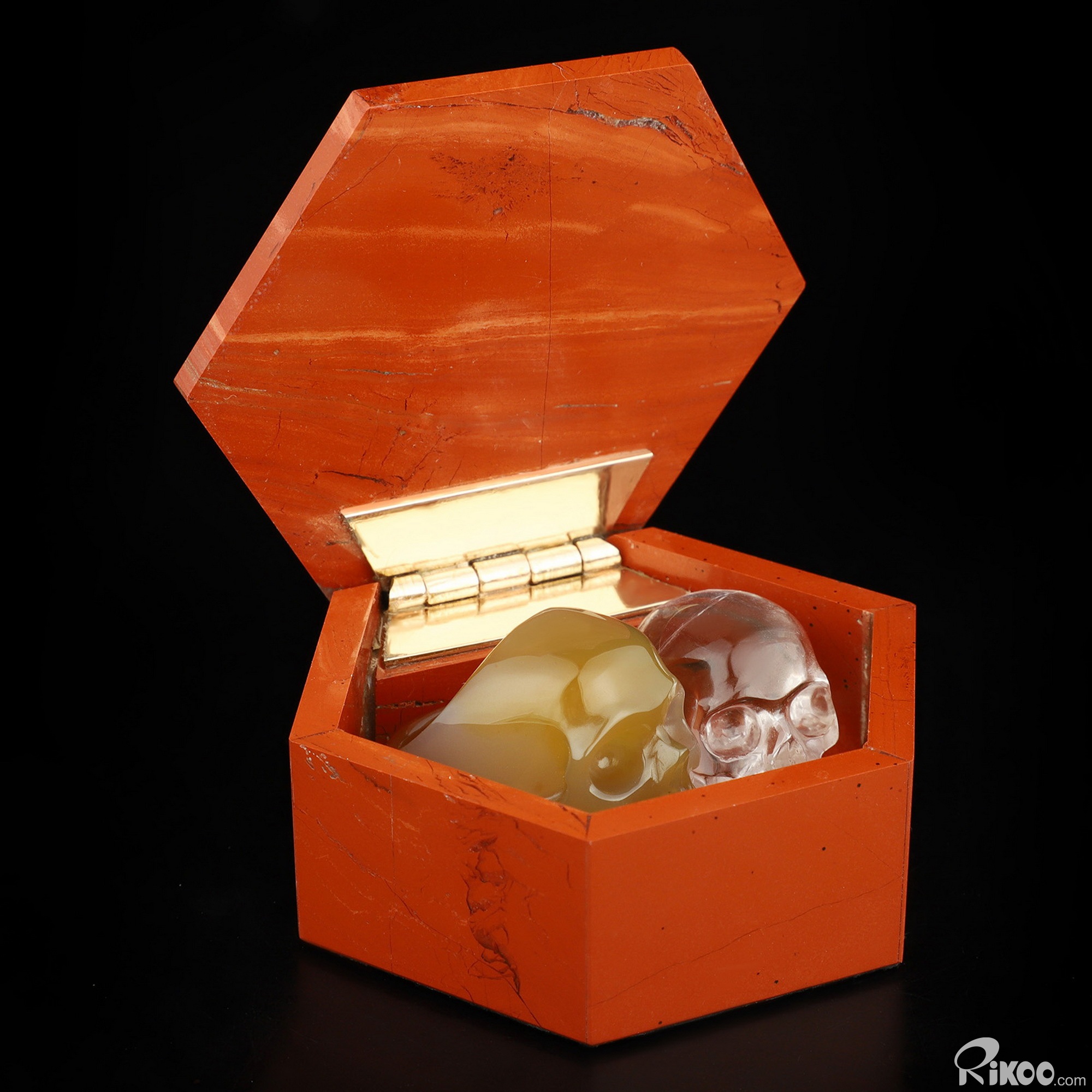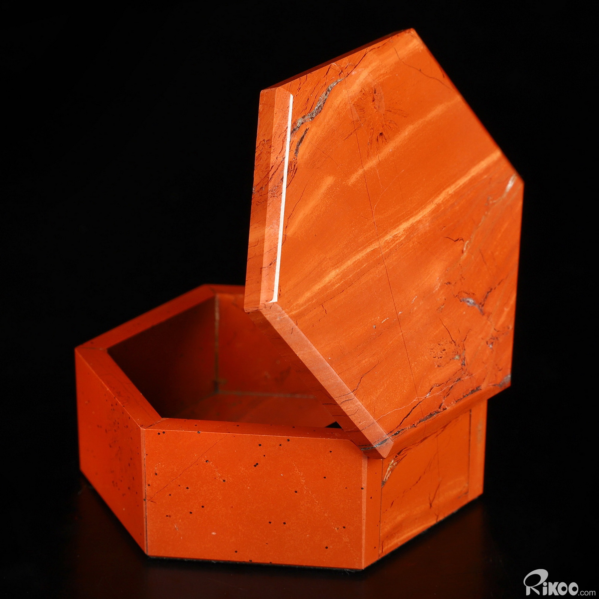 2.8" Red Jasper Hand Carved Crystal Jewelry Gemstone Box, Crystal Healing