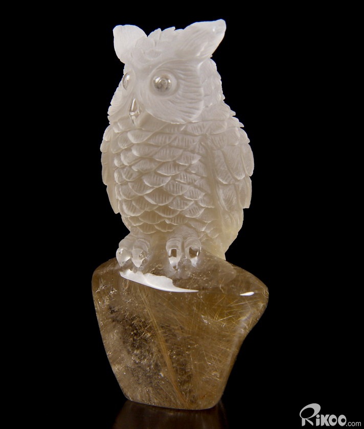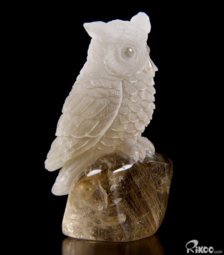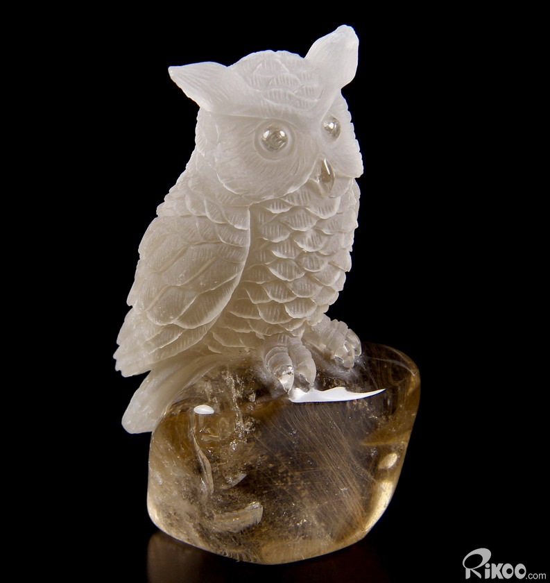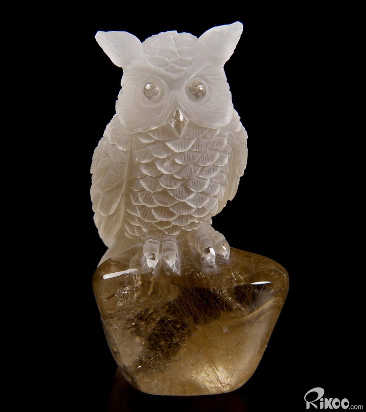 2.8" Smoky Quartz Rock Crystal Carved Crystal Owl Sculpture
