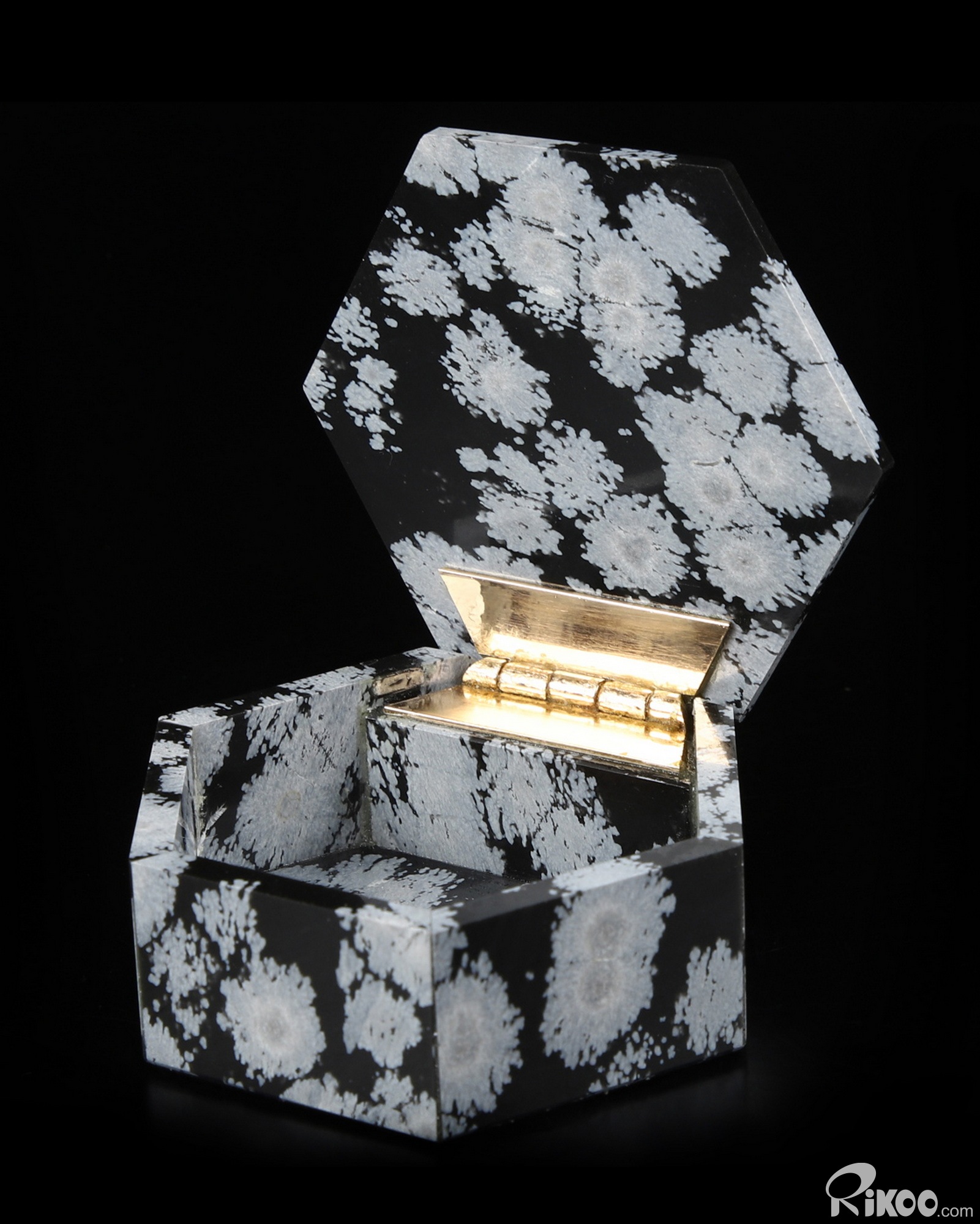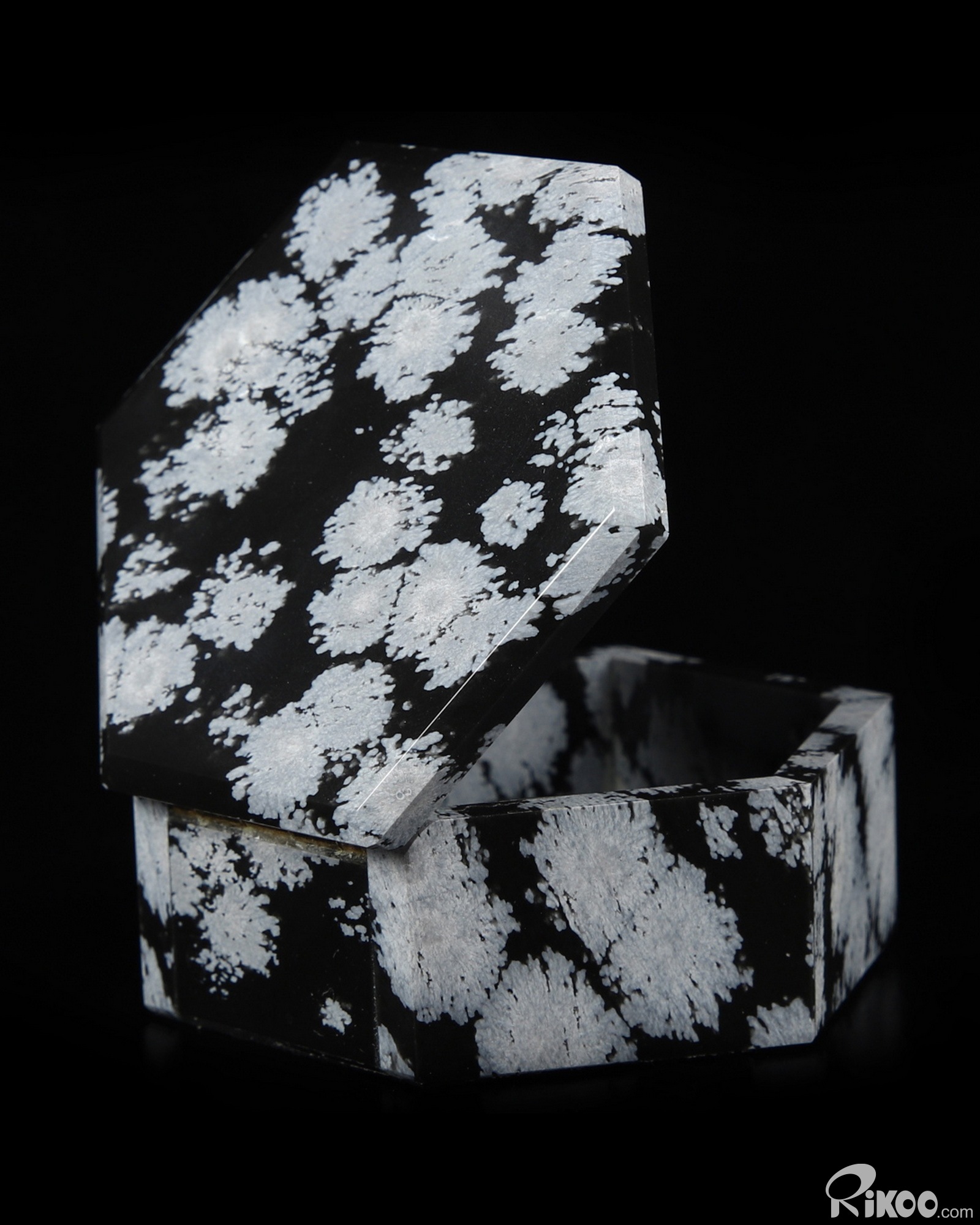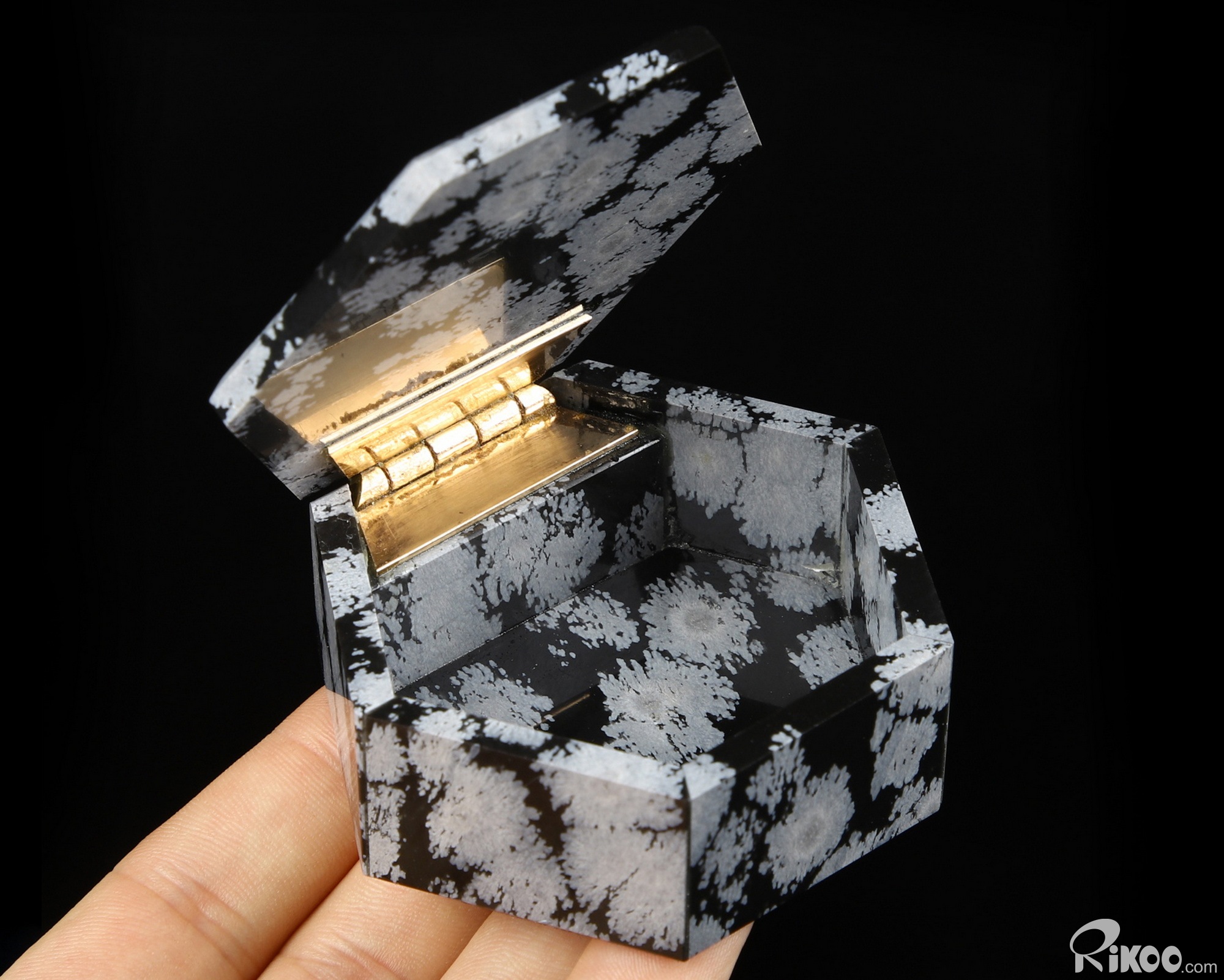 2.8" Snowflake Obsidian Carved Crystal Box, Crystal Healing