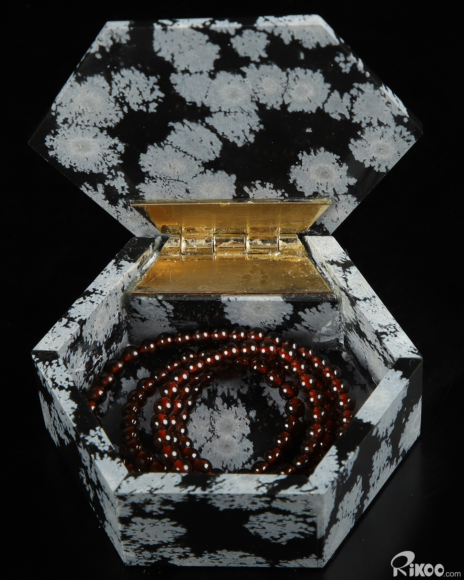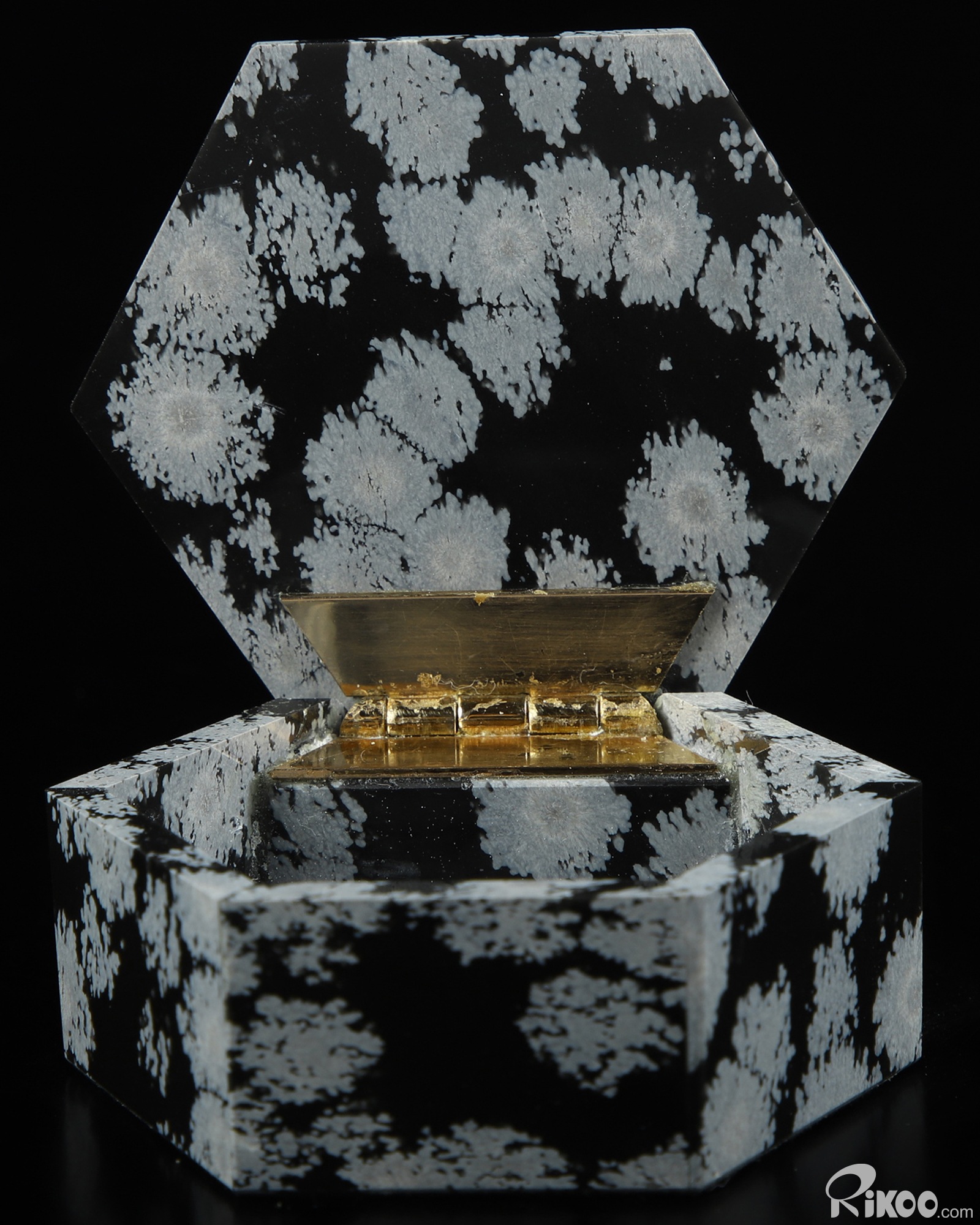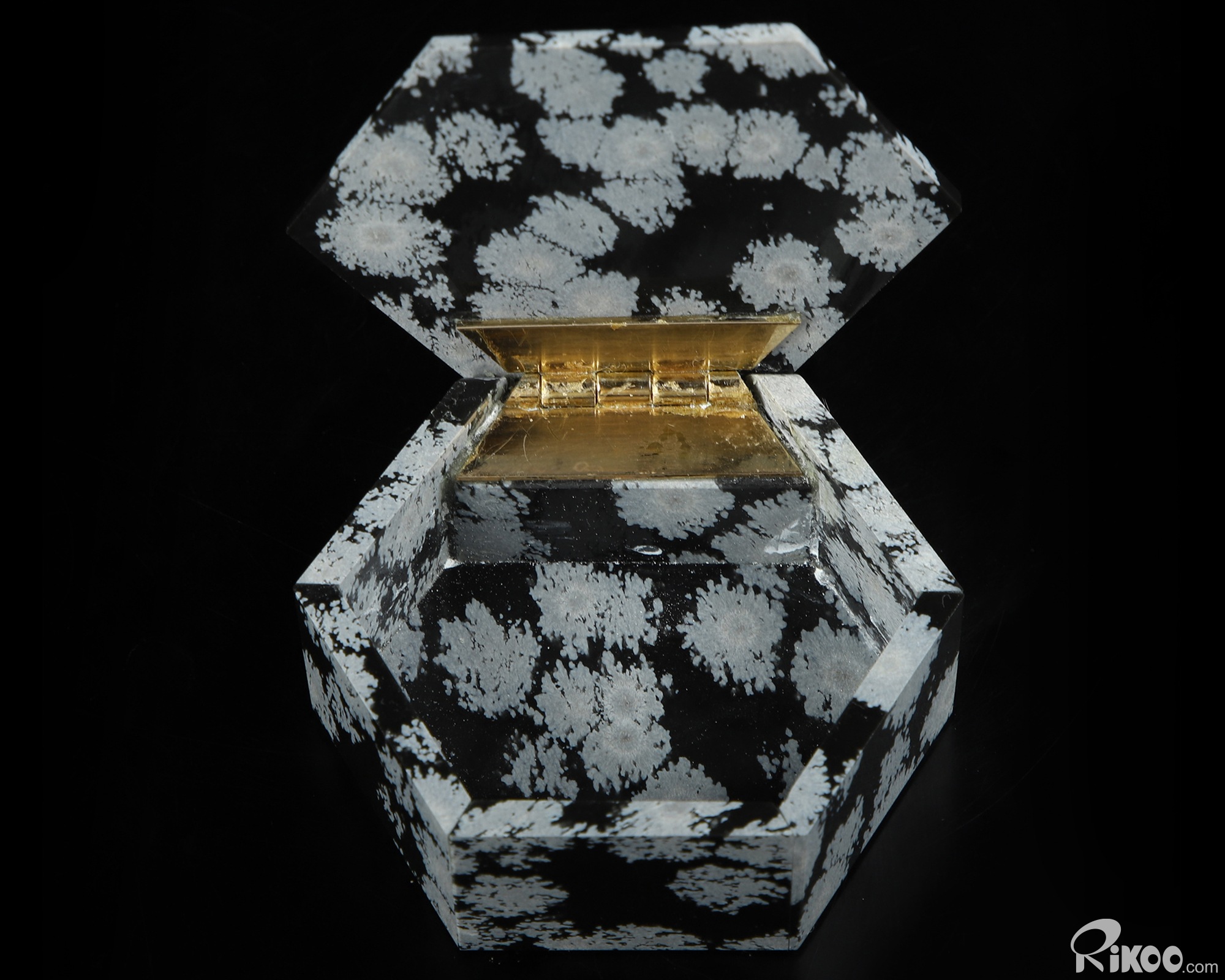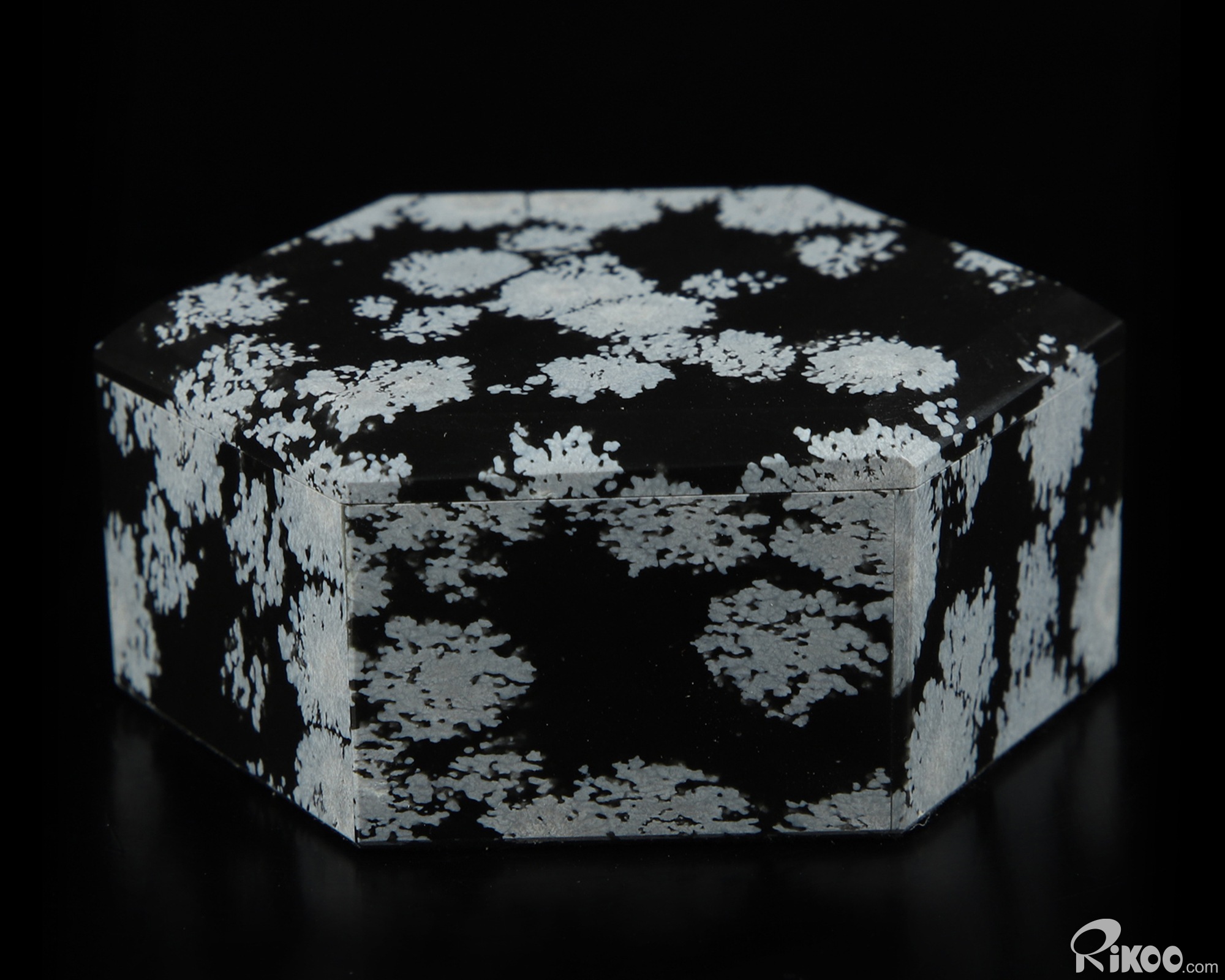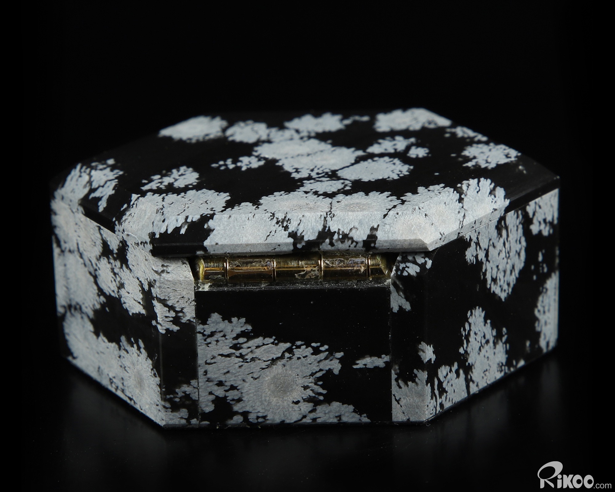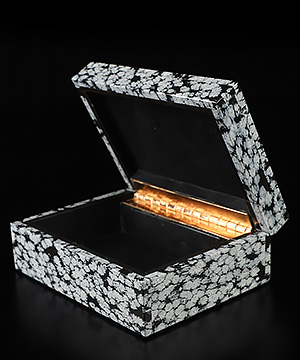 2.8" Snowflake Obsidian Carved Crystal Jewelry Box, Realistic