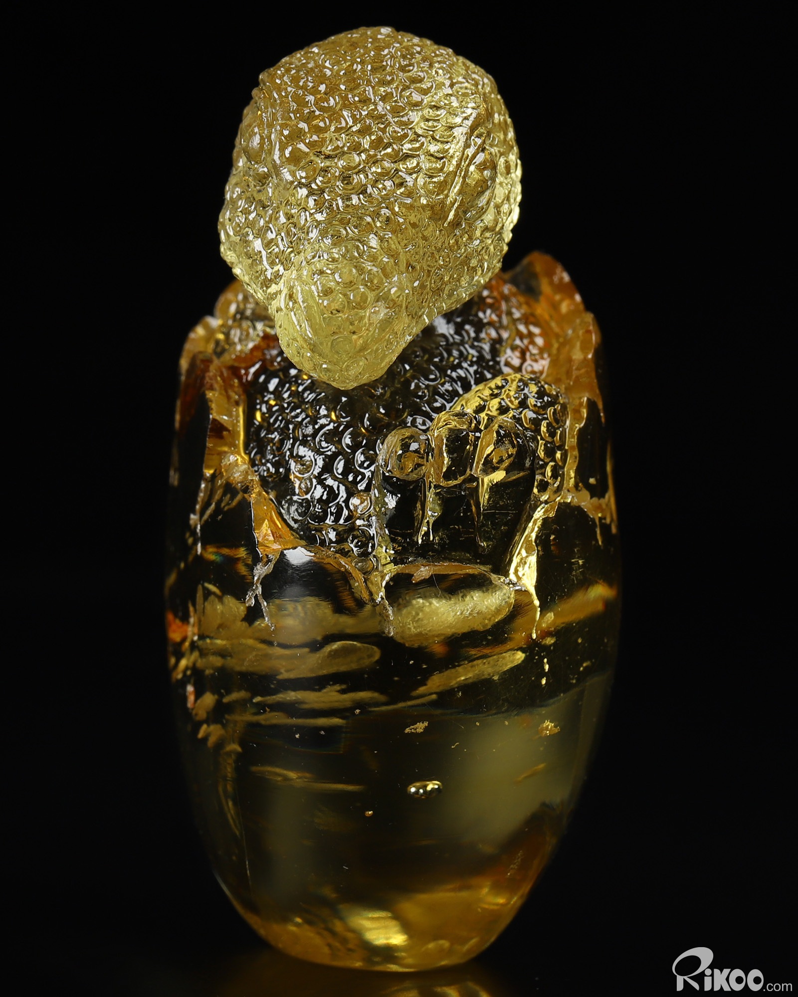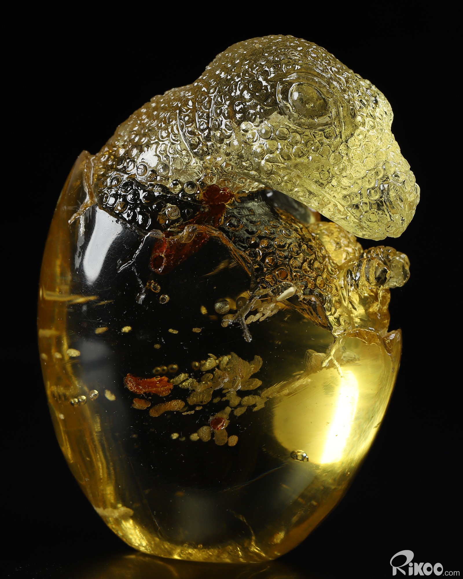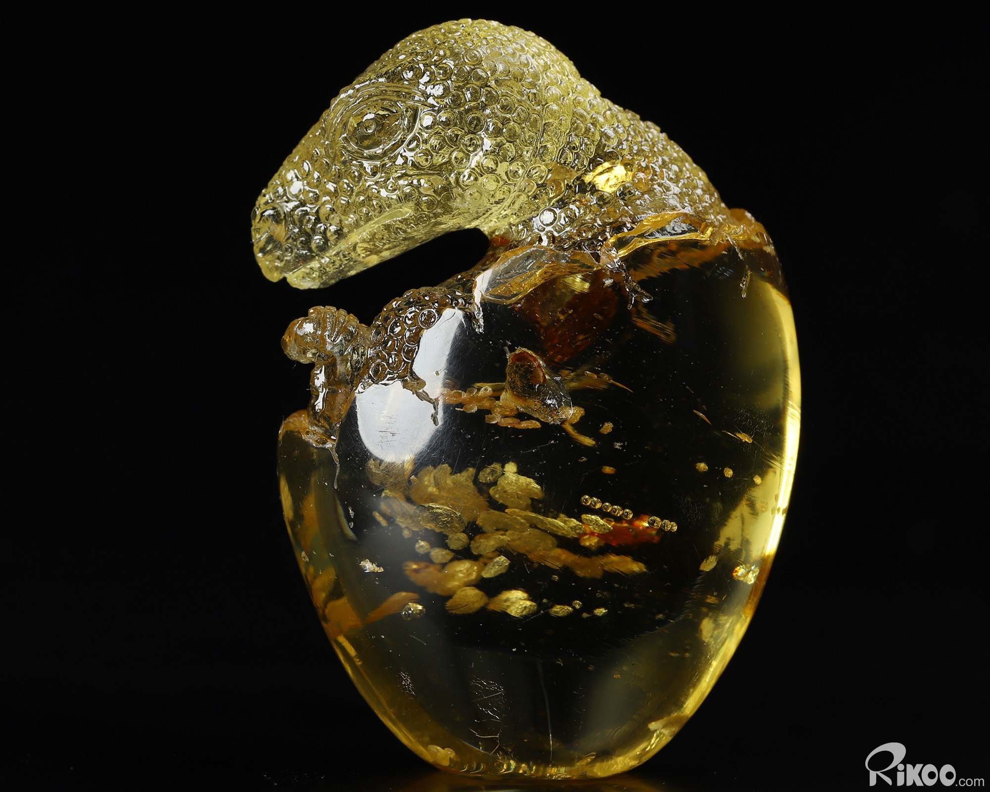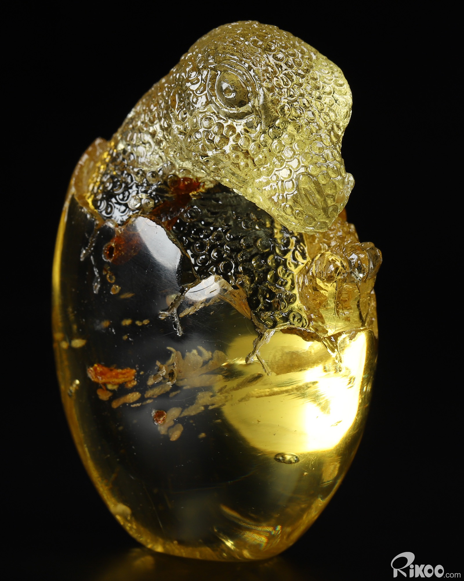 2.9" Baltic Amber Carved Crystal Dinosaur Sculpture, Crystal Healing