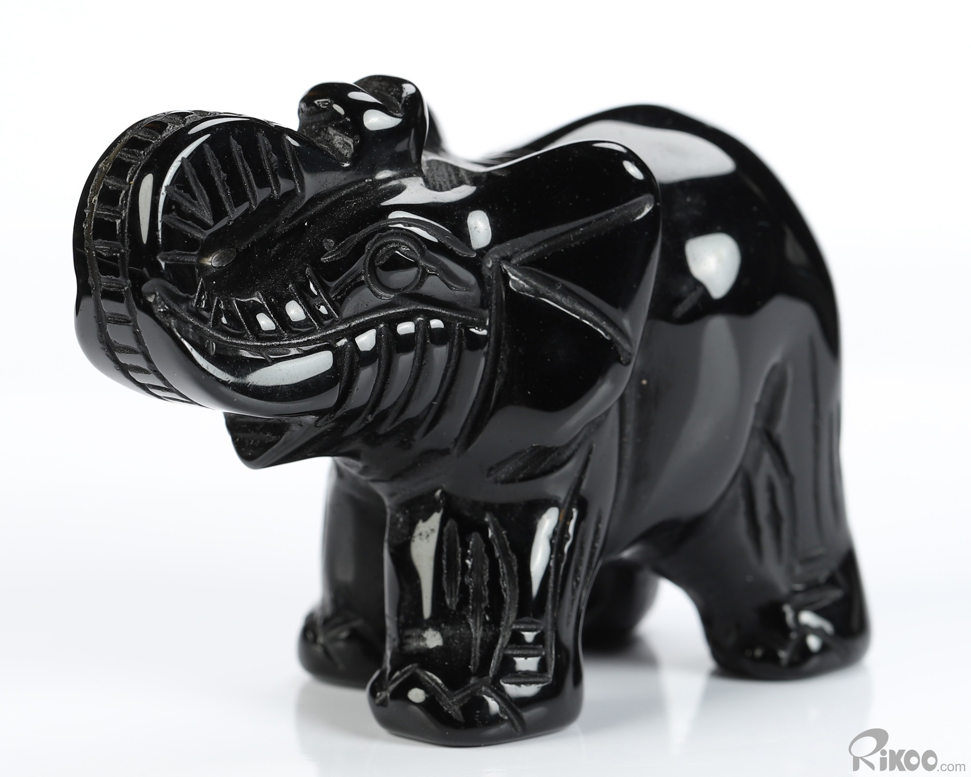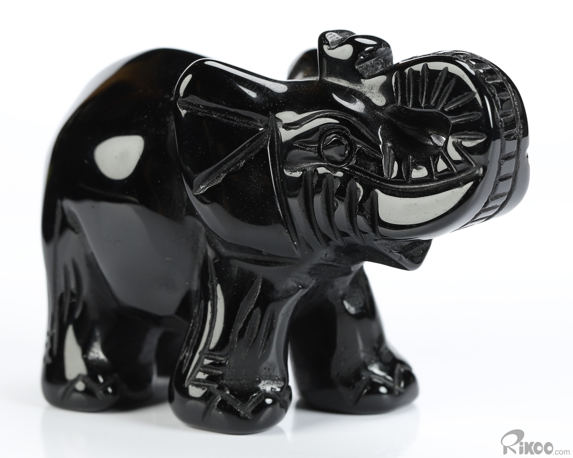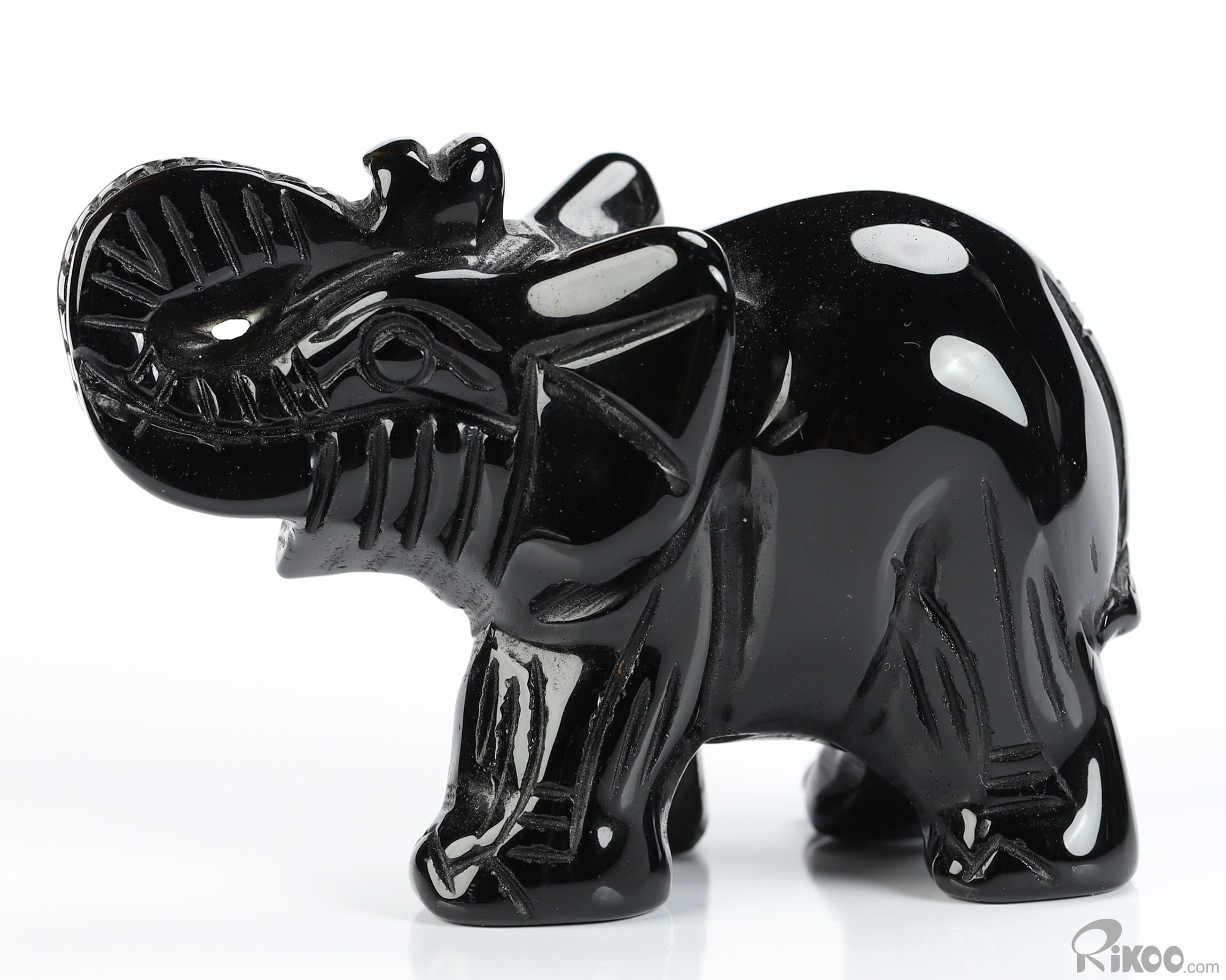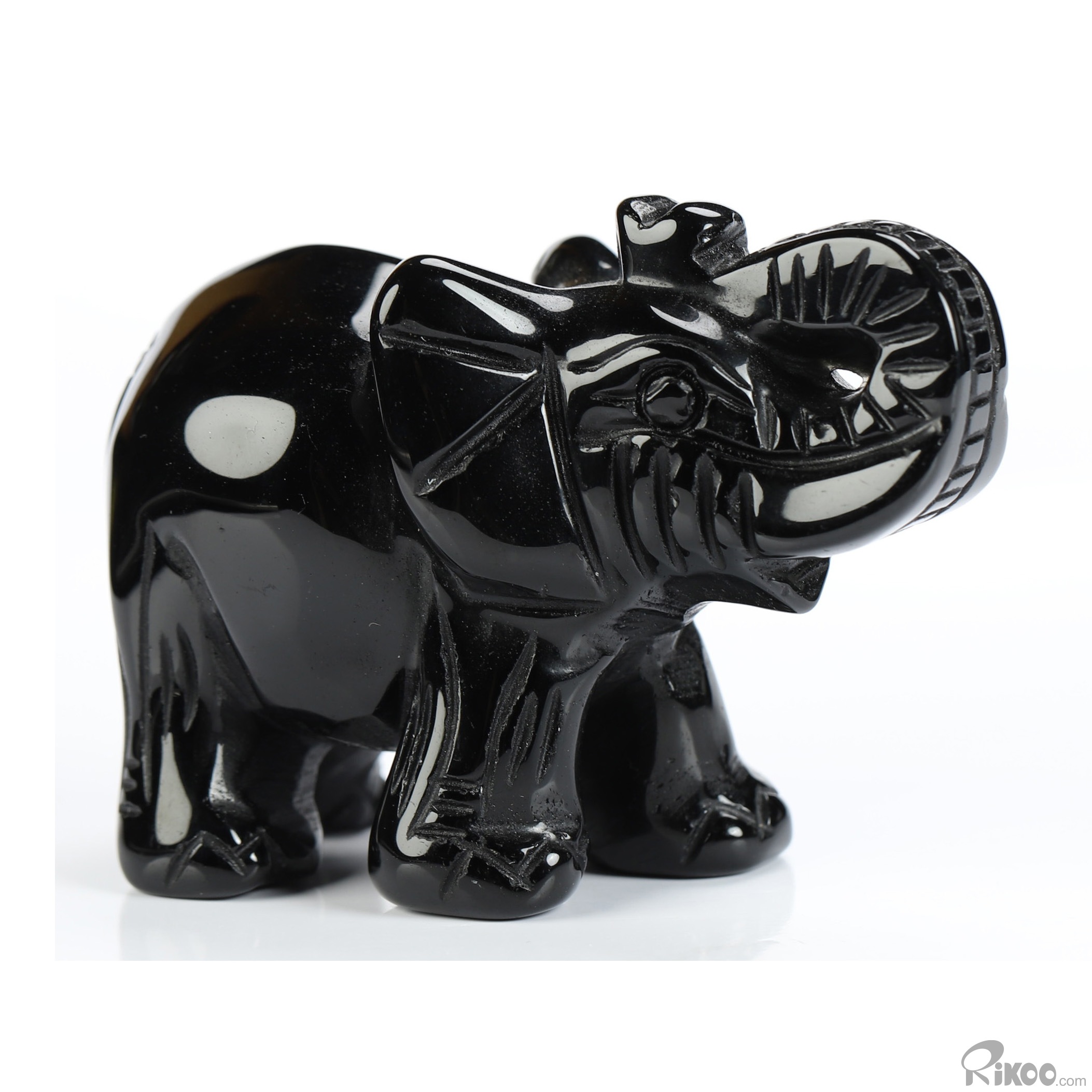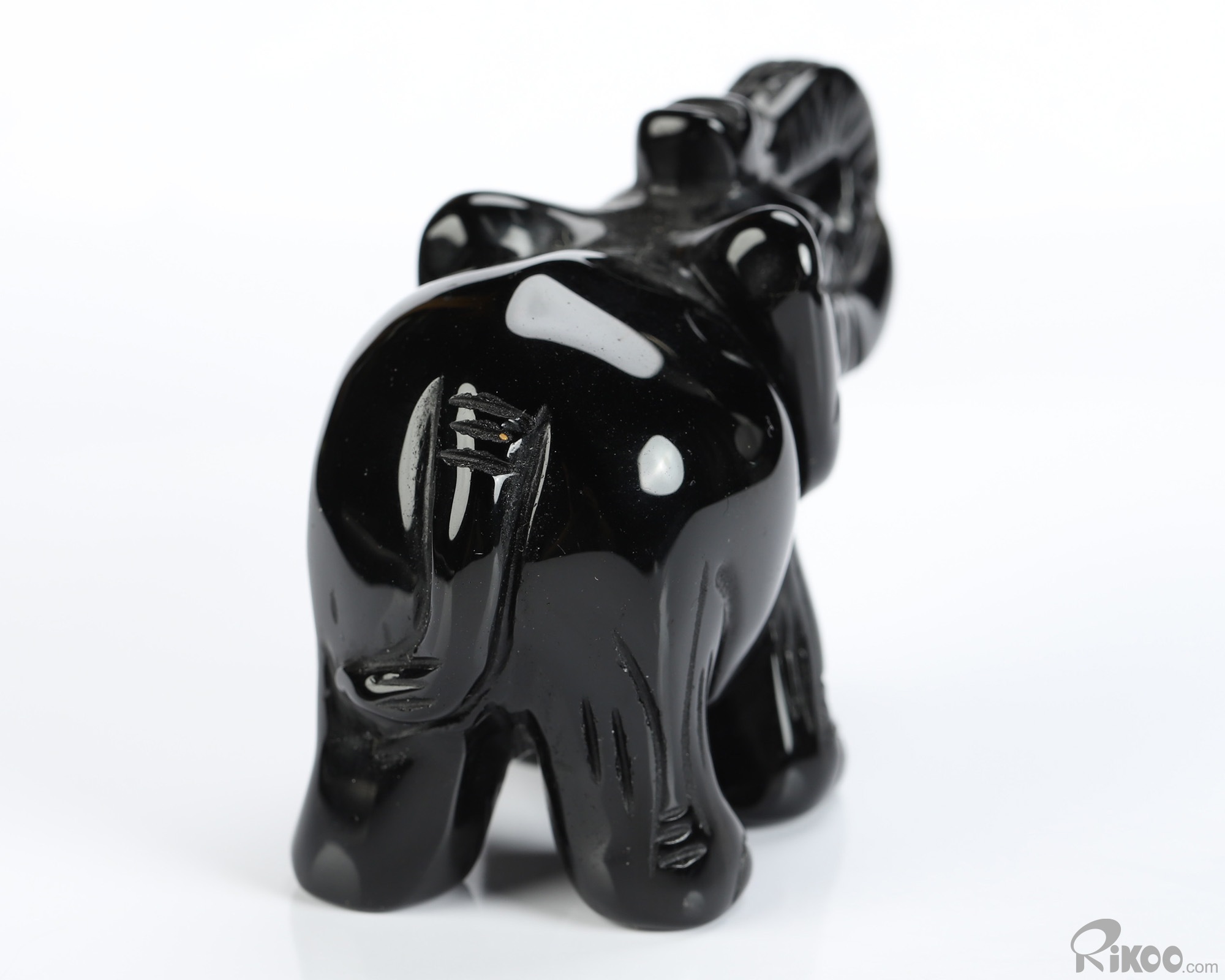 2.9" Black Obsidian Hand Carved Crystal Elephant Sculpture, Crystal Healing