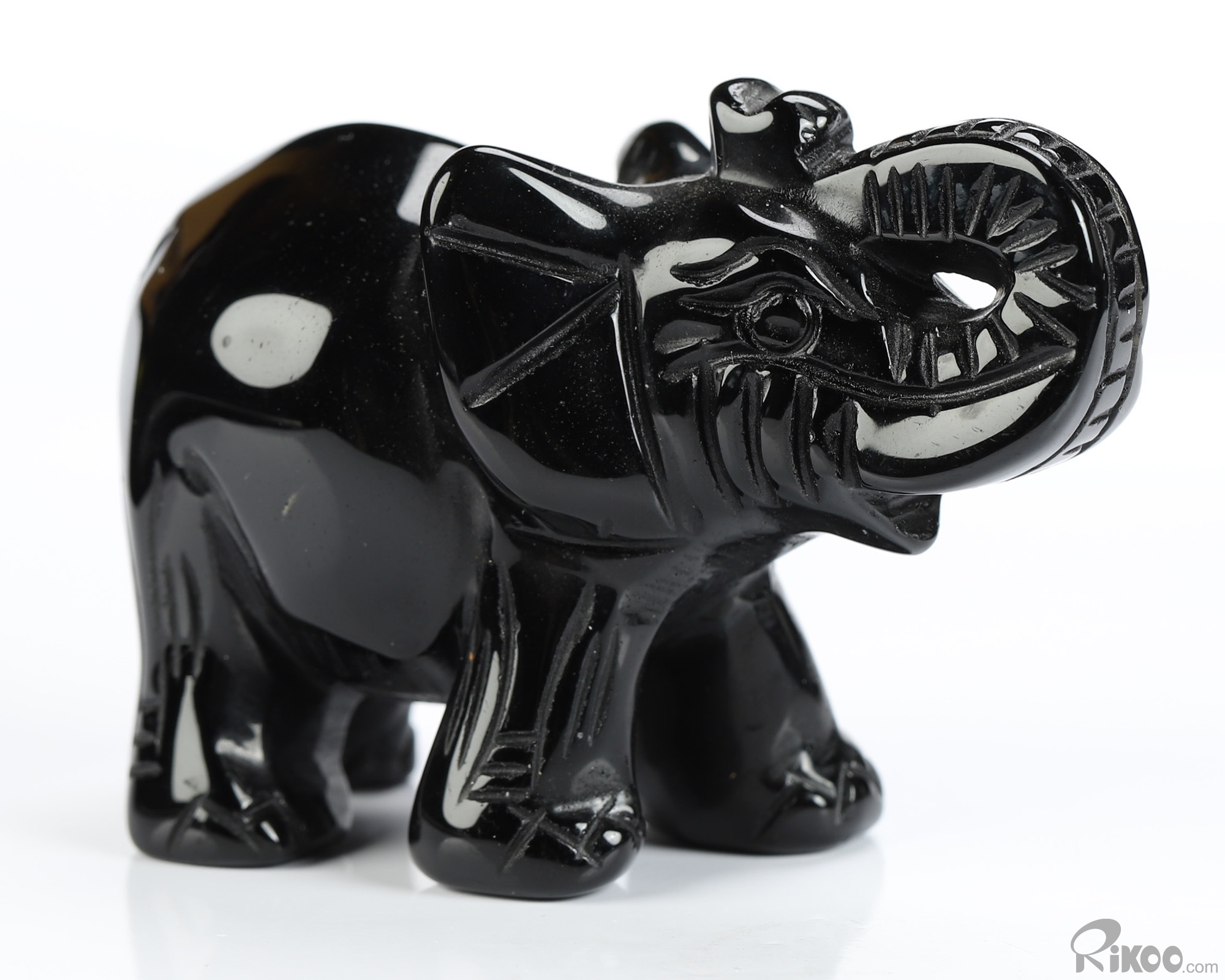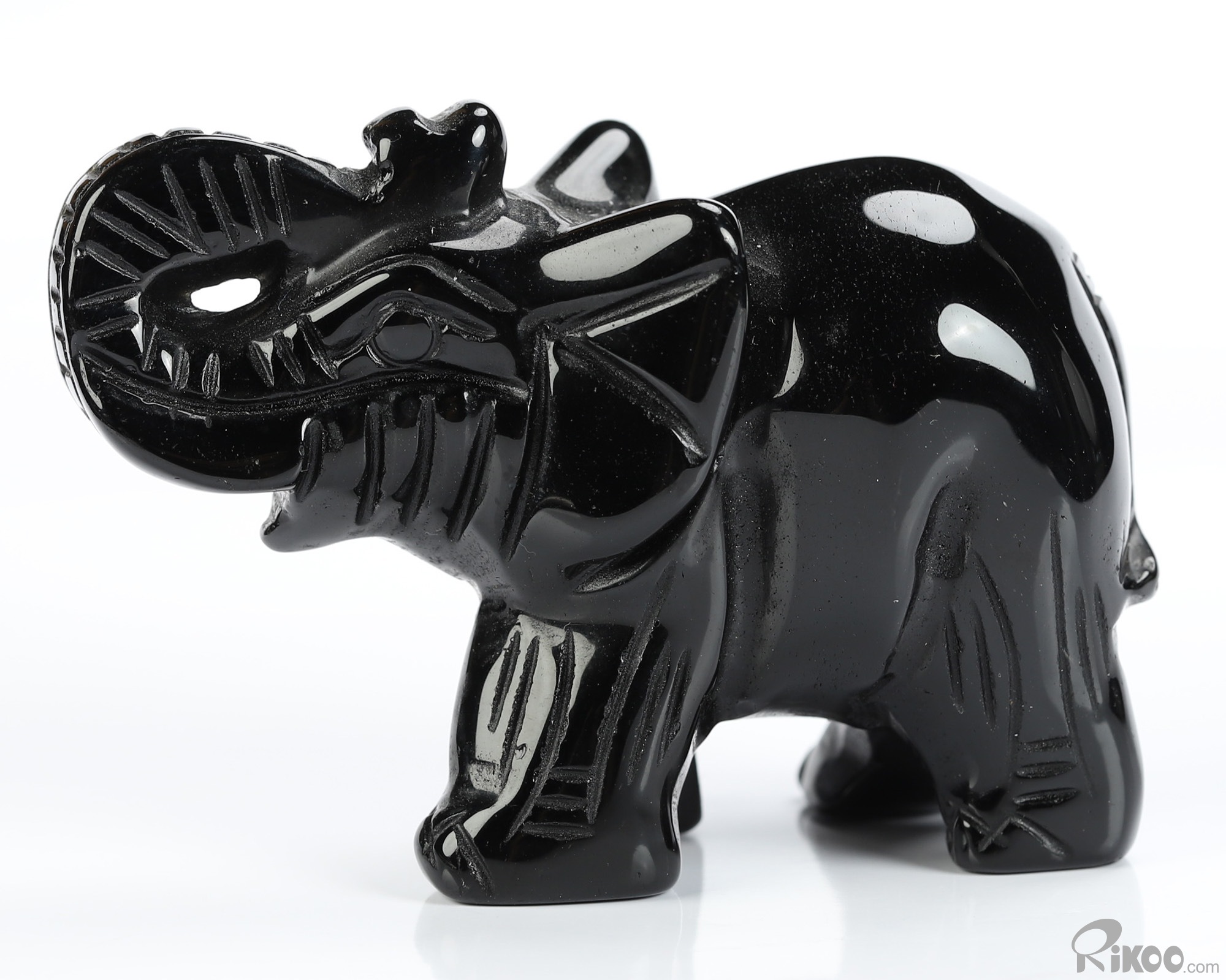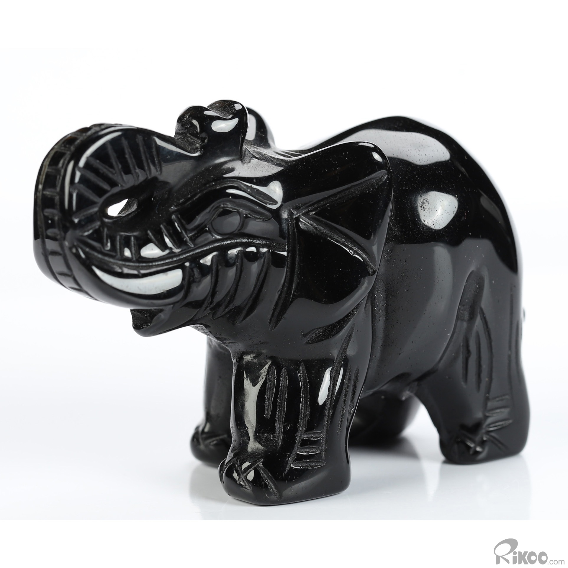 2.9" Black Obsidian Hand Carved Crystal Elephant Sculpture, Crystal Healing