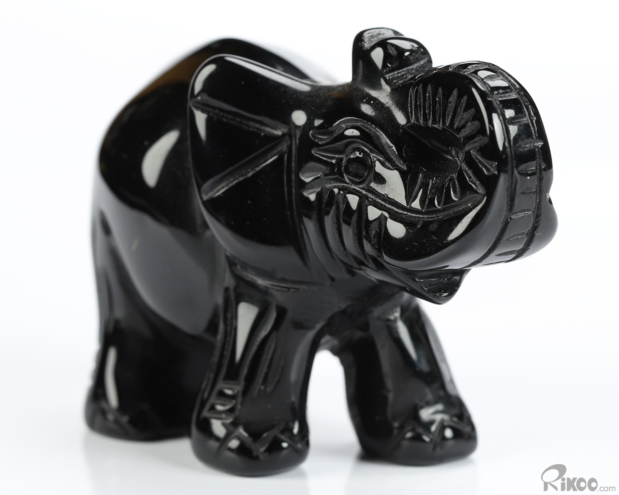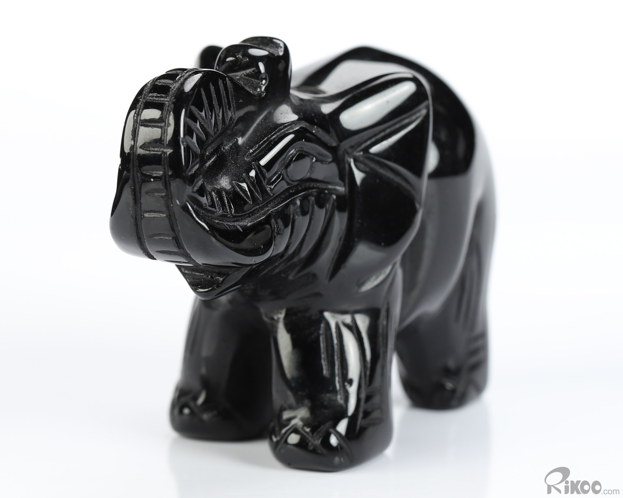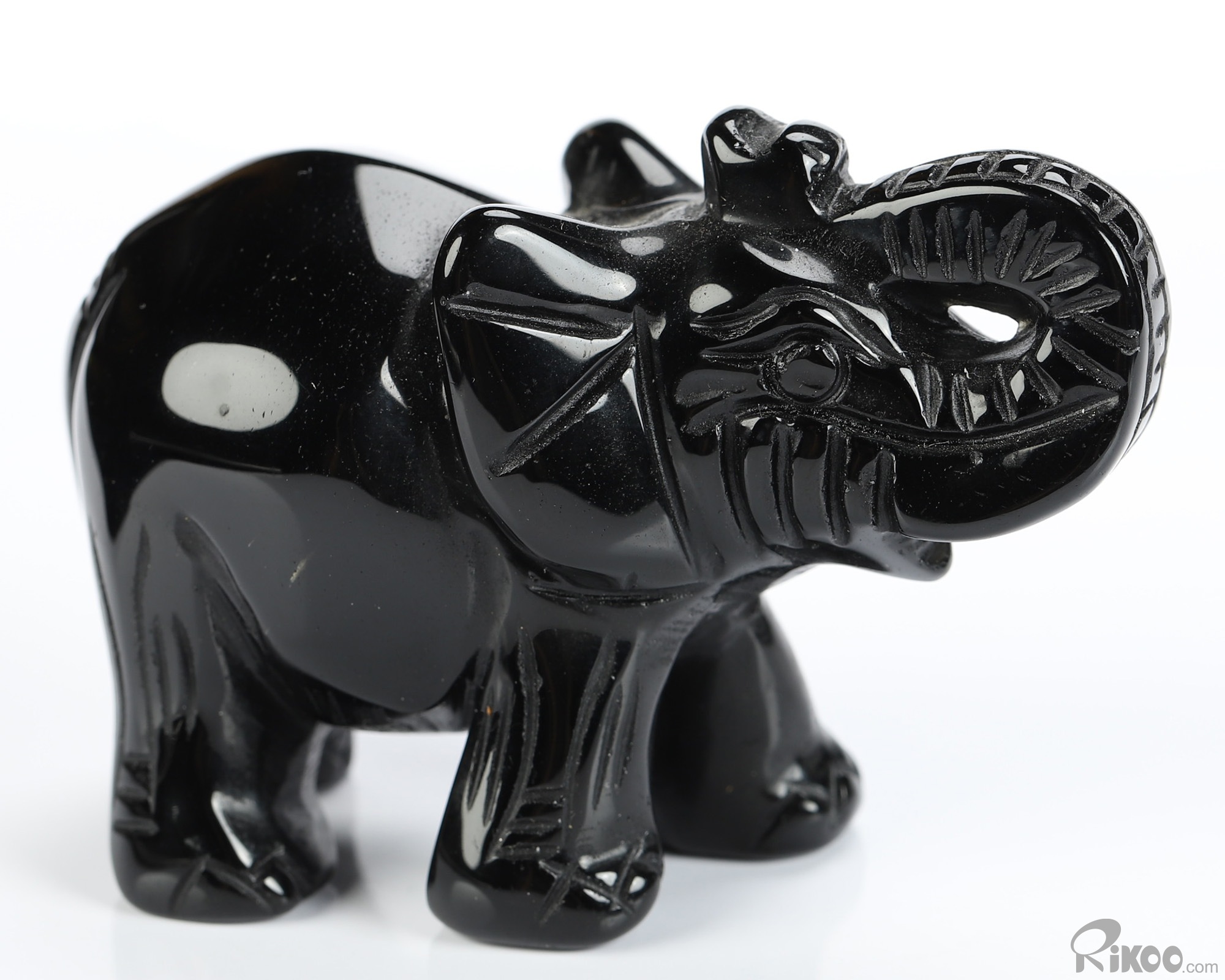 2.9" Black Obsidian Hand Carved Crystal Elephant Sculpture, Crystal Healing