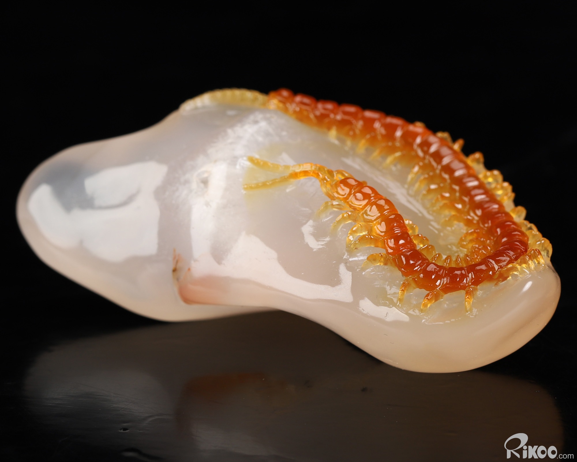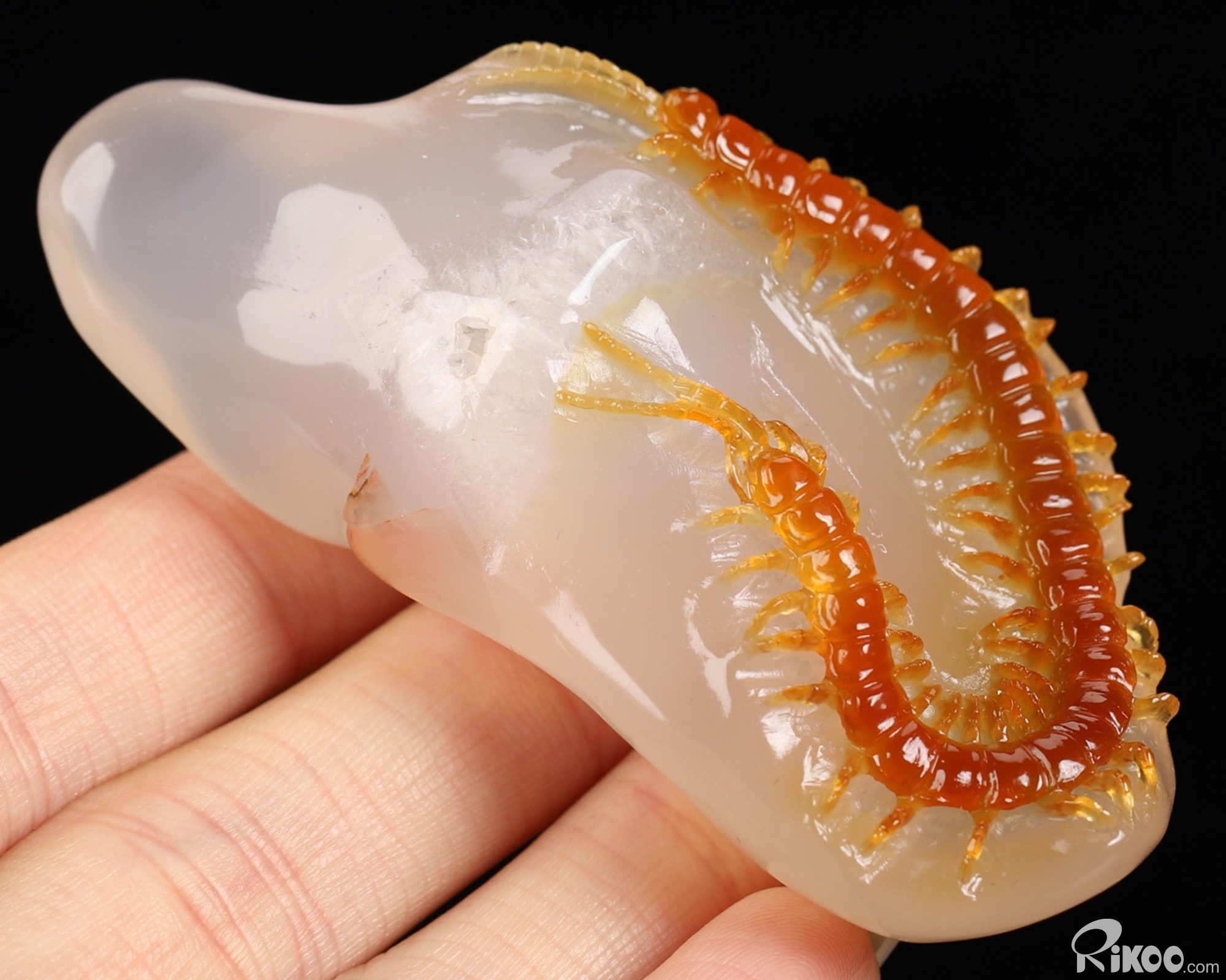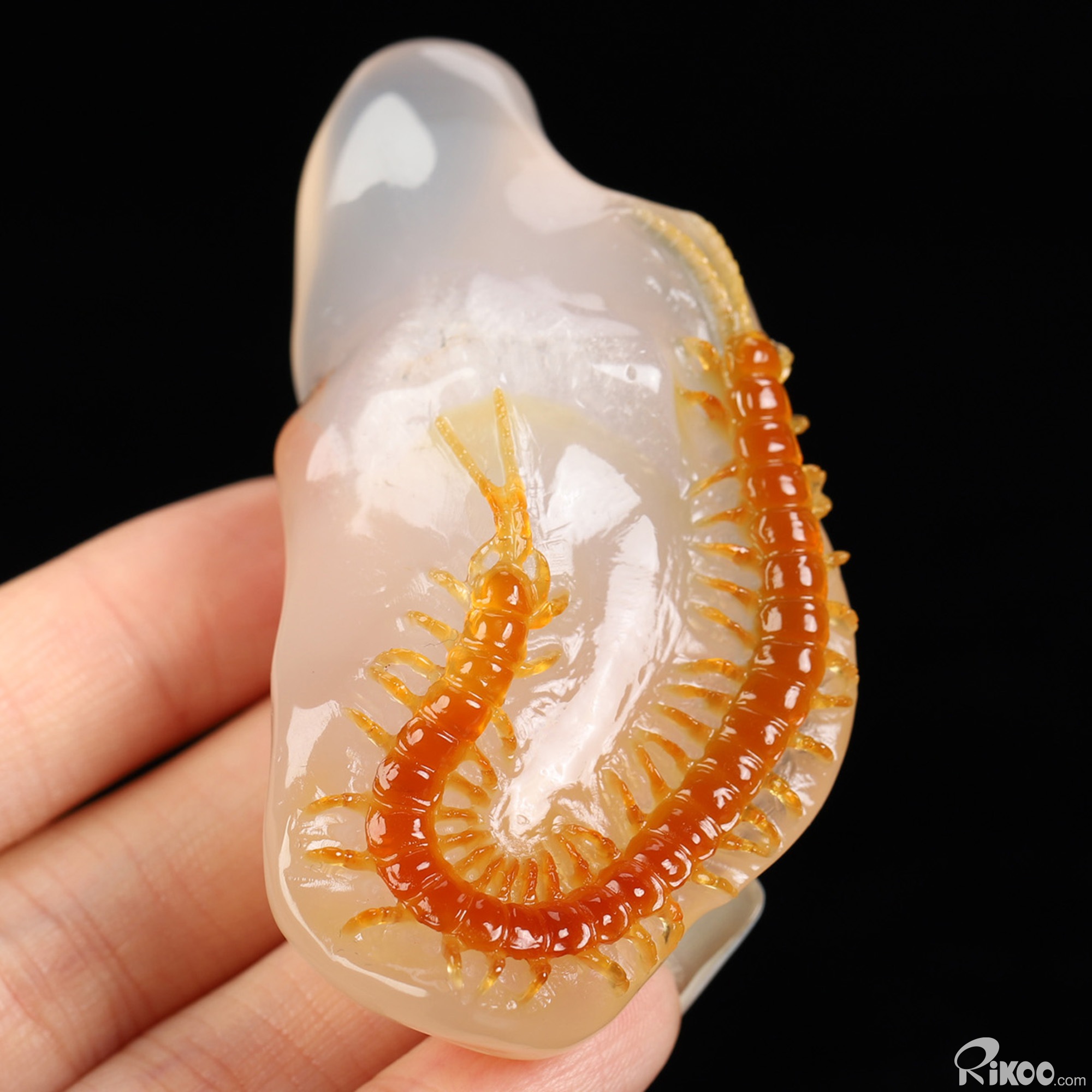 You are looking at a Carnelian sculpture. The sculpture is 2.9 inches long. Please Note: The Centipede is skillfully carved from the stone's natural coloration.