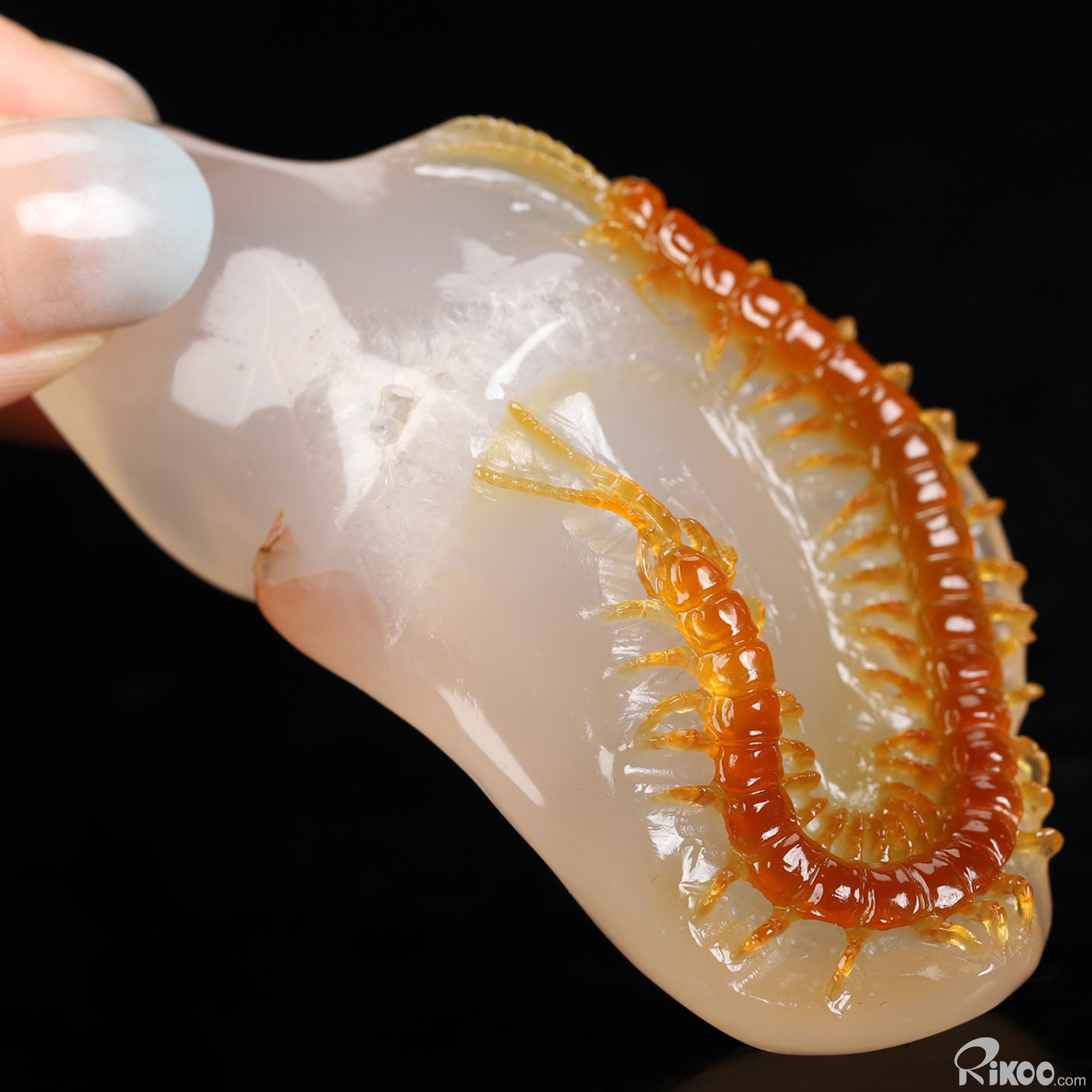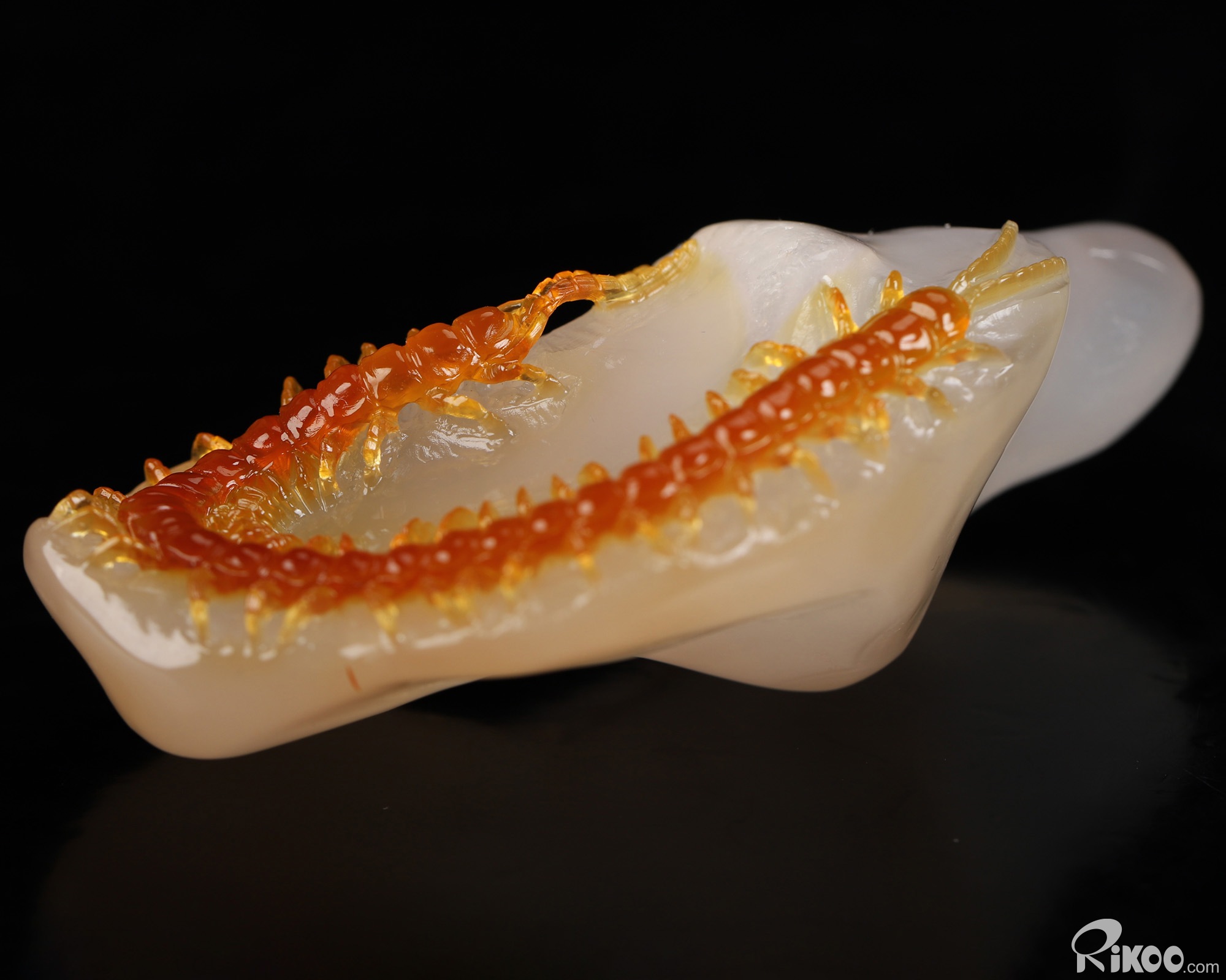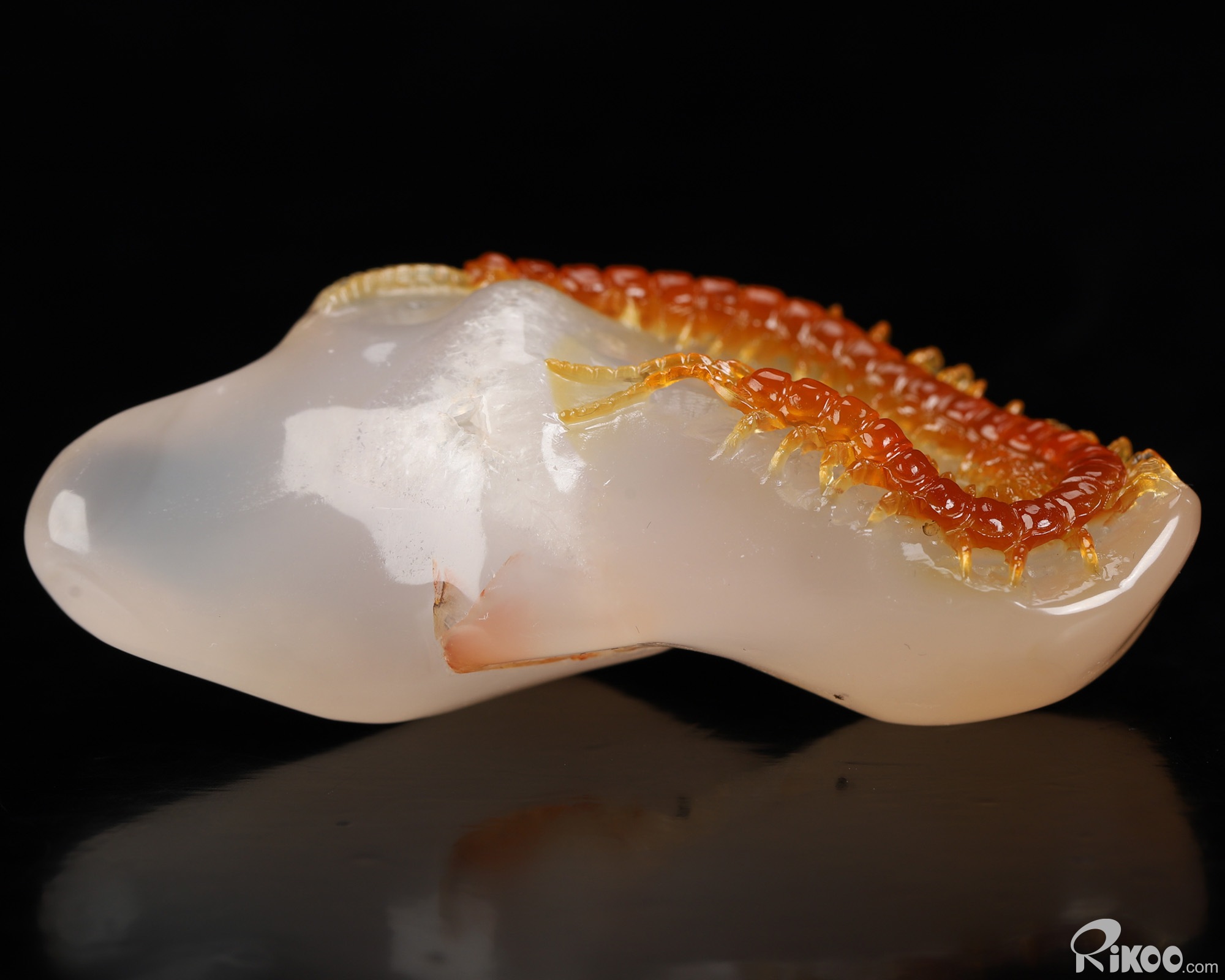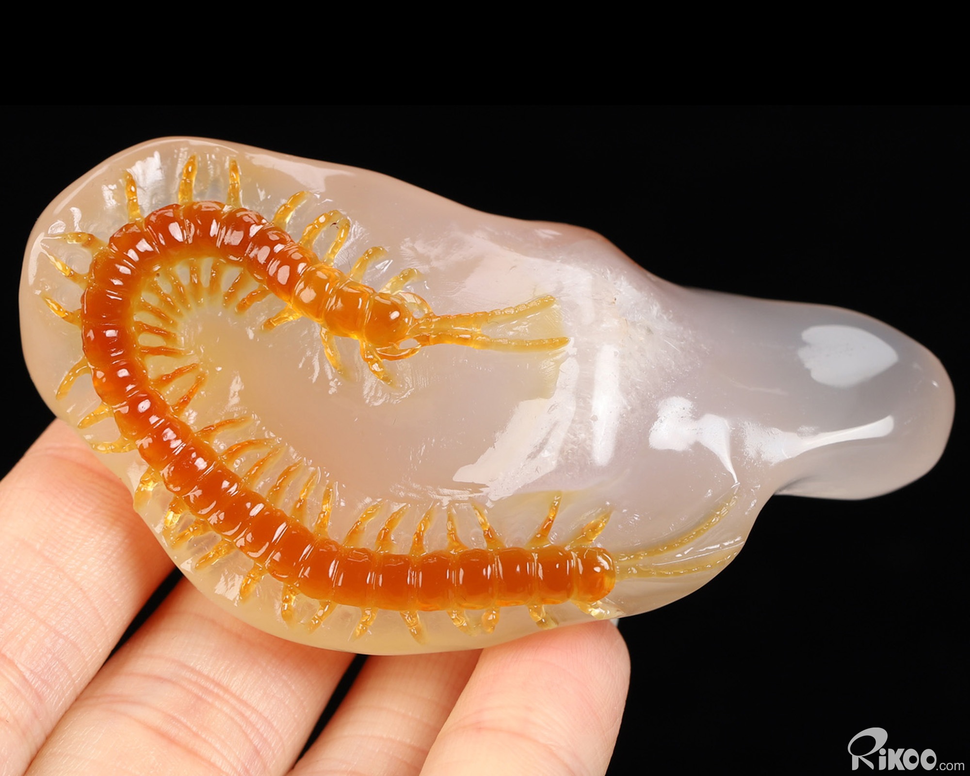 You are looking at a Carnelian sculpture. The sculpture is 2.9 inches long. Please Note: The Centipede is skillfully carved from the stone's natural coloration.