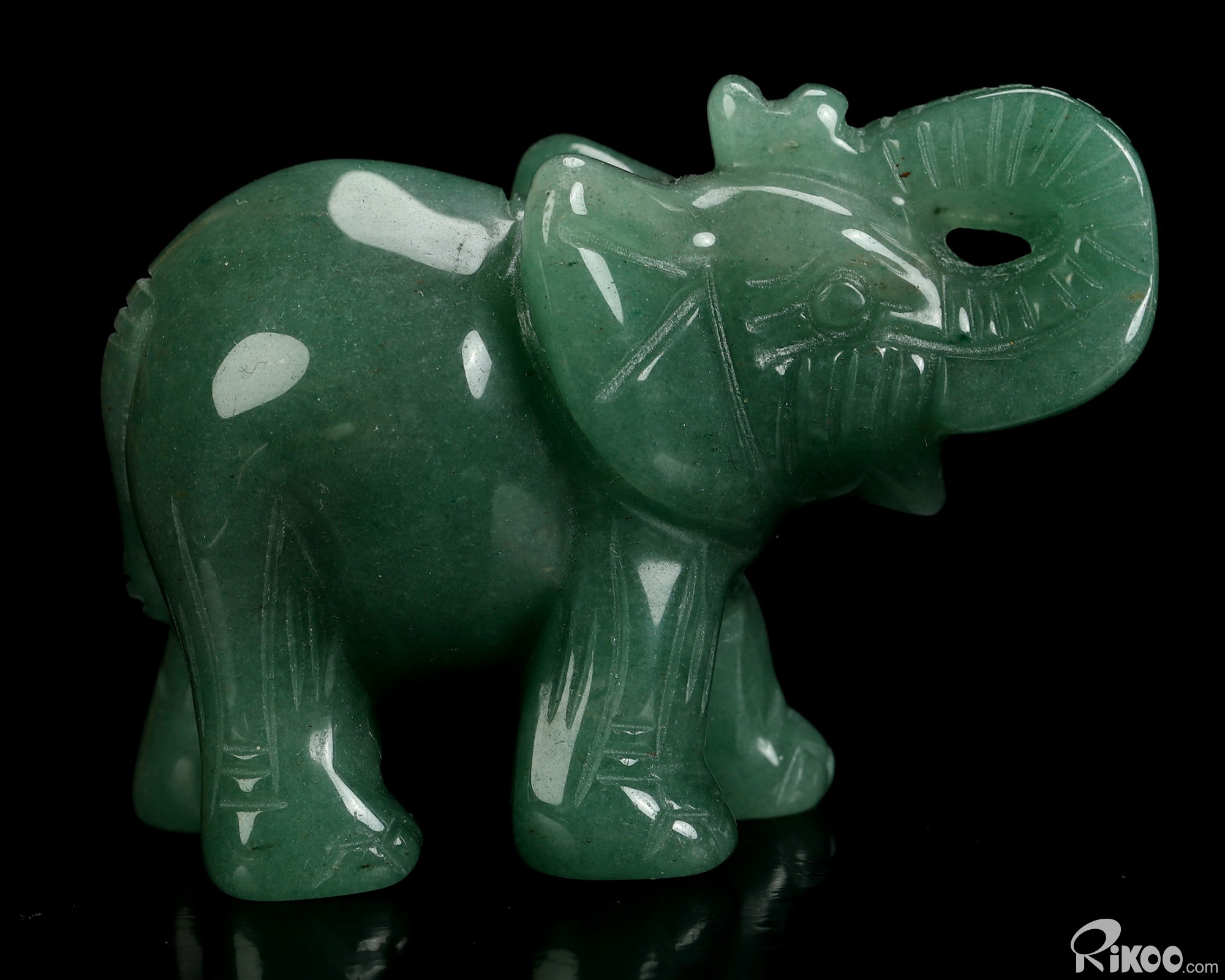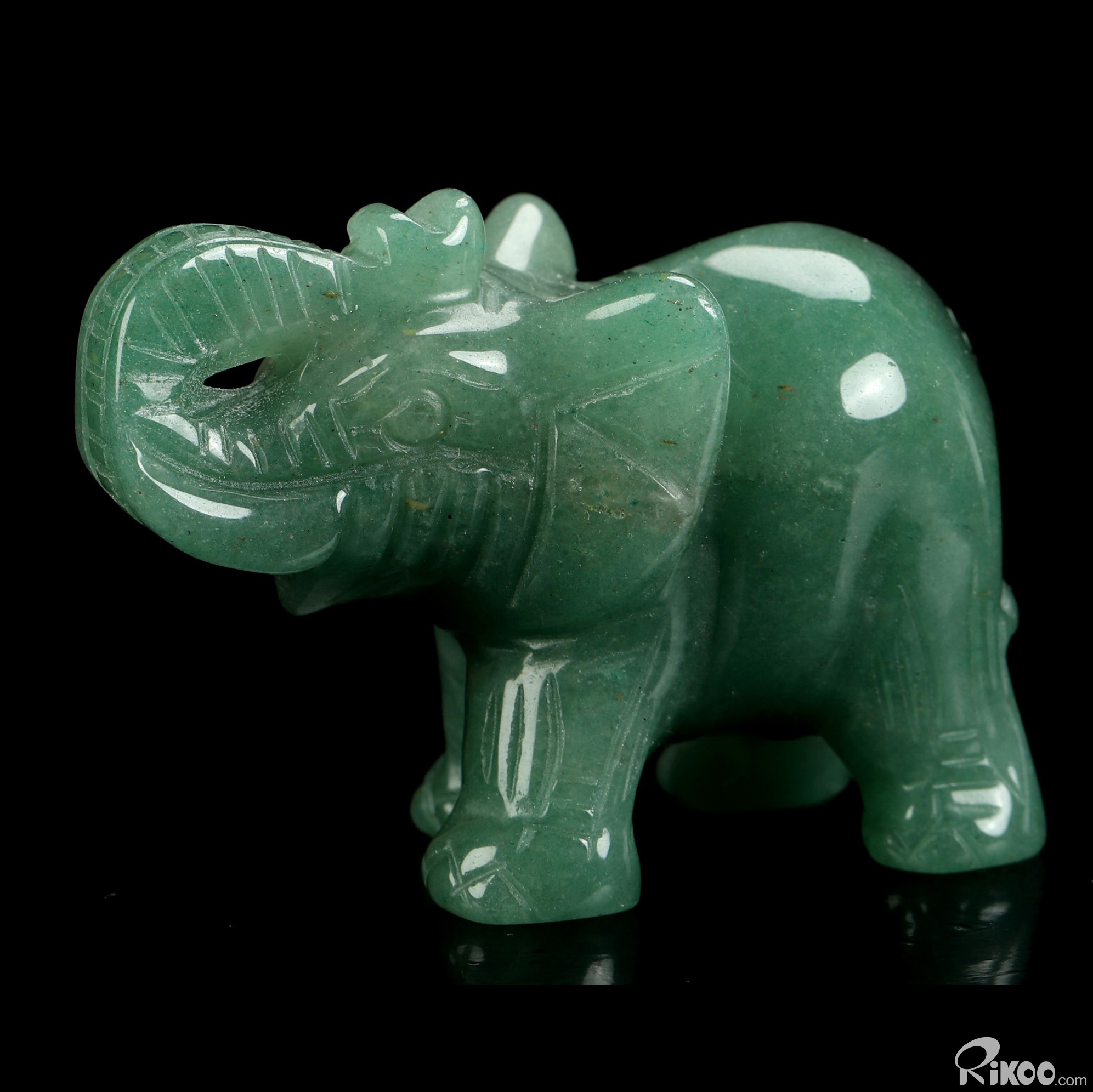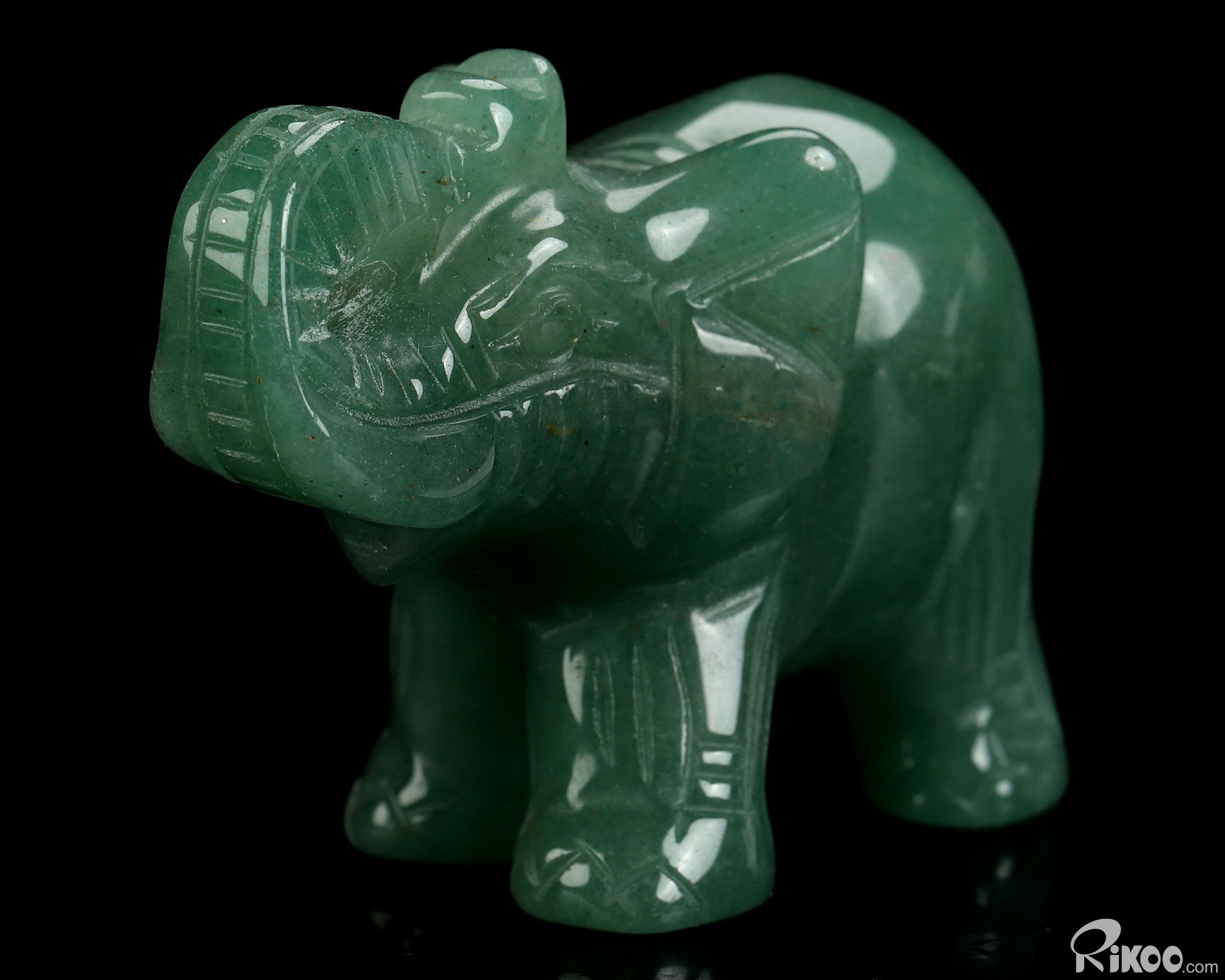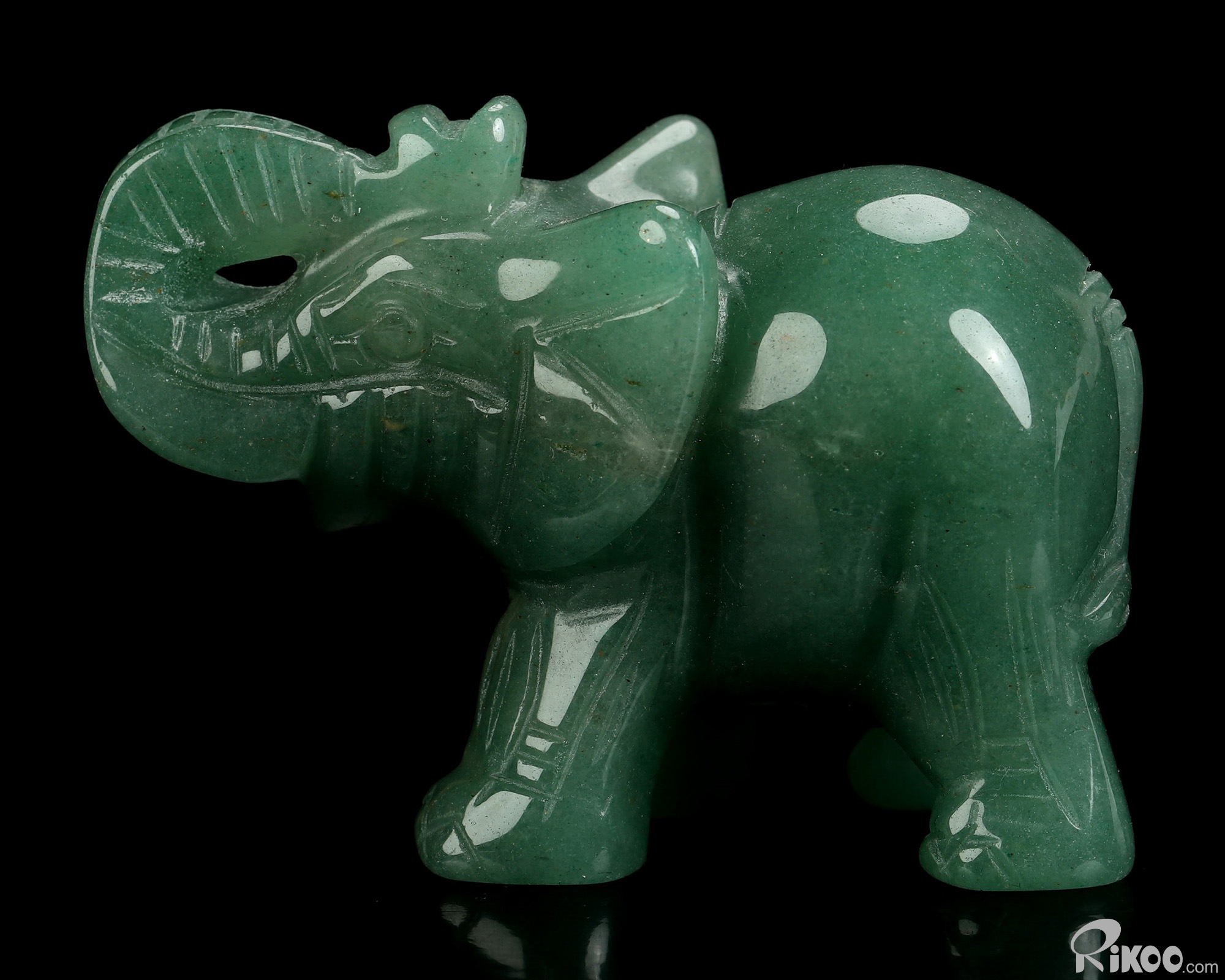 2.9" Green Aventurine Hand Carved Crystal Elephant Sculpture, Crystal Healing