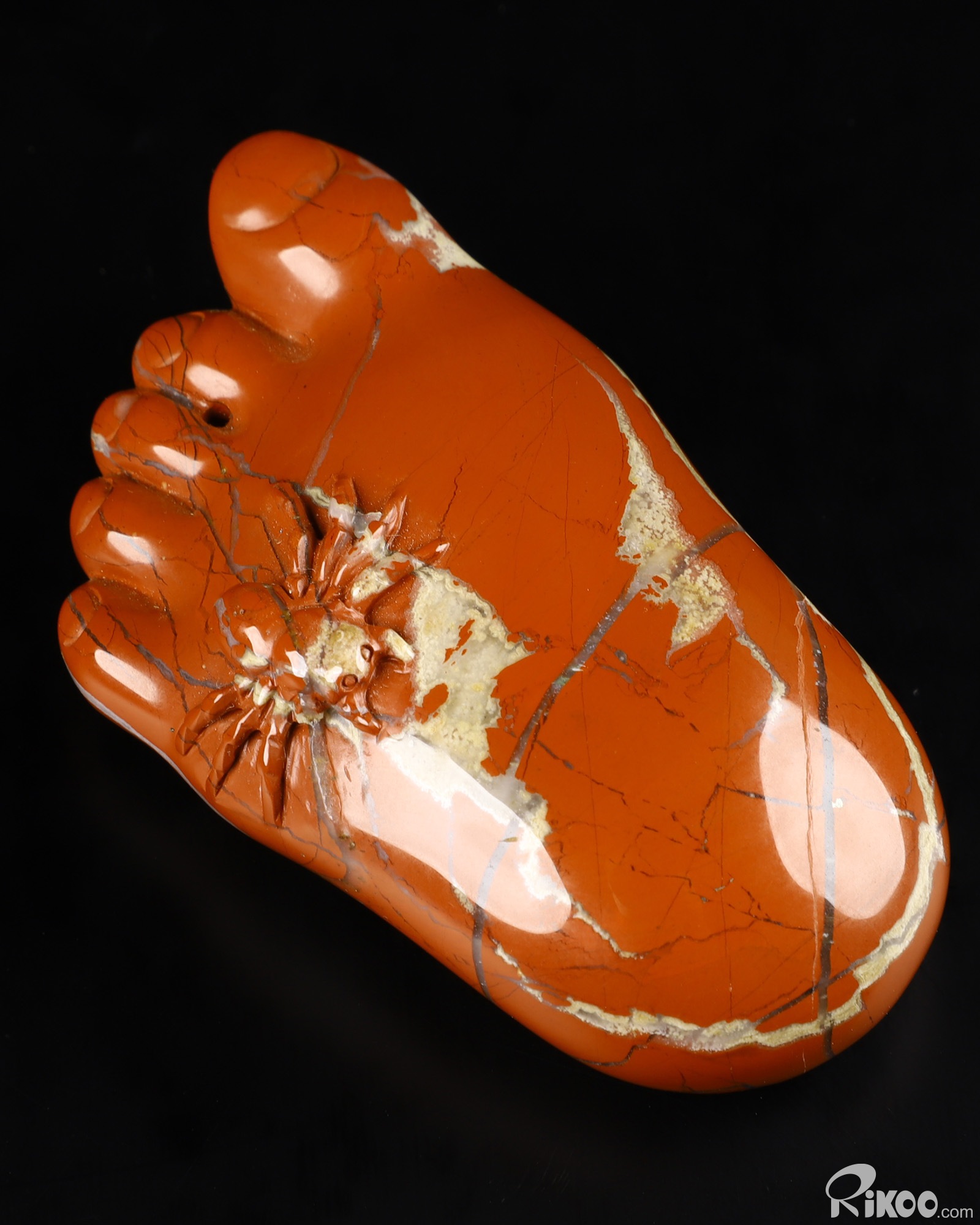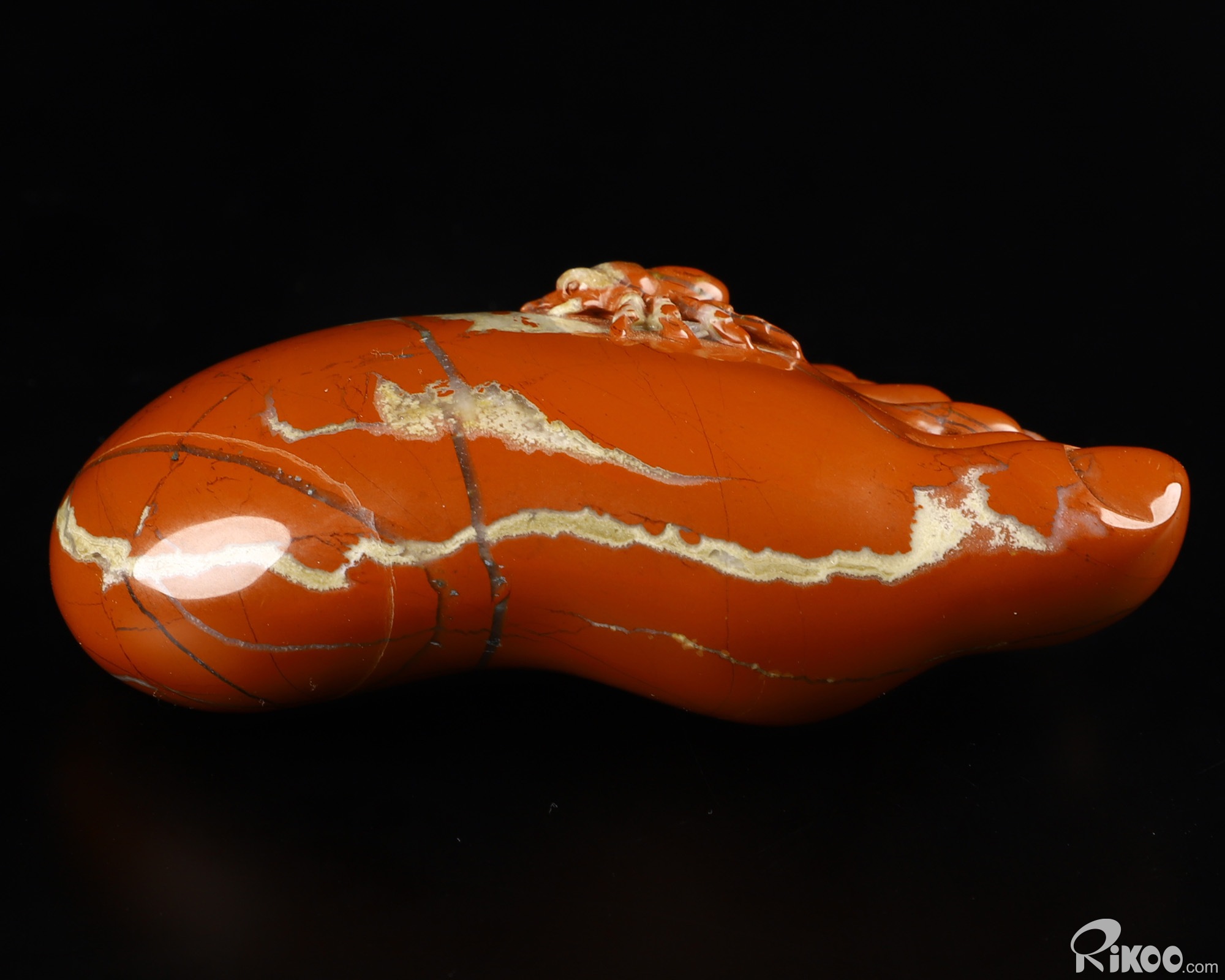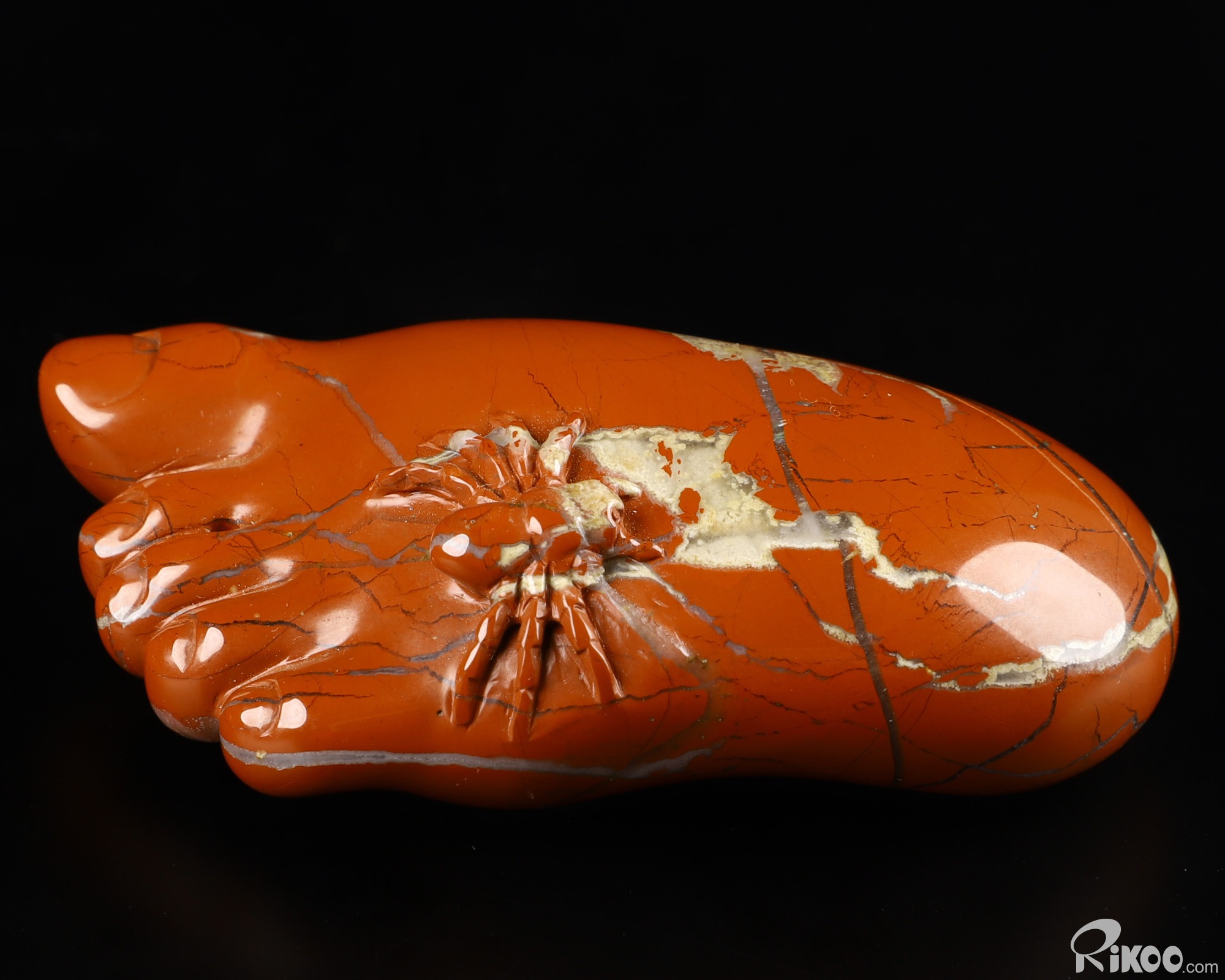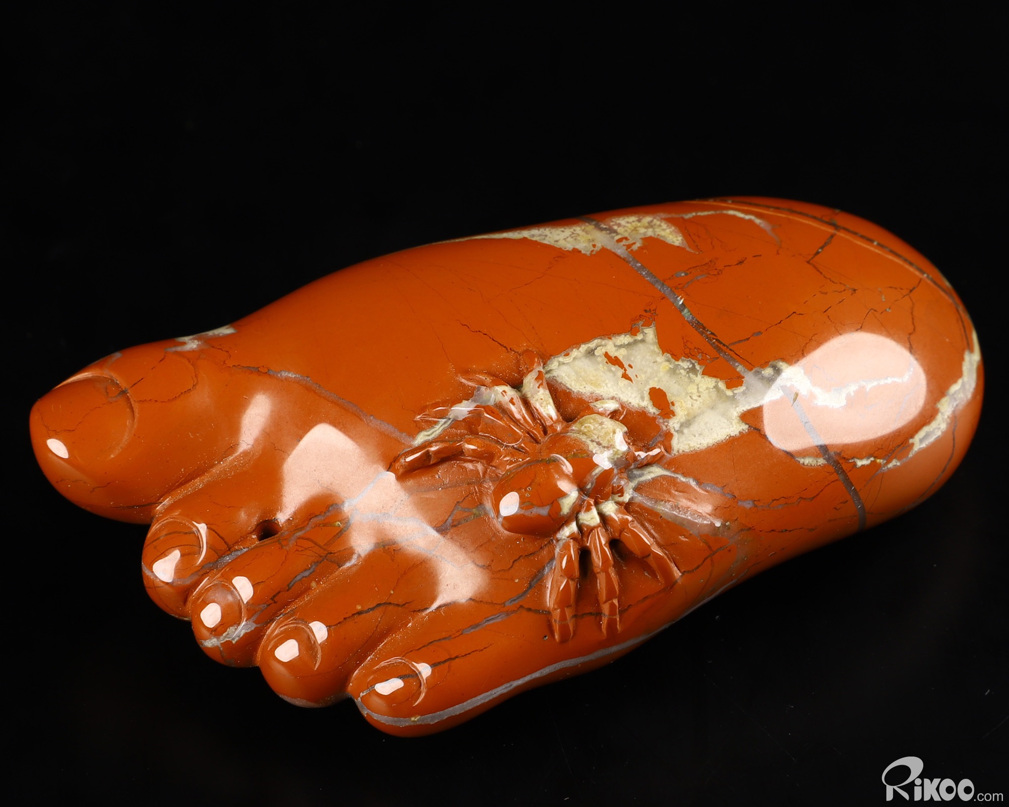 2.9" Red Jasper Carved Crystal Foot & Spider Sculpture