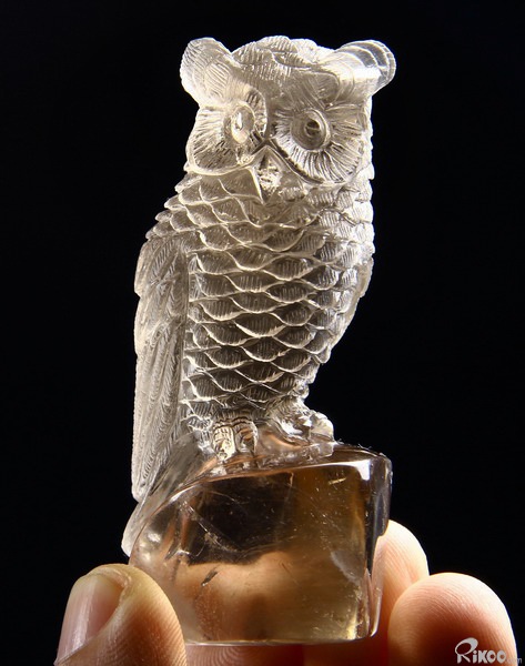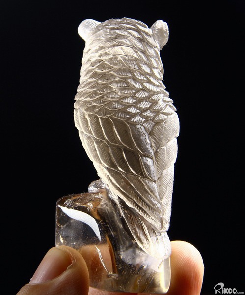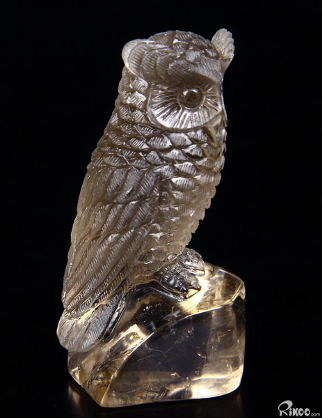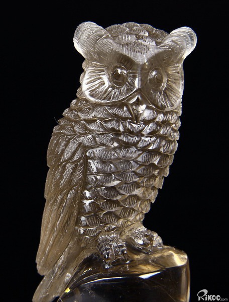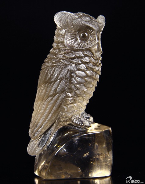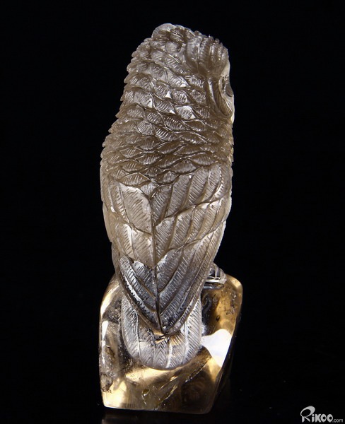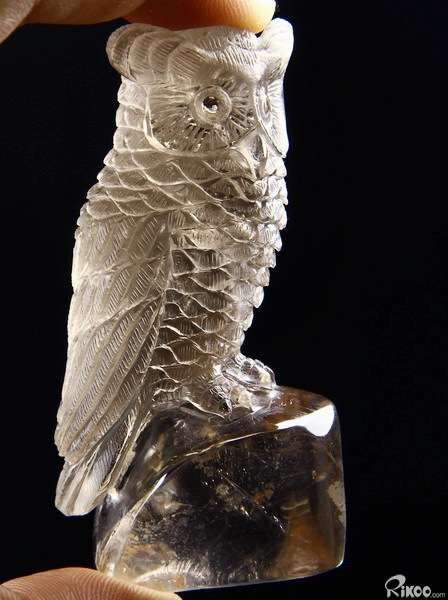 2.9" Smoky Quartz Rock Crystal Carved Crystal Owl Sculpture