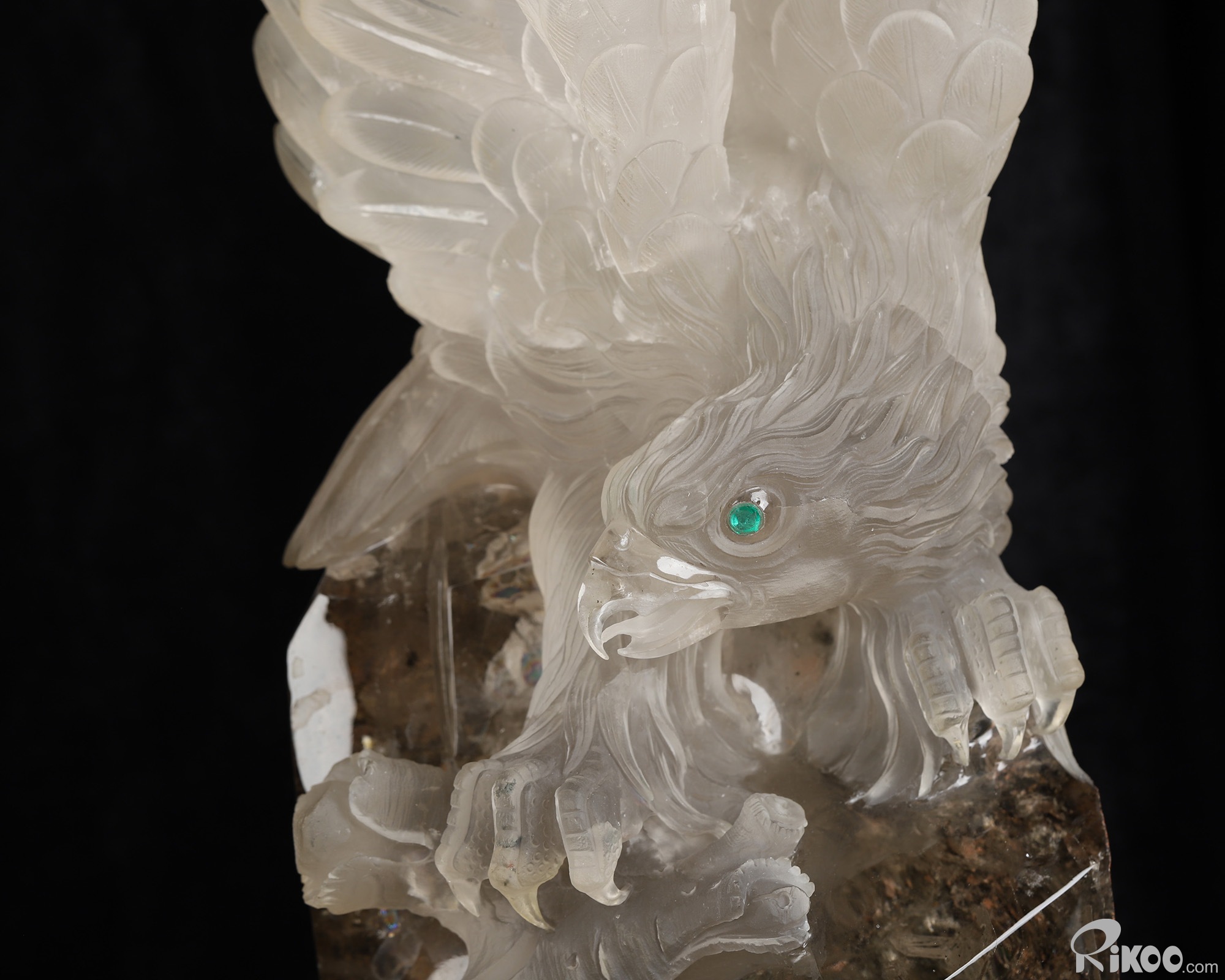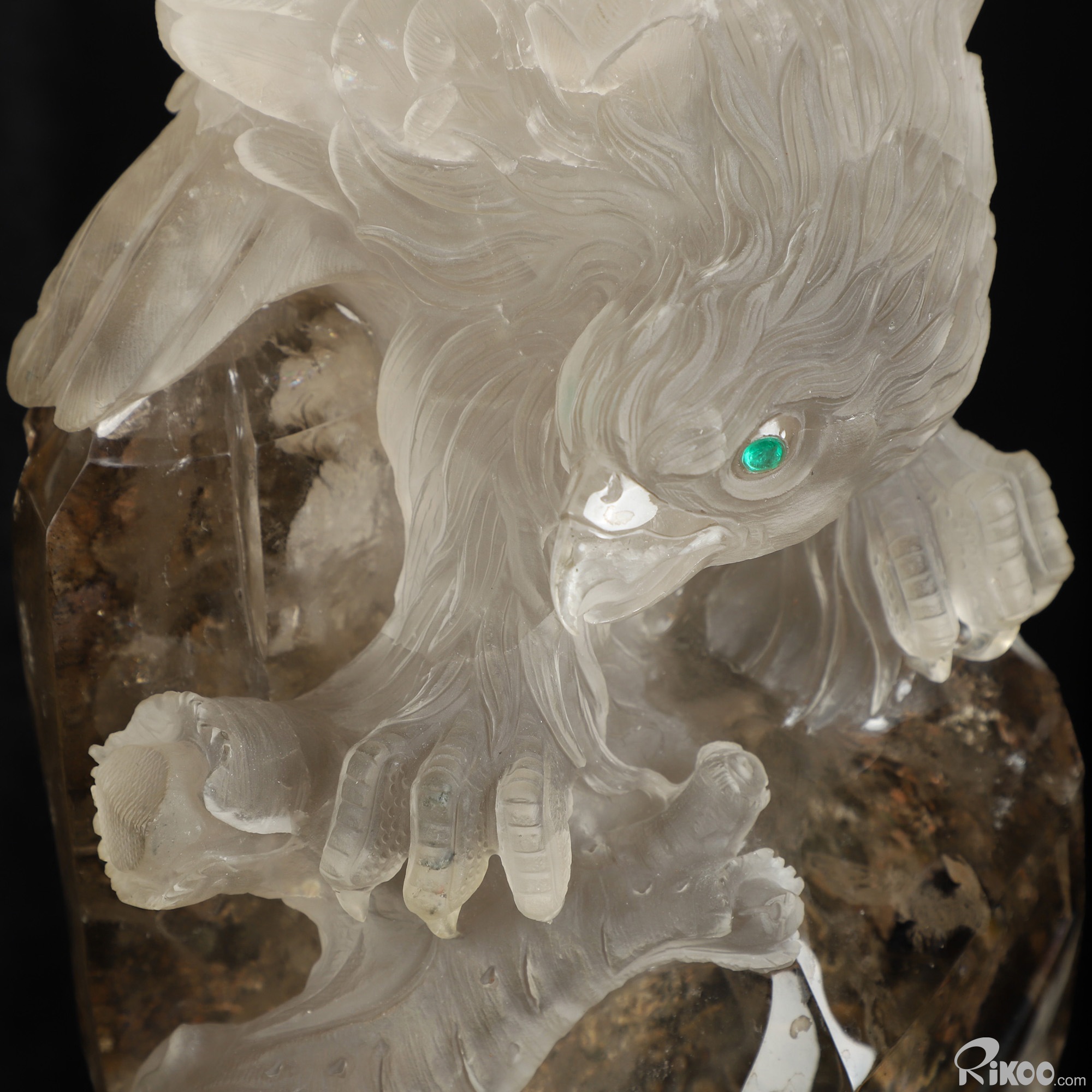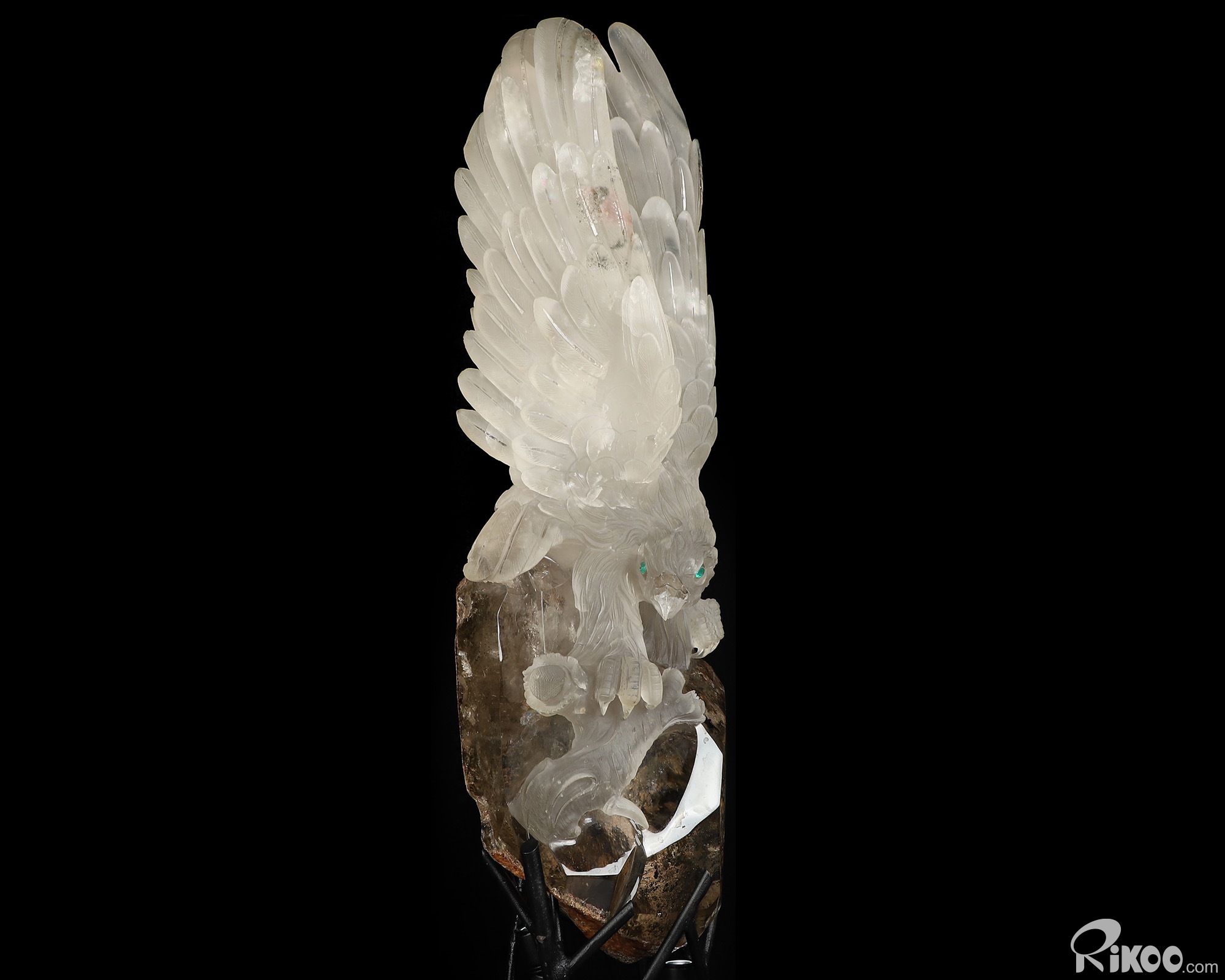 21.3" Smoky Phantom Quartz Rock Crystal Hand Carved Crystal Eagle with Emerald Eyes Sculpture, Crystal Healing