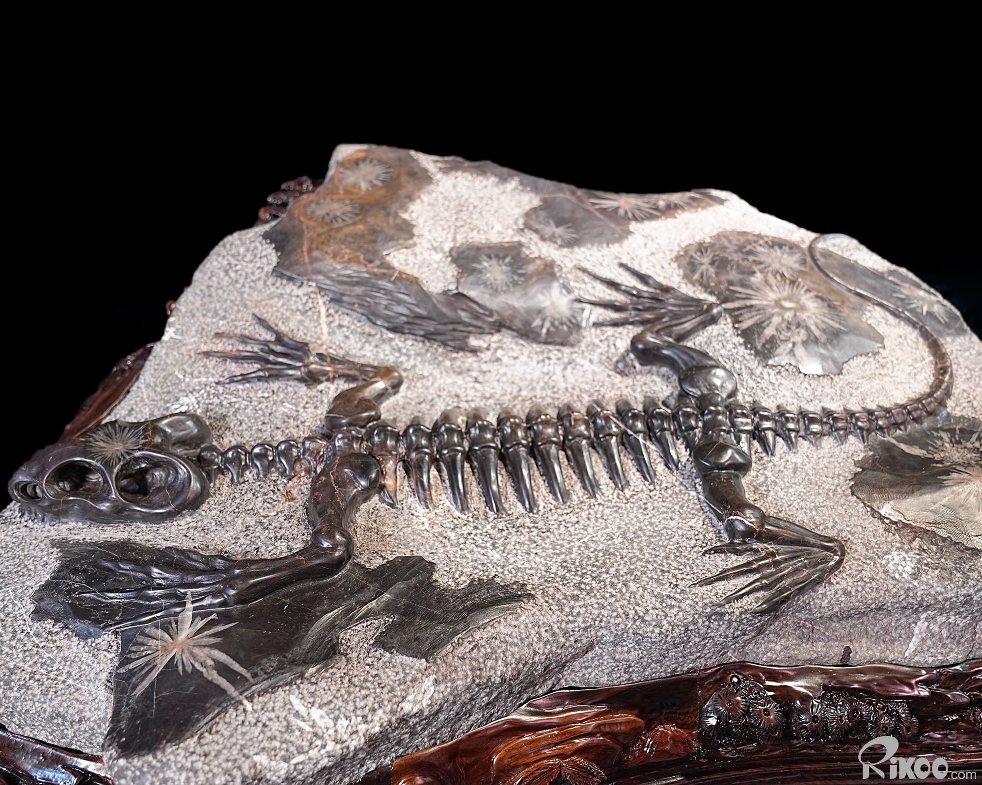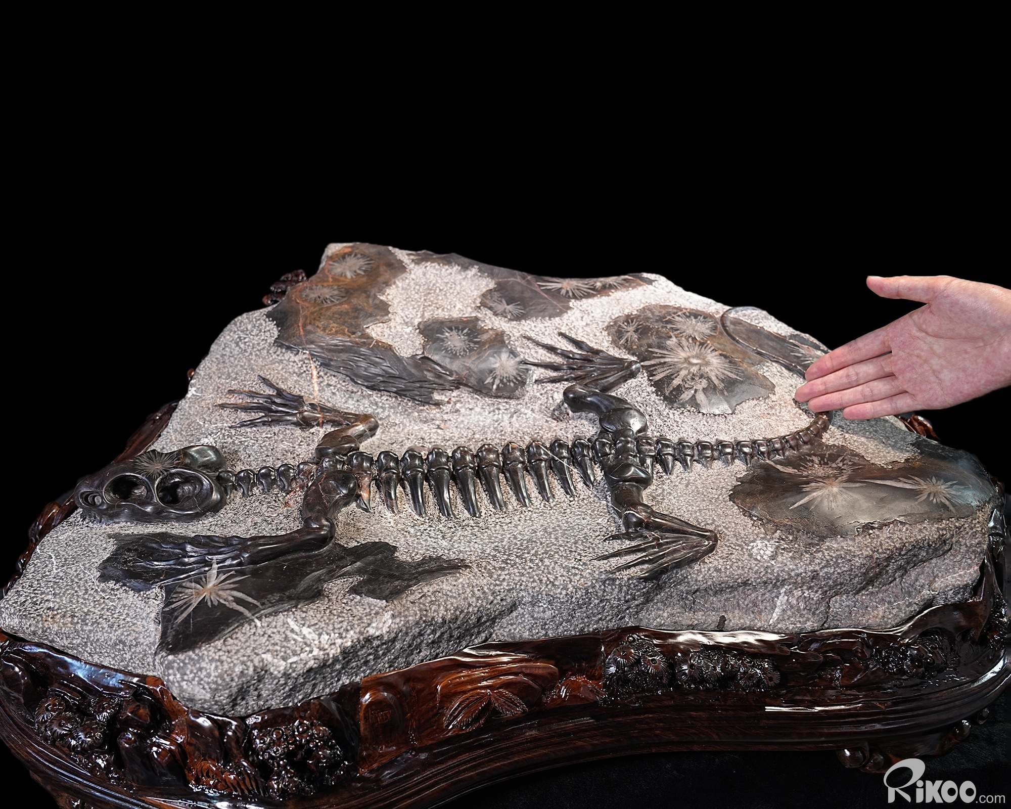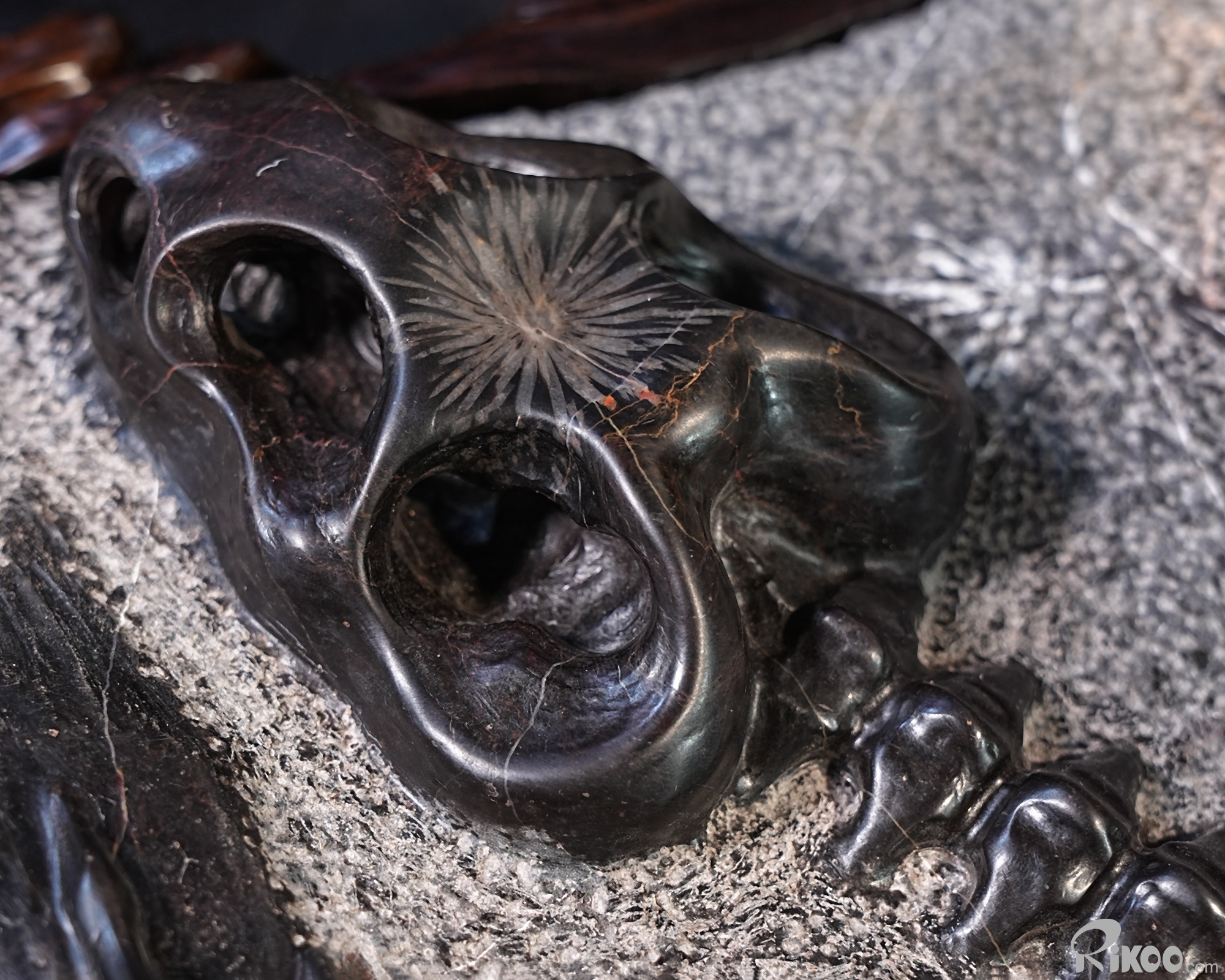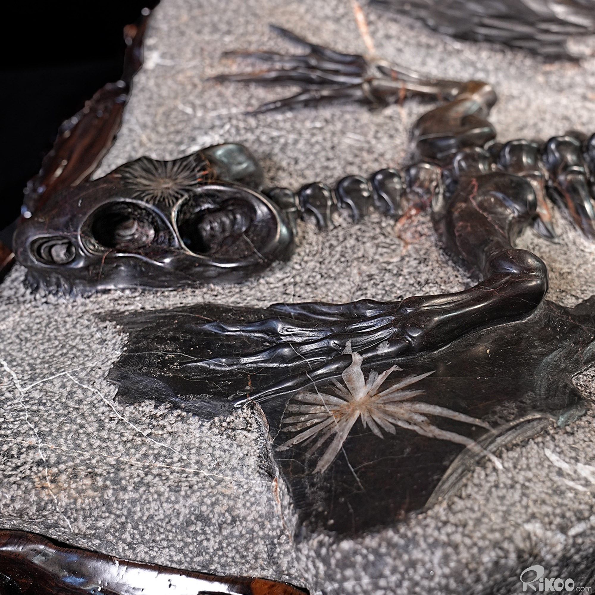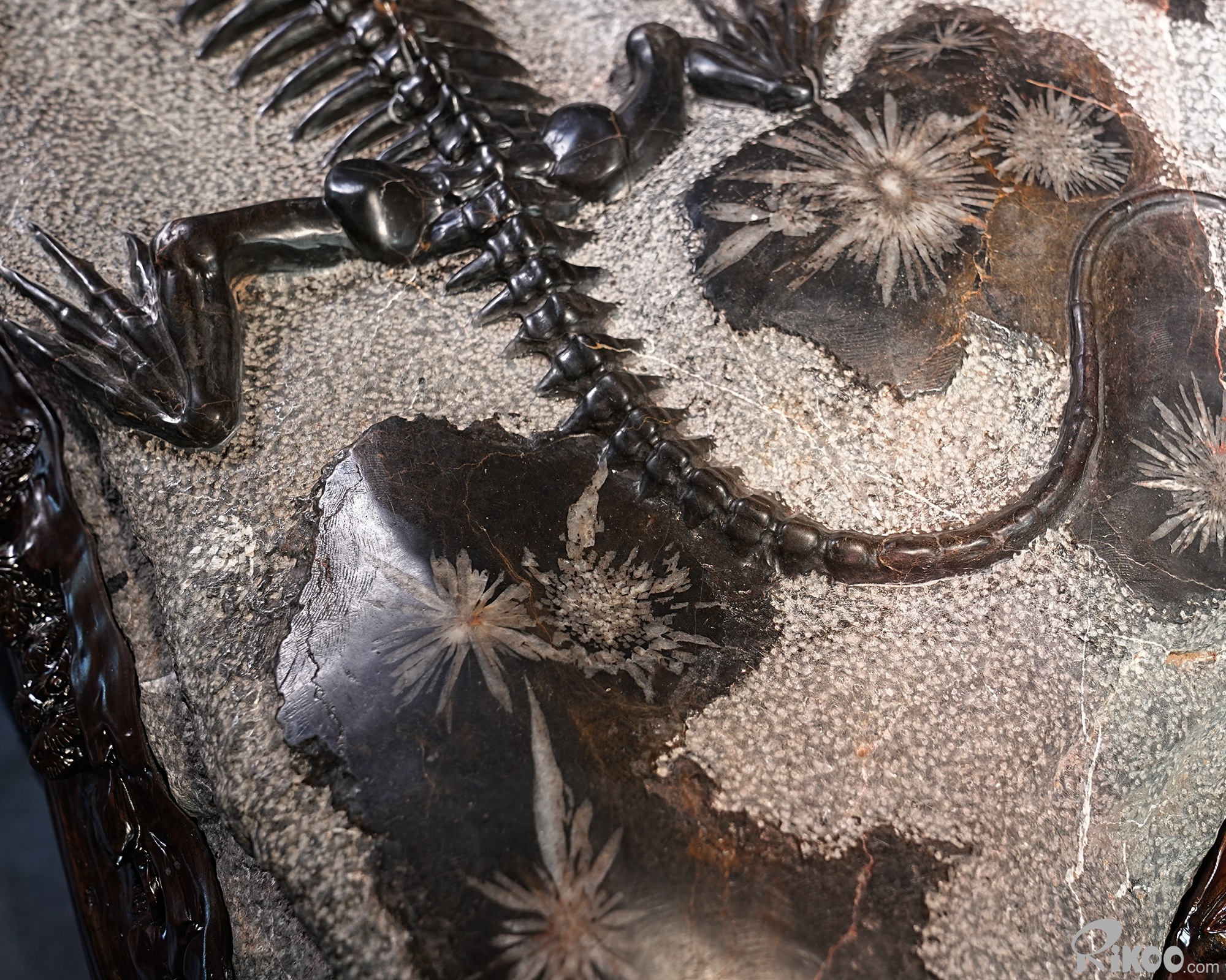 28.7" Chrysanthemum Stone Hand Carved Crystal Dinosaur Bone Sculpture, Crystal Healing