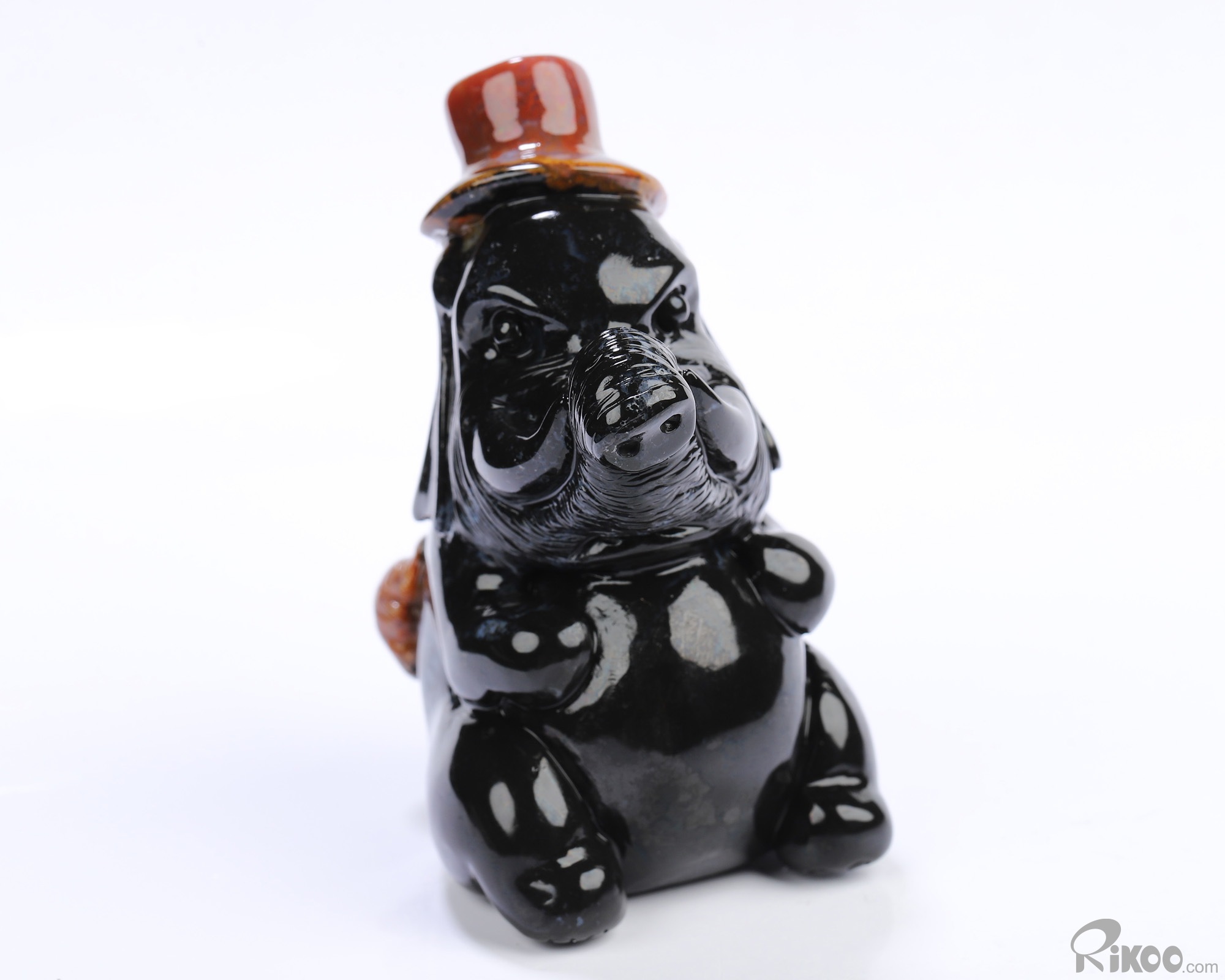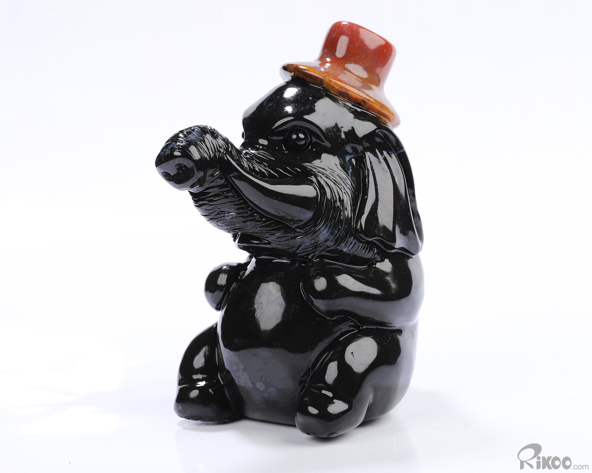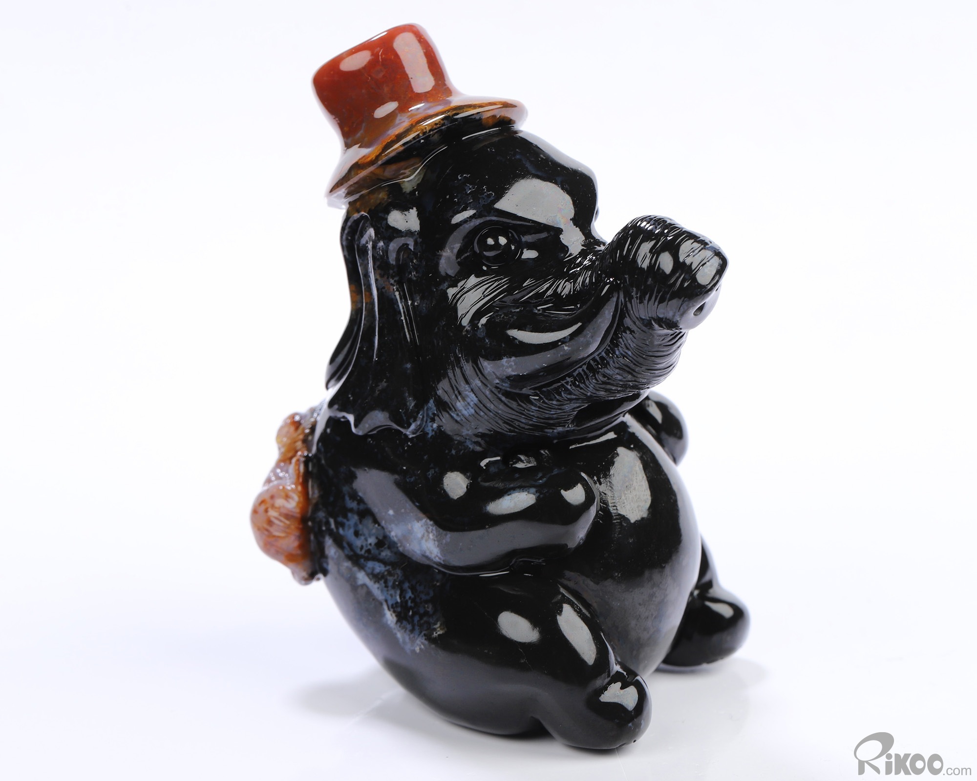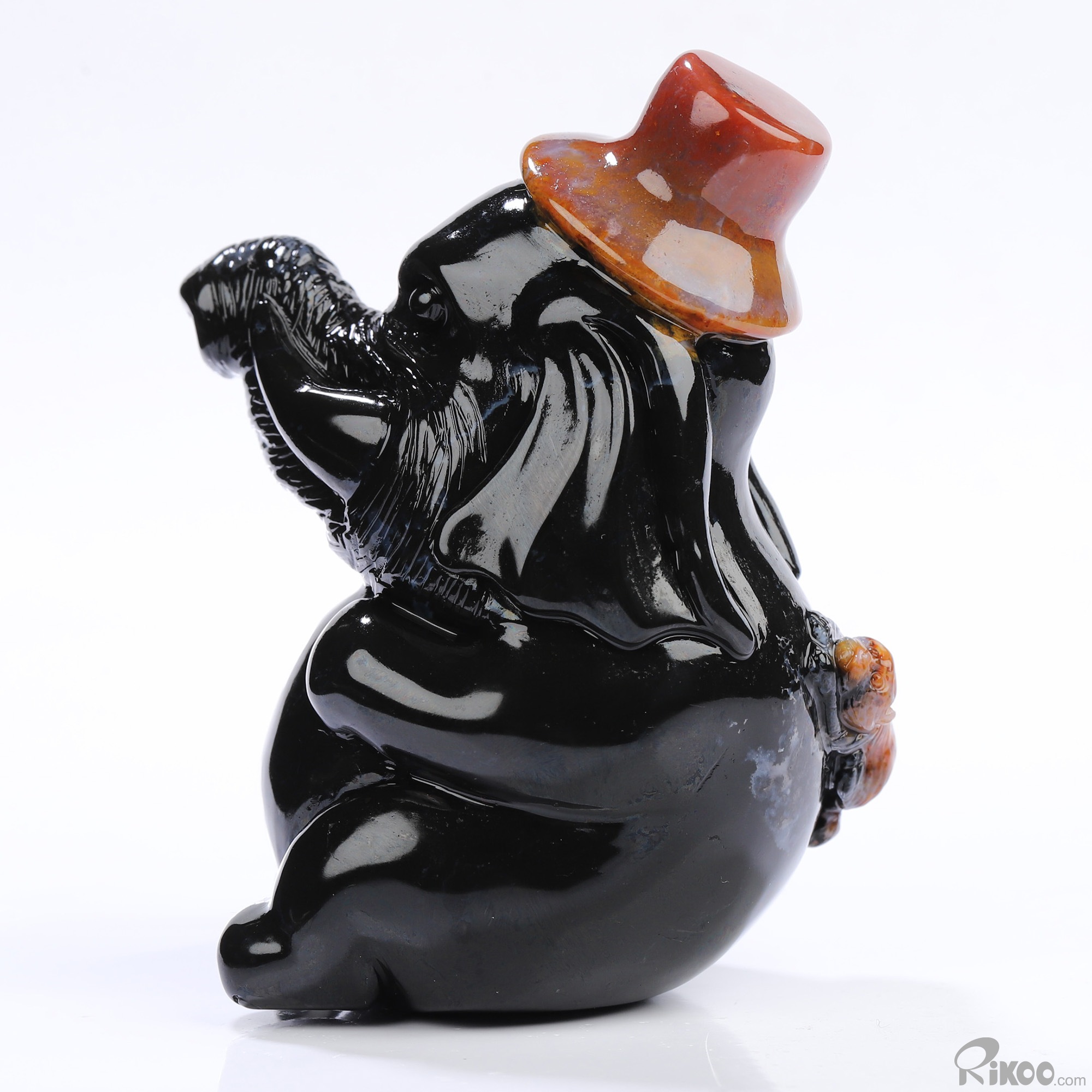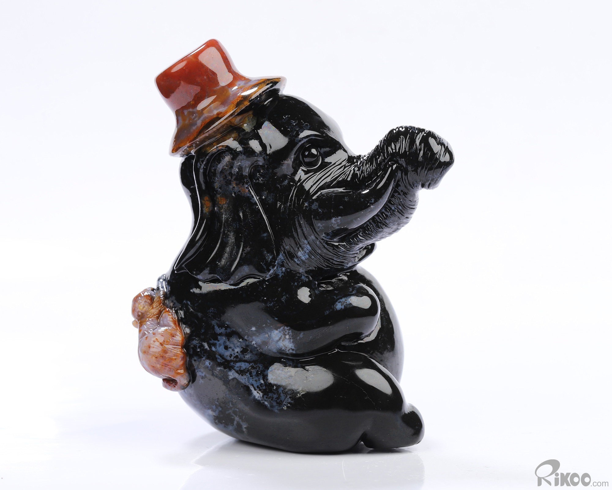 3.0" Black Zebra Agate Hand Carved Crystal Elephant Sculpture, Crystal Healing