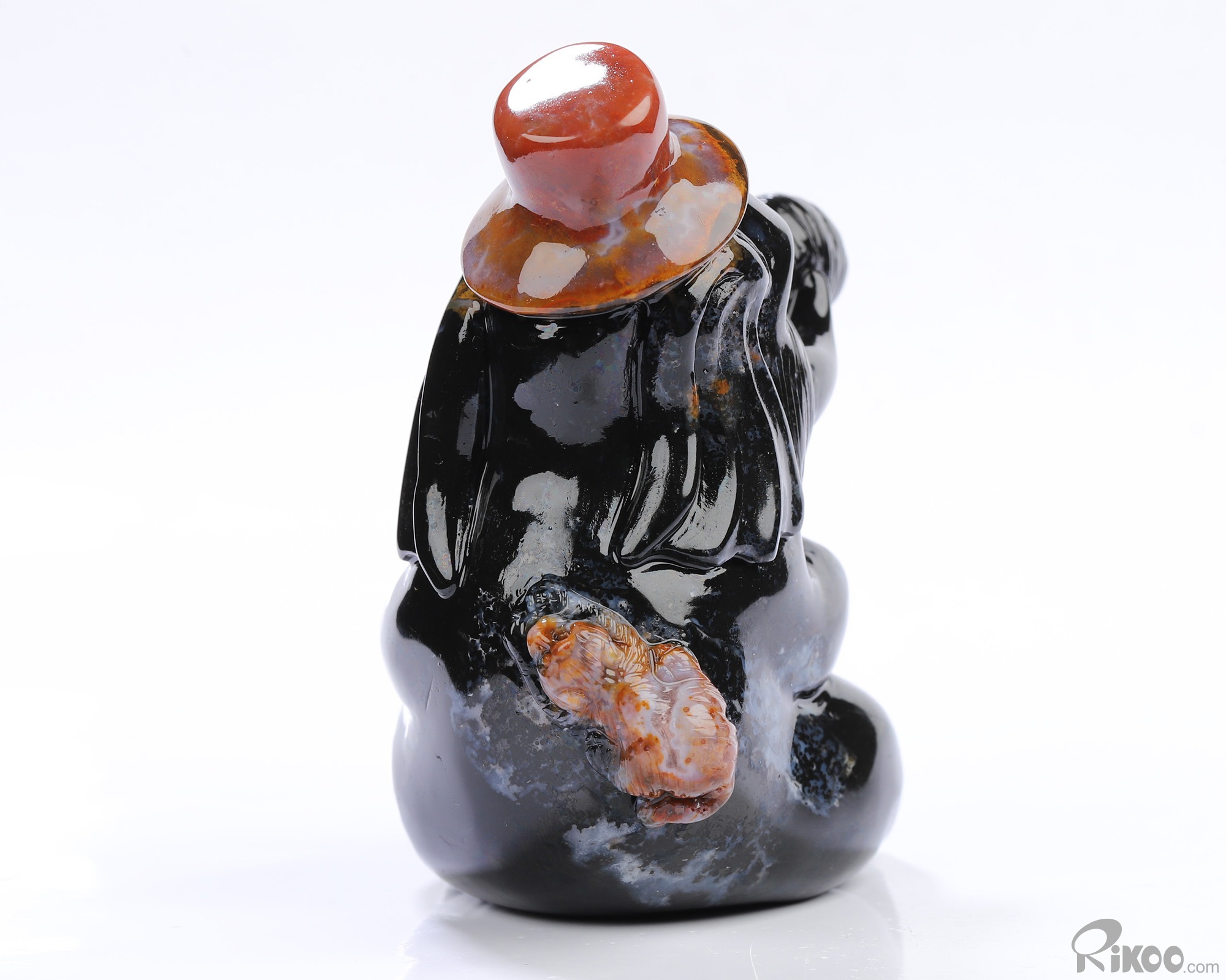 You are looking at a Black Zebra Agate sculpture. The sculpture is 3 inches long.
