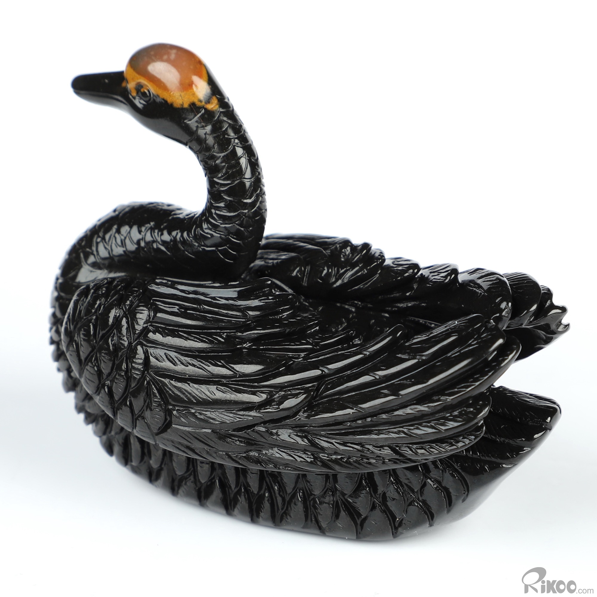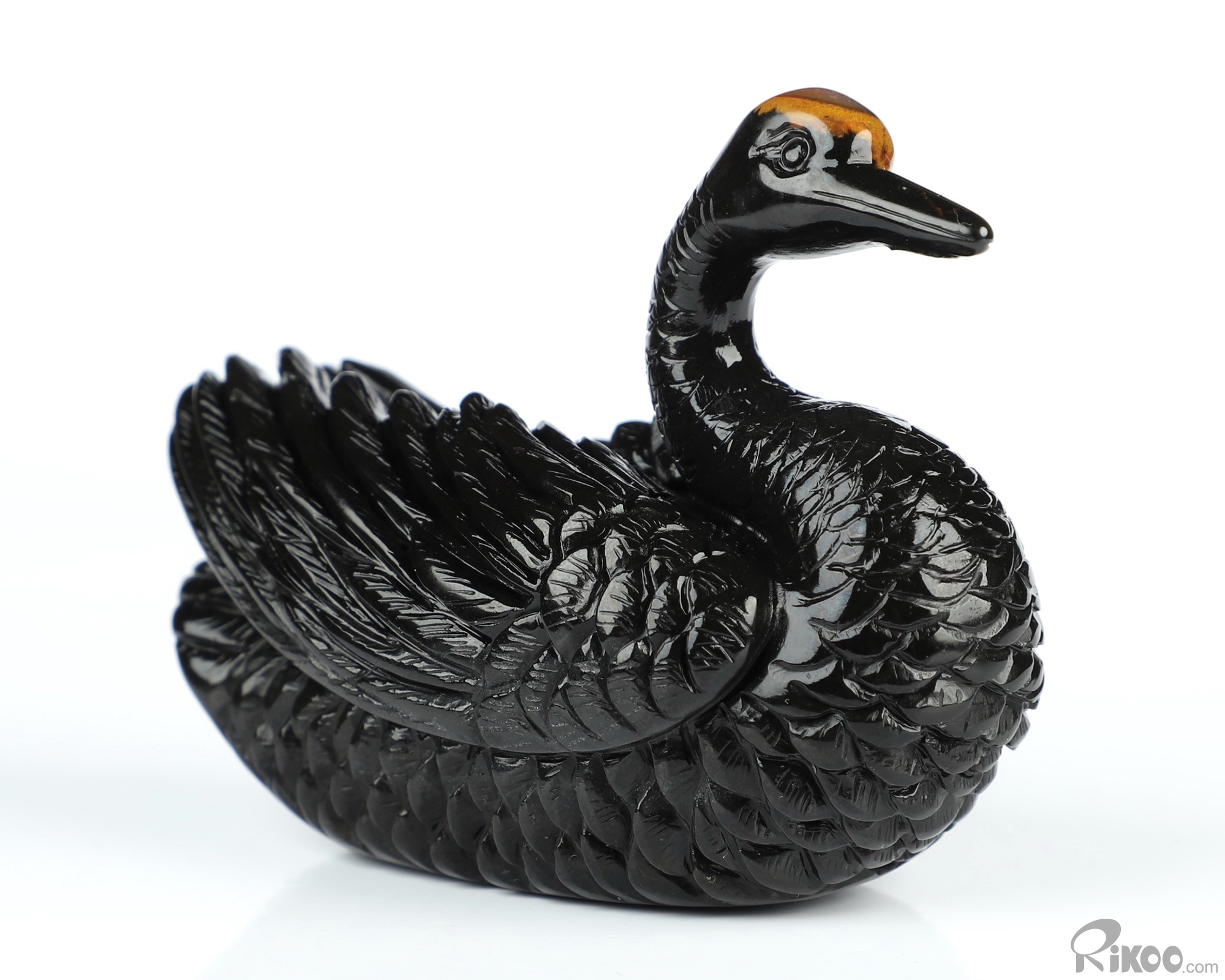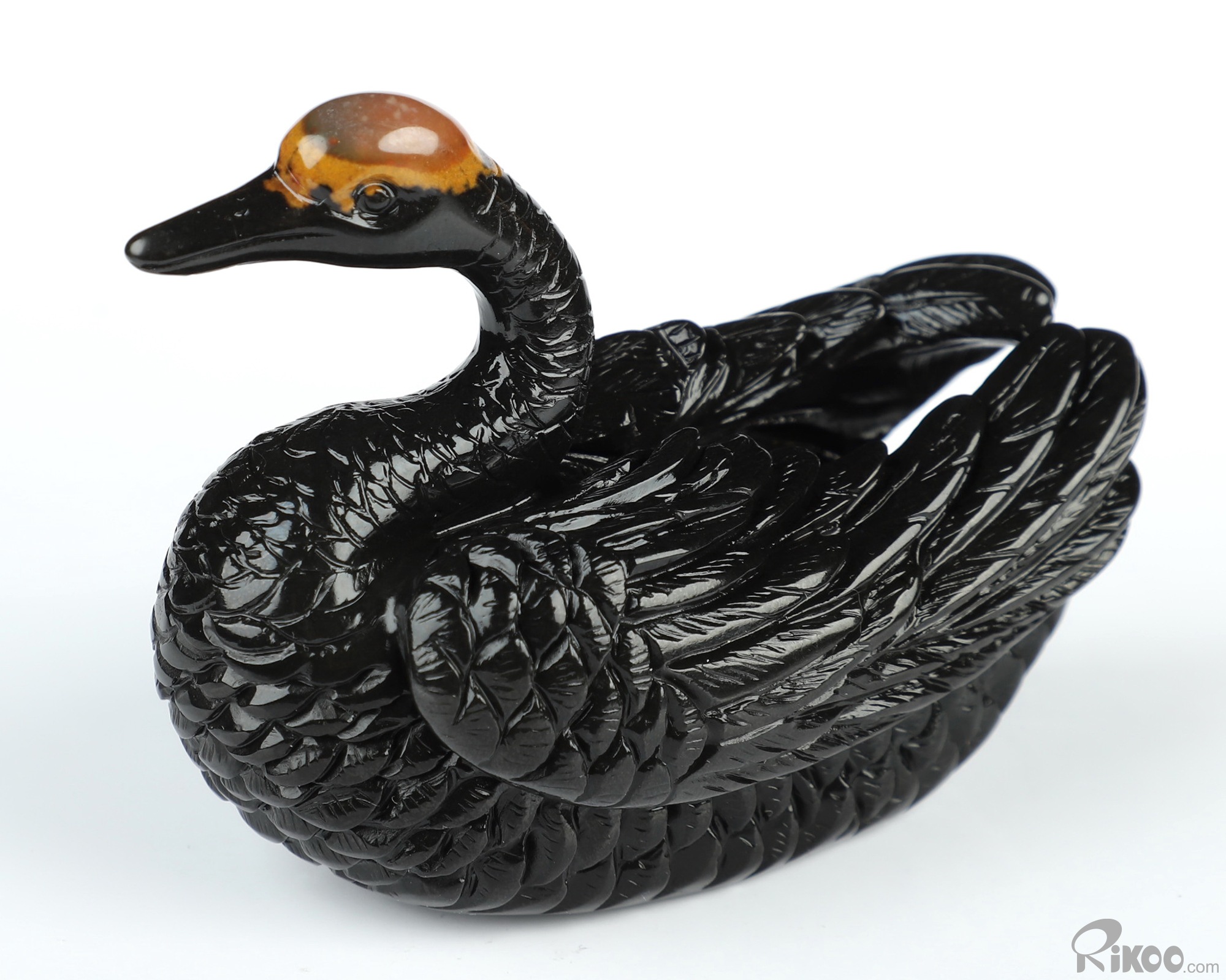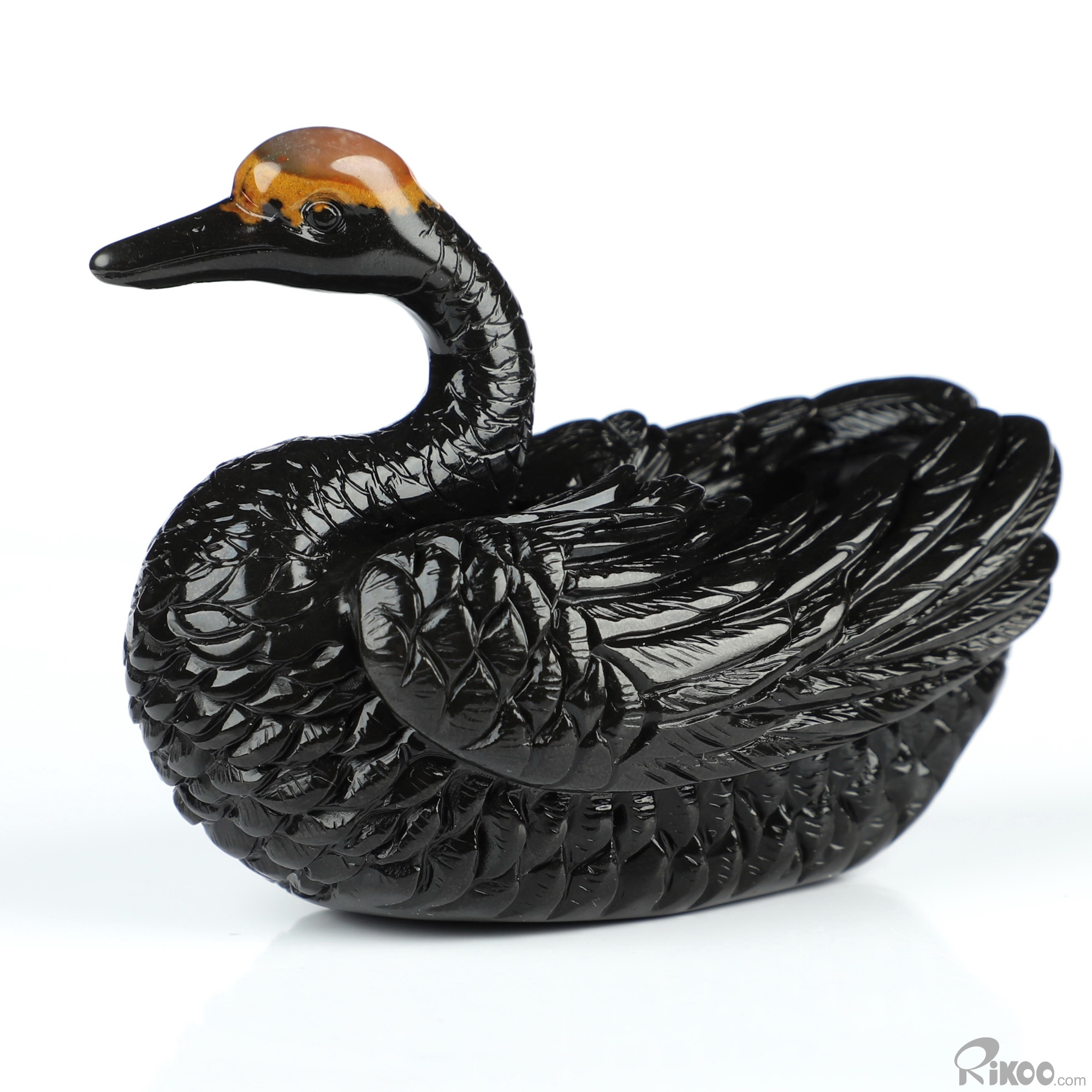 3.0" Black Zebra Agate Hand Carved Crystal Swan Sculpture, Crystal Healing